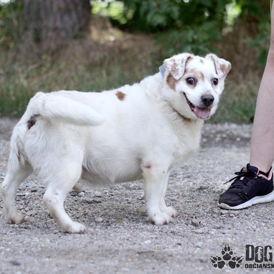 Aaron, narodený cca máj 2016, k nám prišiel z obce Štvrtok na Ostrove. Žil po boku svojej majiteľky v osade, ktorú ale vysťahovali a tak si psíka nemohla vziať so sebou. Ale v podstate krpec mal šťastie, lebo to naozaj neboli vhodné podmienky pre živú bytosť. Prišiel žiaľ s veľkou nadváhou a bol veľmi vystrašený, ale stačilo mu pár dní aby sa osmelil a odvtedy sa kamaráti s každým. Je to úplne bezproblémový a nekonfliktný psík, ktorý sa nevie nabažiť ľudskej pozornosti. Je veľmi milý, priateľský a vždy veselý. Je tiež rád v spoločnosti iných psíkov, rád sa zoznamuje a rýchlo sa kamaráti. Nie je nijak extra aktívny, ale na pohyb si potrpí a na prechádzky chodí veľmi rád. Určite Vám bude rád robiť spoločnosť pri prechádzke ale rád sa pritúli aj na gauči. Vodítko ovláda bez problémov, dá s a sním veľmi pekne prechádzať. Ideálne by sa mu bývalo v rodinnom dome, ale podmienka je celoročné bývanie v dome. Je však dokonale vhodný aj do bytu, ale bude mu treba zabezpečiť dostatok pravidelné prechádzky a samozrejme doladiť hygienické návyky. Na svoju druhú šancu čaká od mája 2024.