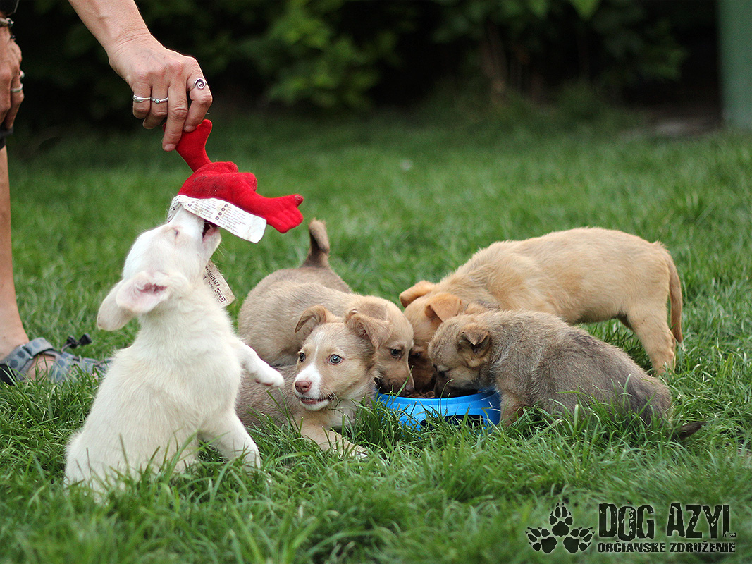Askia, Bruce, Chelsey, Darwin a Ellie, narodení cca marec 2018, sa našli v Čenkovciach. Našla ich jedna dobrá duša, pri venčení svojho psíka. Šteniatka boli vyhodené uprostred poľa, ako nejaký odpad :( Našťastie sa ich ujala naša úžasná Betka, poskytla im dočasný domov a dala šancu na život. Šteniatka sú zdravé, veselé, majú za sebou prvé očkovanie. Sú to rozkošní nezbedníci, s ktorými nikdy nie je nuda :) Sú zdravo sebavedomé, hravé, odvážne a veľmi priateľské. Učia sa hygienickým návykom, ale zatiaľ je pre nich podložka najpohodlnejšia :) V dospelosti budú menšieho vzrastu, cca do 10kg, ale to sa v takomto mladom veku odhaduje dosť ťažko. Hľadajú si rodiny, v ktorých budú plnohodnotnými členmi. Nie sú a ani nebudú vhodné celoročne na dvor! Potrebujú prítomnosť človeka, bývať s ním v dome. Sú vhodné aj do bytu. Pri správnom vedení a dôslednej výchove z nich zaručene budú super parťáci. Na svoju druhú šancu čakajú od apríla 2018.