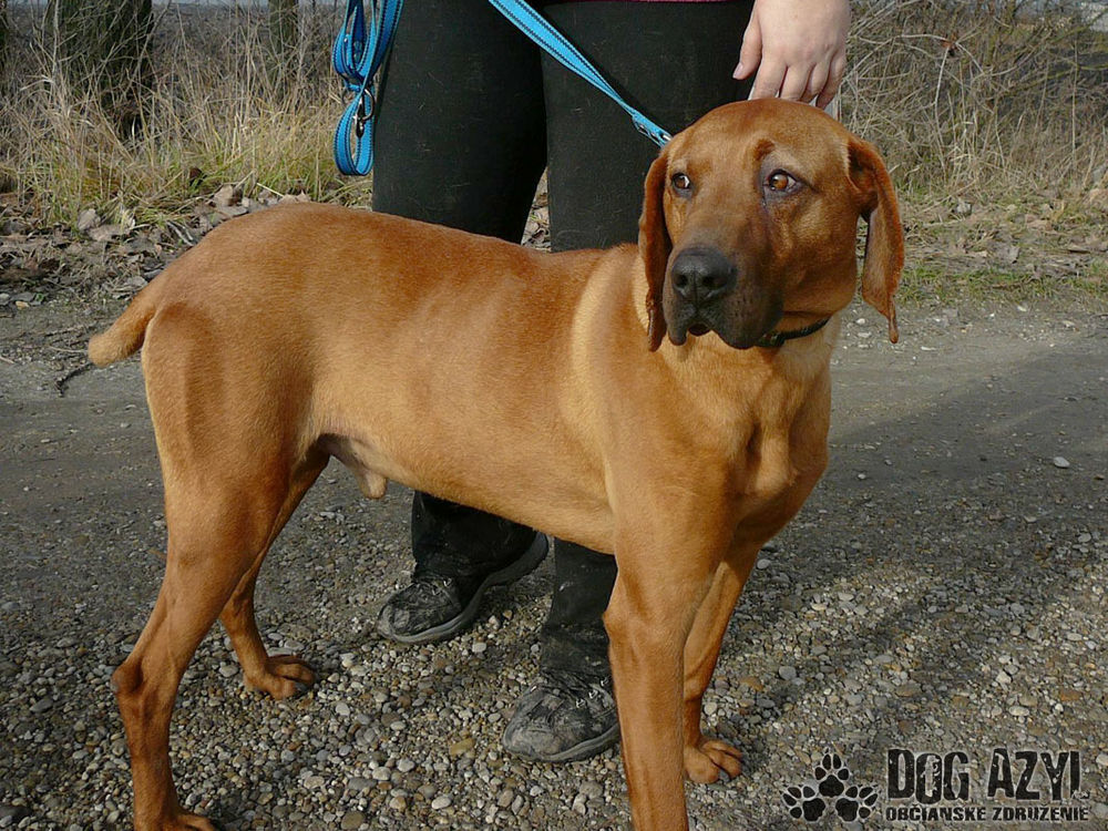 Balu je prekrásny mladý psík,/ do utulku prijatý 4.1.014/ narodený cca jun 2012, kríženec rhodezskeho ridgebacka, má nádhernú hlavu a dlhé hebké uši. Je kastrovaný a krátkosrstý, ideálny adept do bytu na gauč, kde by vynikla jeho elegancia, avšak mal by mať aj dostatočne dlhé vychádzky. Je to mladý psík a ľudí má veľmi rád. Je to mazel na pohľadanie. Je skôr pokojnejšej povahy. Z dvora však uteká, preto je vhodný najmä do bytu, prípadne na dobre zabezpečený pozemok! V prípade, že vás Balu zaujme, píšte správu na stránku fb: OZ DOG AZYL DS alebo mail na: dogazyl@azet.sk