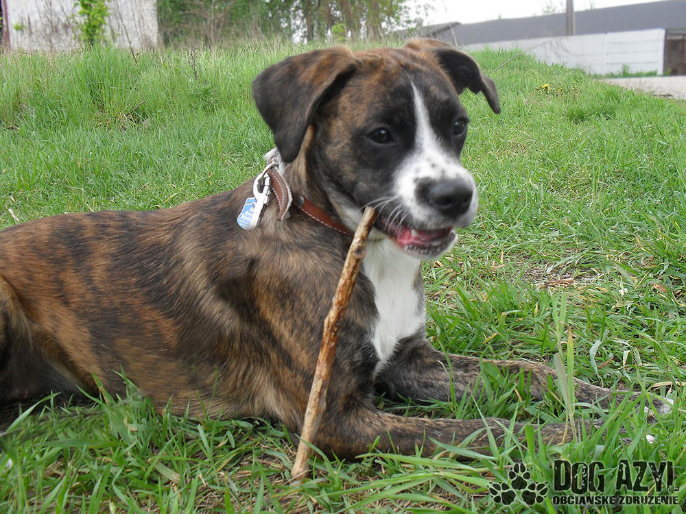 Becky - Táto krásna 7 mesačná fenečka x boxera hľadá novú rodinku. Volá sa Becky, vysoká 44cm.. Je to aktívne, hravé šteniatko, veľmi milé, prítulné, učenlivé. Rada aportuje a ovláda základné povely podľa pôvodných majiteľov. Becky sa bojí pri prvom kontakte a ukazuje zúbky, akonáhle však pochopí, že jej nič nehrozí, je to miláčik a je ľahko ovládateľná, takisto najprv cerí zúbky na iné psy, ale neskôr, keď ju prejde strach, sa s nimi pekne hraje, momentálne je v útulku v koterci s Cézarom, NO, s ktorým sa na dvore hrali a keď sa ho Becky zľakla, kedže je asi 3x väčší od nej, tak mi len skočila do náručia a odtiaľ ho dočahovala packou, je to úžasné stvorenie, ktoré nechápe, prečo sa zo dňa na deň ocitlo z bytu v studenom koterci útulku :( V prípade záujmu volajte na: 0905 507 847 / 0901 738 878 alebo píšte na dogazyl@azet.sk