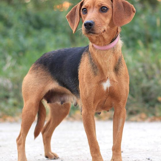 Betty, narodená cca október 2020, sa našla v obci Okoč. Vystrašene pobehovala pri odľahlej ceste, akoby niečo hľadala. Podľa jej vyťahaných cecíkov súdime, že hľadala svoje šteniatka :( Buď sa niekto zbavil jej potomkov ona sa ich vydala hľadať, alebo zbavili po šteniatkach rovno aj jej :( Faktom je, že dodnes ju nikto nehľadal, nikomu nechýba :( Hľadáme jej teda skutočný, láskyplný domov, kde bude mať navždy svoje bezpečie a plnú misku. Betty je dokonalá, priateľská, roztomilá, vždy veselá psia slečna, ktorá má radosti a energie na rozdávanie. Veľmi rada chodí na prechádzky, ale rada si zabehá aj s kamošmi vo výbehu. Vodítko jej nevadí, ale poslušnosť bude treba trocha doladiť. Betty je úplne nekonfliktná, kamaráti sa so psíkmi aj fenkami, ale od drzých psíkov si nenechá dirigovať. Ideálne by sa jej bývalo s aktívnou rodinou, ktorú bude môcť sprevádzať na výlety. Ak by sa mala adoptovať do rodinného domu, podmienka je celoročné bývanie so svojou rodinou v dome. Ak zvažujete adopciu do bytu, bude treba počítať s energiou, zabezpečiť jej dostatok pohybu a doučiť hygienické návyky. Betty čaká na svoju druhú šancu od októbra 2021.
