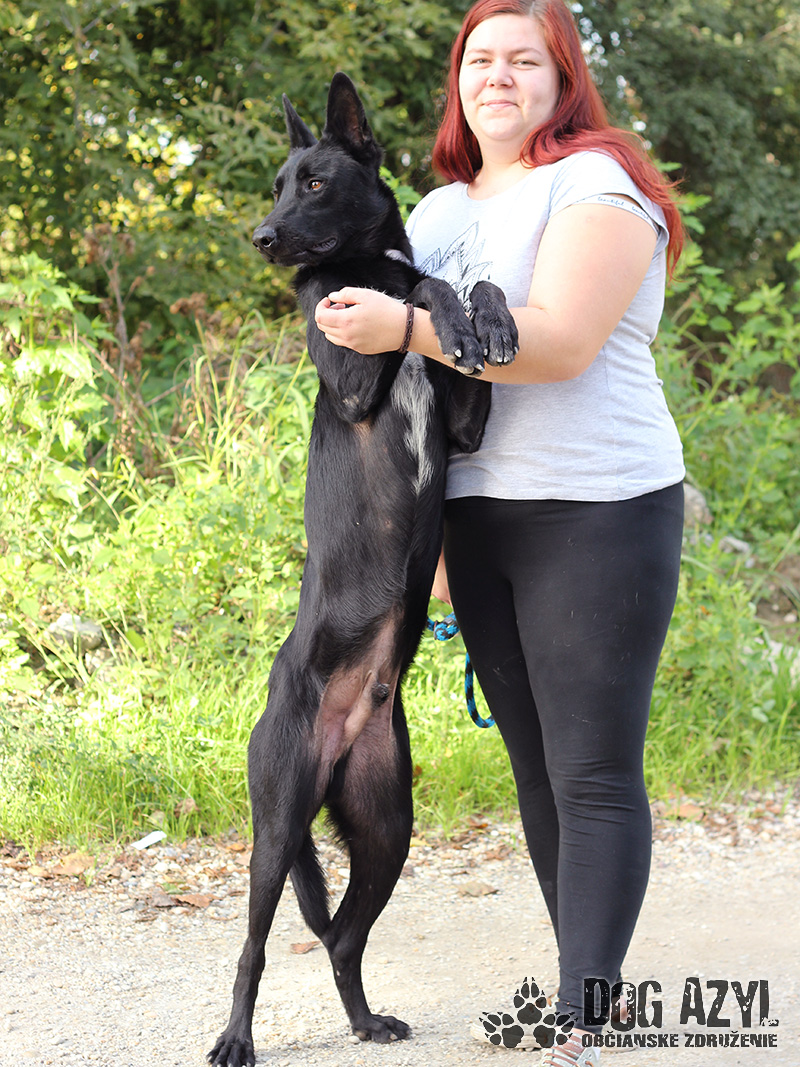 Bronx, narodený cca september 2021, k nám prišiel z iného útulku, v rámci vzájomnej pomoci. Bleskovou rýchlosťou sa aj adoptoval, ale po pol roku sa žiaľ musel vrátiť do útulku, lebo dospel a začal si určovať vlastné pravidlá. Jeho minulosť je úplne jednoduchá a bežná. Nikdy nepoznal človeka, vyrastal sám bez akejkoľvek výchovy a bol presvedčený, že nemusí poslúchať. Bronx pri tom ale lipne na ľudskej spoločnosti, čaká na povely a veľmi rád sa zabaví nacvičovaním poslušnosti. Je to úžasný pracant, dokonale vhodný na psie športy, kynológiu ale aj ako rodinný psík do aktívnej rodiny, ktorá rada trávi voľný čas v prírode. Je to energický, zvedavý a nevybúrený mladý pes, ktorý sa nevie nabažiť spoznávania nových vnemov a hry. Dokonale by zapadol do rodiny, ktorá rada cvičí so psom, ale potrebuje aj nežnú stránku človeka a nikdy nepohrdne mojkaním sa na gauči. Spoločnosť iných psíkov vie veľmi pekne tolerovať ale tiež v dôsledku zanedbanej výchovy nevie kedy je dosť, kde končí hra a kedy sa už treba krotiť aby náhodou druhému psíkovi neublížil. Energie aj lásky má na rozdávanie, potrebuje naozaj dosť aktivít aby bol spokojný on aj jeho rodina. Je veľmi pozorný, kontaktný, neskutočne rýchlo sa učí, takže je super predpoklad, že pri správnom vedení rýchlo dobehne všetko zameškané. Treba mu stanoviť presné a trocha prísnejšie hranice, a dbať na ich dodržiavanie :) Miluje loptičky a aportovanie, takže v rámci hry sa naučí naozaj čokoľvek. Ideálne by sa mu bývalo rodinnom dome, ale výhradne s celoročným prístupom do domu. Na svoju novú šancu čaká od apríla 2023.