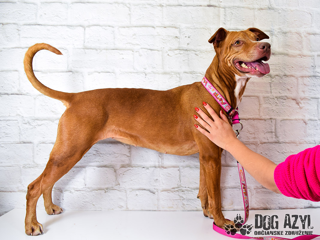 Cathy, narodená cca január 2015, k nám prišla z Dunajskej Stredy. Objavila sa na ulici krátko po novom roku a kvôli jej nedôverčivosti a strachu sa veľmi ťažko odchytávala. Nakoniec sa ale našťastie podarilo a Cathy sme mohli vziať do bezpečia. Vykľulo sa z nej priateľské zlatíčko :) Cathy má veľmi rada ľudí, na prechádzku si vybehne úplne s kýmkoľvek :) Nie je zdržanlivá ani voči cudzím, priam naopak, hneď sa ku každému túli :) Na psíkov reaguje dosť ostro, ale pri správnom vedení a výchove sa toto správanie bude dať krásne odnaučiť. Možno nikdy nebude mať najlepšieho psieho kamoša, ale ak ju naučíte bude vedieť bez problémov tolerovať psíkov okolo seba. Nie je však vhodná do neskúsenej rodiny. Potrebuje mať "šéfa", pravidelný režim ale všetko samozrejme láskavým prístupom. Cathy je krotká, priateľská, spoločenská ale dosť energická fenečka, a hľadá si aktívnu rodu, v ktorej sa budú vedieť dostatočne venovať, bude mať možnosť pravidelných prechádzok. Miluje loptičky a vodu :) Najradšej by asi celý deň aportovala v bazéne :) Je tak trocha fanatička, takže na hru s loptičkou ju kedykoľvek namotáte a v rámci hry sa aj rýchlo všetko naučí. Vodítko ovláda bez problémov, ale vždy je čo zdokonaliť :) Ideálne by sa jej bývalo pri rodinnom dome, kde by sa na záhrade mohla vyšantiť, ale potrebuje celoročný prístup k svojej rodine, potrebuje byť jej členom. Cathy čaká na svoju druhú šancu od januára 2020.