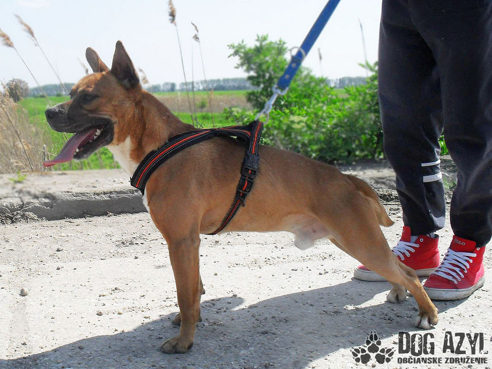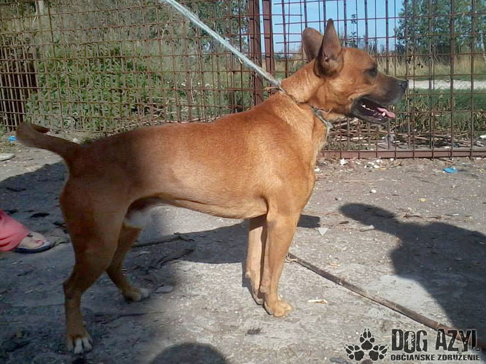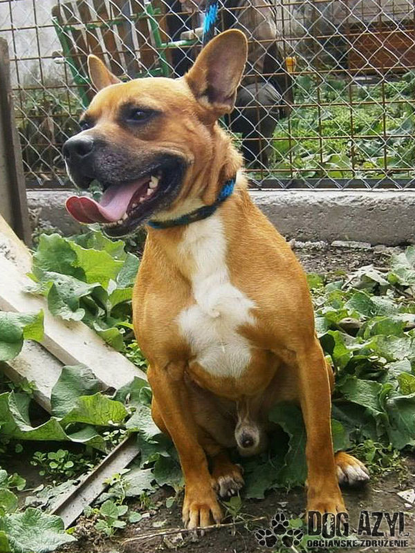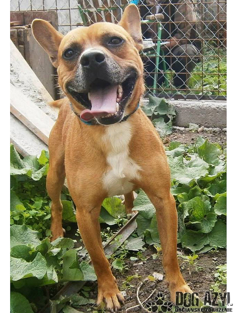 Chucky kríženec anglického staforda, výška 45 cm, temperamentný, hravý, milý k luďom, ku psom neagresívny, potrebuje rodinu, kde by sa mohol dostatočne vybehať :) Narodený cca 20.3. 2011.