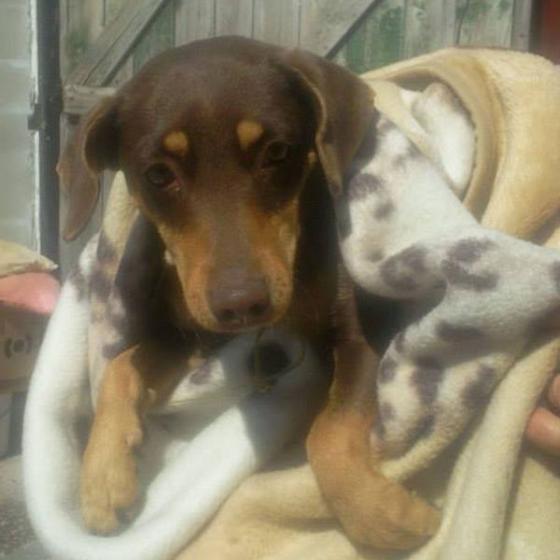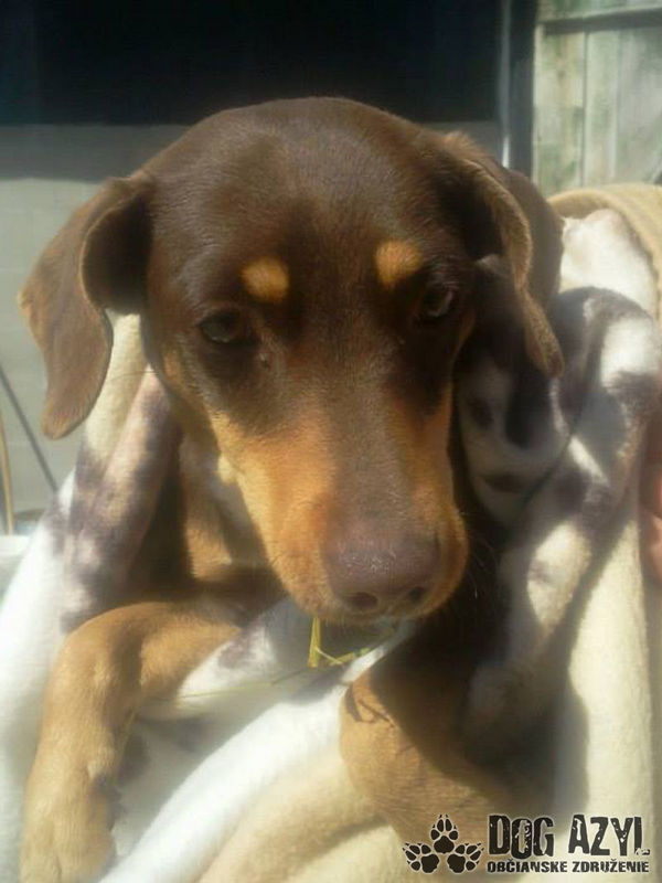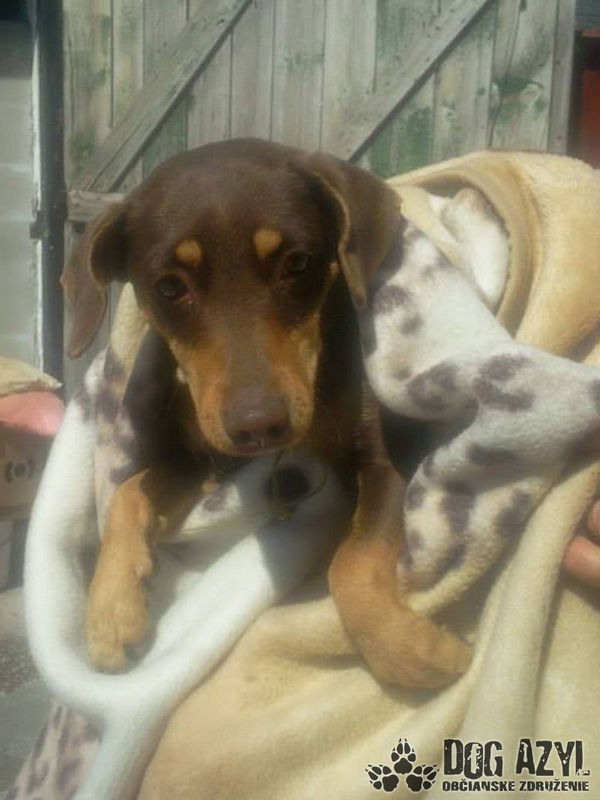 Coco, ako čokoládka, alebo Coco Chanel :) Je to maličká sučka, ktorej sa zbavili majitelia, lebo sa hárala a psy v ulici za ňou zavíjali, a vraj ani oni ani susedia nevedeli spať, tak im niekto poradil, že ju majú dať do útulku, kde ju majú vyložiť pred bránou, že sa to tak robí a my ju tam nájdeme a vezmeme. To bolo pred dvoma týždňami a maličká bola taká plachá, že sa nedala chytiť, až dnes, 27.4. sme ju nasli v zrútenej starej maštali, kde ležala a snažila sa z posledných síl brániť. Po chvíľke sa však poddala a už je v pohode a hlavne, v bezpečí. Coco tam ležala čakajúc na smrť, o pár dní by sme boli našli už len telíčko :( Ďakujeme osudu, že viedol naše kroky do tej budovy, kam bežne nechodíme, babuľka zmierená s osudom, že ju už nechcú, že asi niečo zle urobila, že si nezaslúži lásku tam len čakala vychudnutá na koniec... Ale prišli sme my a ona zisti, že nie je na vine, že si zaslúži veľa lásky a ten naj domov!