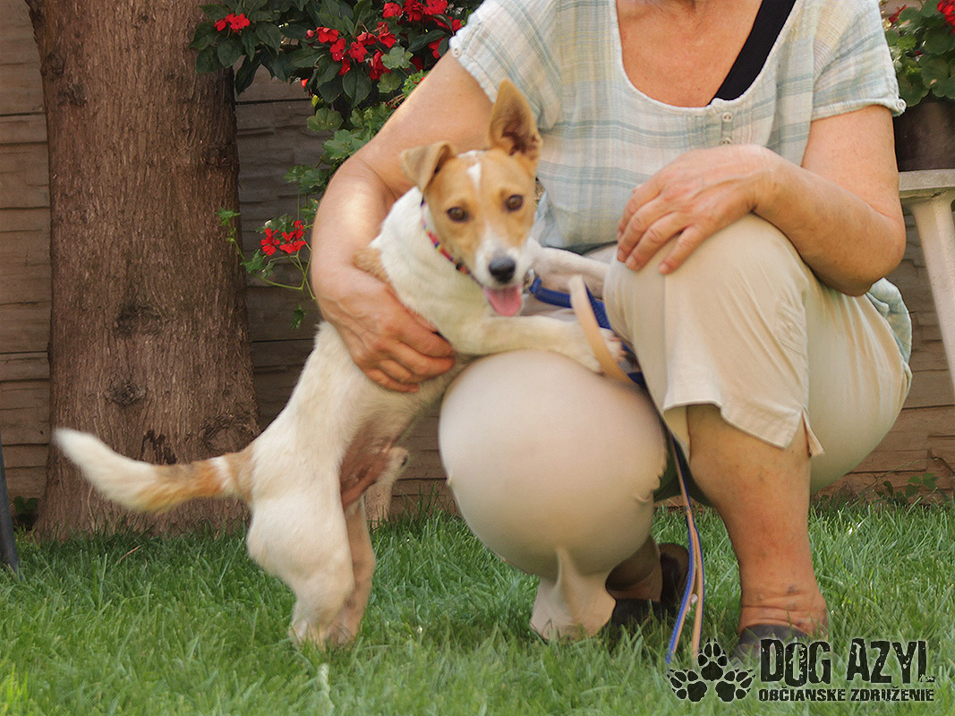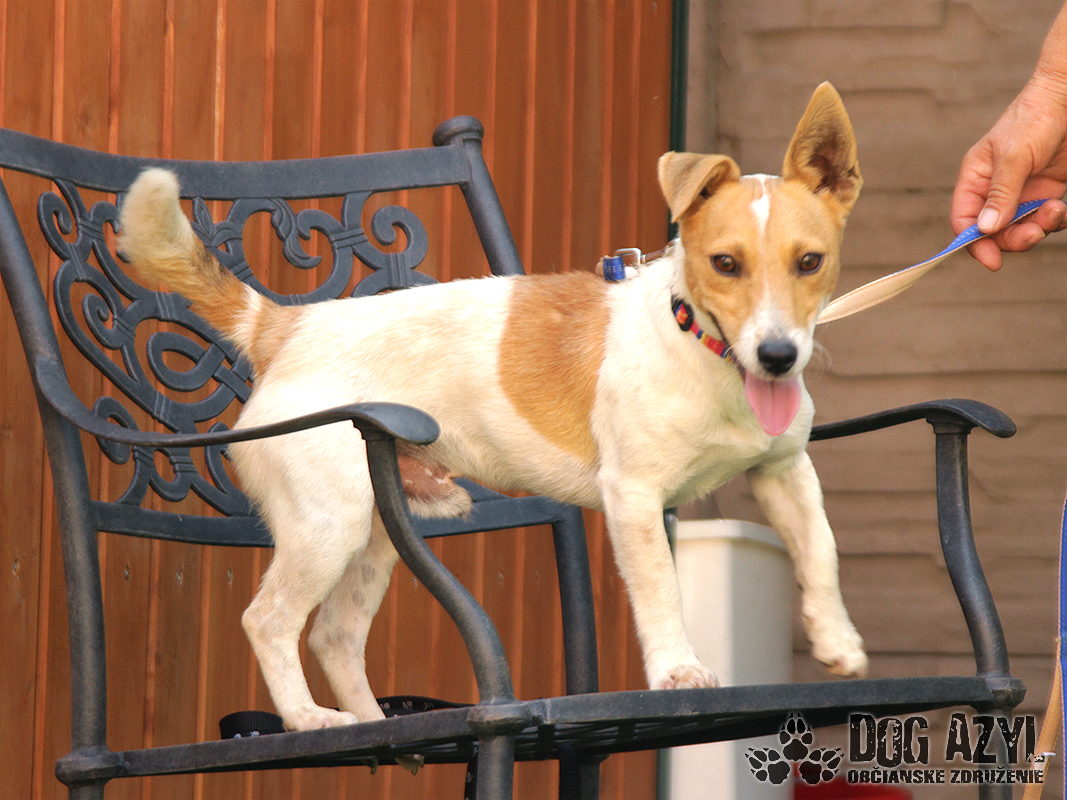 Dany, narodený cc august 2016, je mladý kríženček Jack Russel teriéra so všetkými vlastnosťami tohoto plemena :) Našiel sa v Malej Pake, ale bez akéhokoľvek označenia, takže sme sa k majiteľovi nedopátrali. Dany je veľmi inteligentné a pozorné psíča, rýchlo a rád sa učí. Je energický, aktívny a vie byť aj tvrdohlavý, takže si hľadá rodinu, ktorá bude mať dostatok času na jeho dôslednú výchovu a ocení jeho zmysel pre humor :D Je spoločenský a priateľský, nemá problém ani s cudzími ľuďmi, hneď je kamarát s každým. Je vhodný aj k deťom, uvíta každého, kto sa s ním bude naháňať. Nevadí mu ani spoločnosť psíkov a feniek. Vodítko ovláda bez problémov, veľmi rád sa prechádza. Je dosť náročný na pohyb, ako každý teriér, tak by sa mu asi najideálnejšie bývalo v rodinnom dome, kde by mal dostatok priestoru na pohyb. Bývať ale musí celoročne v dome so svojou rodinou a nie sám na dvore. Je však malinký a tak vhodný aj do bytu. Dany je momentálne v dočasnej opatere, kde krásne zvláda hygienu (pri pravidelnom venčení) a vie zostať aj sám. Dany čaká na svoju druhú šancu od augusta 2017.
