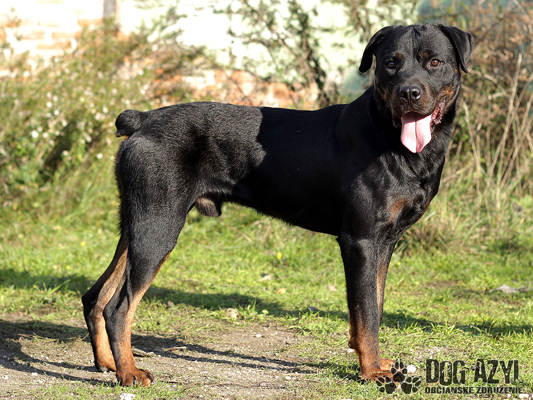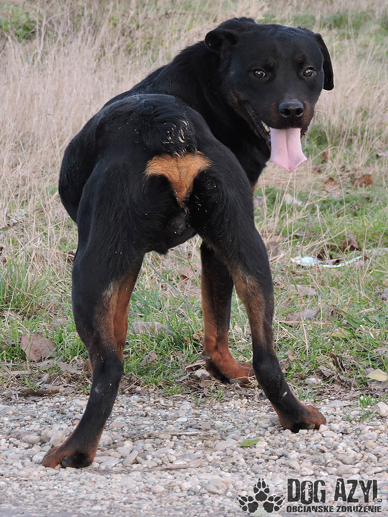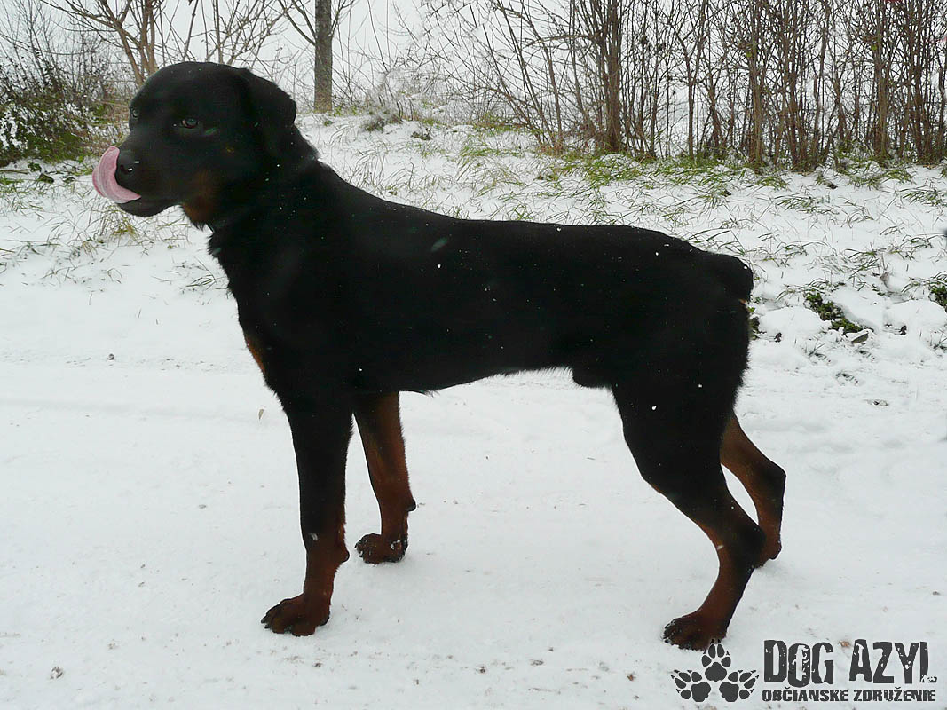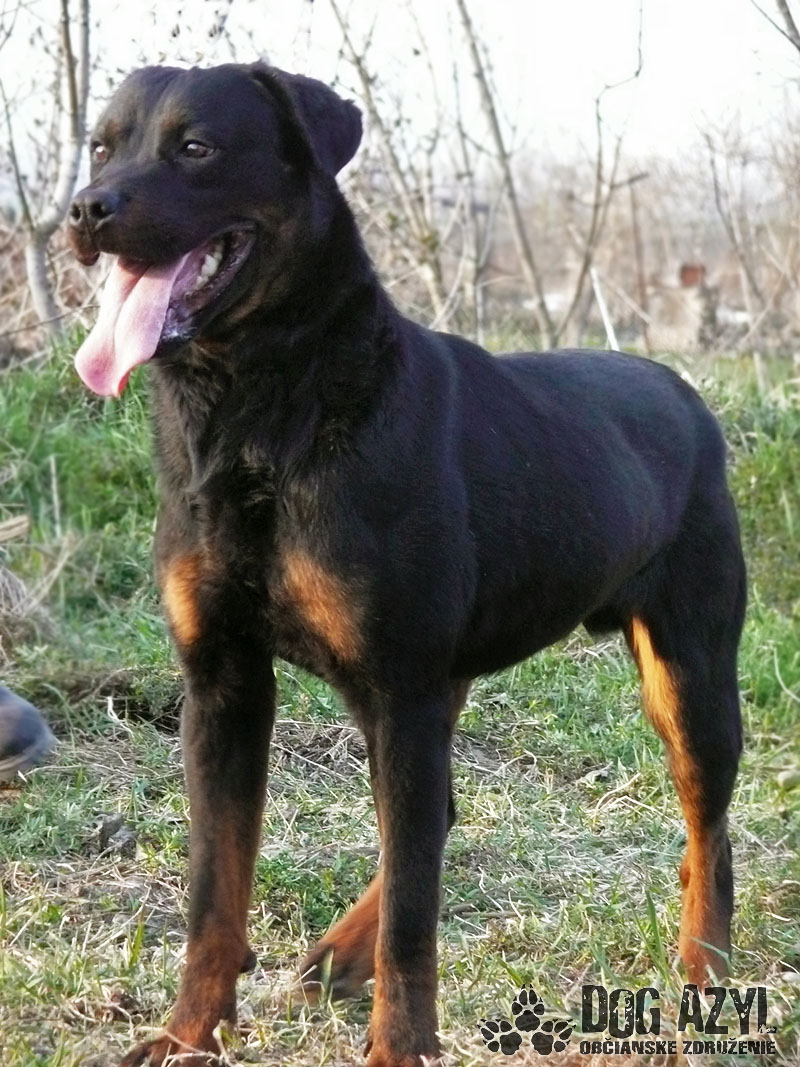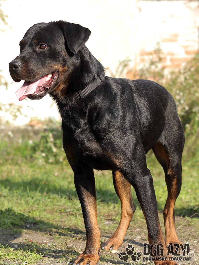 DARK, geboren cca im Jänner 2012, ist ein junger Gefühlsarmer Rotweiler der streute in Straßen von Ort Patas und mit seinen aussehen machte den Menschen angst. Er bettelte nur um bisschen fressen und liebe. Er war sehr ausgehungert aber psychisch ist er in bester Ordnung. Hat sich gut in Tierheim eingelebt und raus kam ein großer Liebhaber von Streicheleinheiten. Hat sehr gute Natur er ist verspielt und zum Menschen freundlich. Er bellt nicht durch den Zaun auf die Nachbarn, hat kein Problem mit Hündinnen mit Hunden muss man es individuell versuchen. Auf der Leine ist er Problemloss spazieren hat er sehr gern. Gegenwart von Menschen macht im gut darum wurde er bestens im einen Haus mit hof aufgehoben sein mit ganzjährigen Zugang ins Haus wo er mi seiner Familie sein kann. Dark wird Sie sehr gut bewachen und er wird ein treuer Familienmitglied sein. Im Tierheim ist er von Dezember 2014.