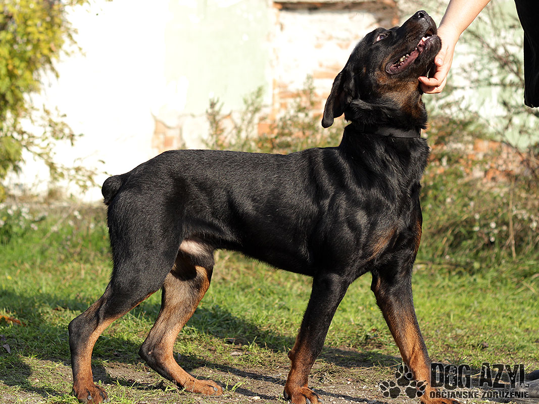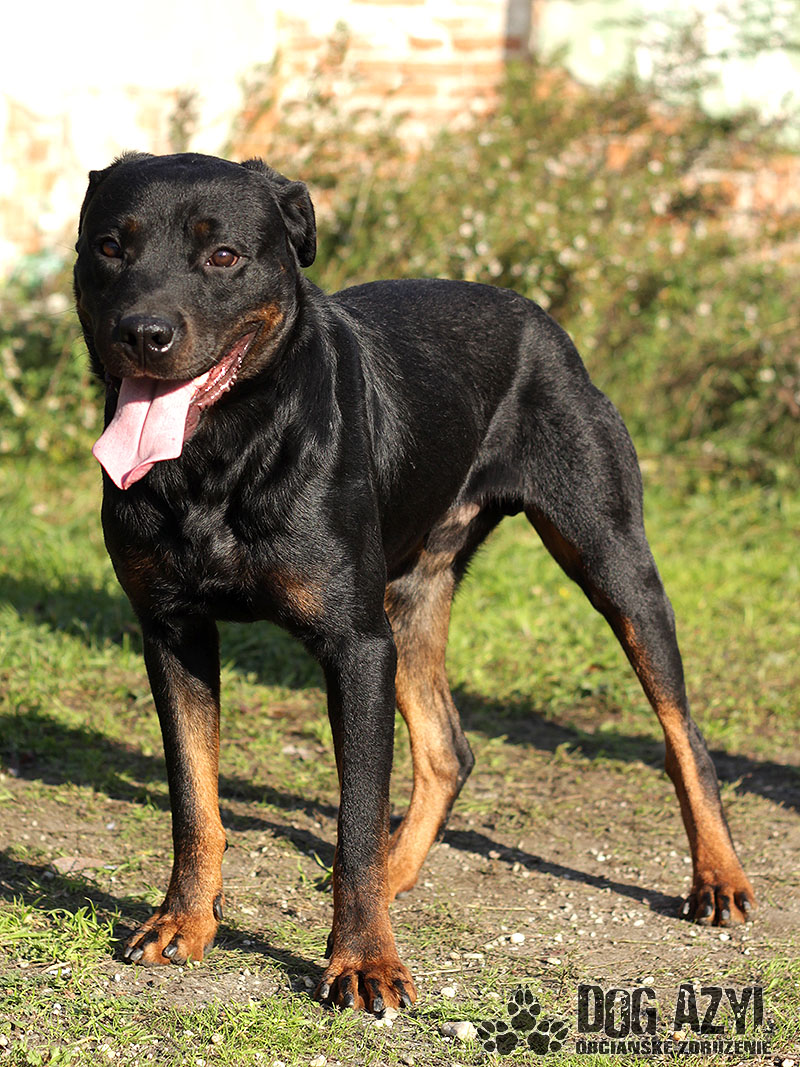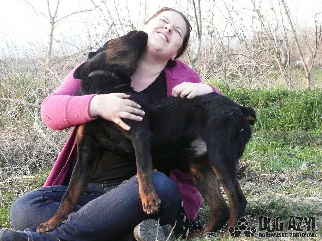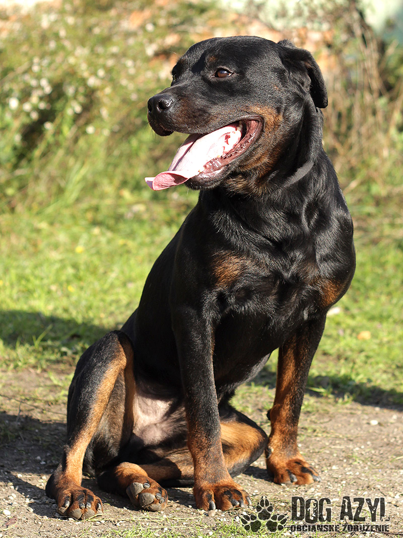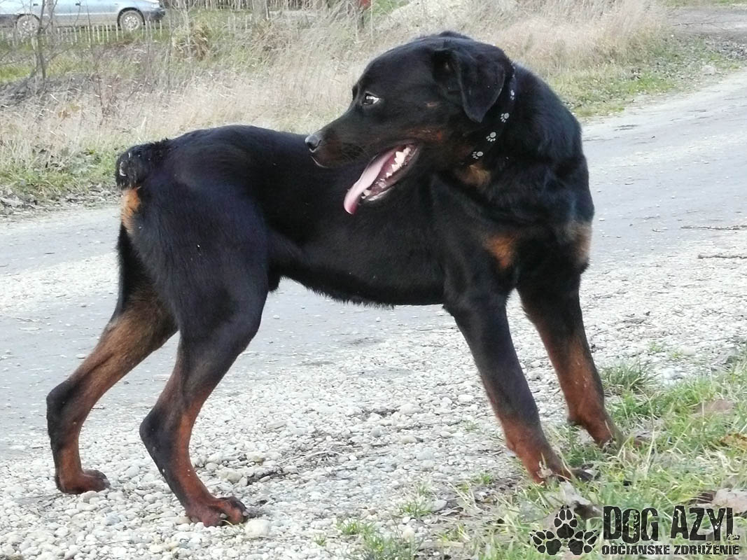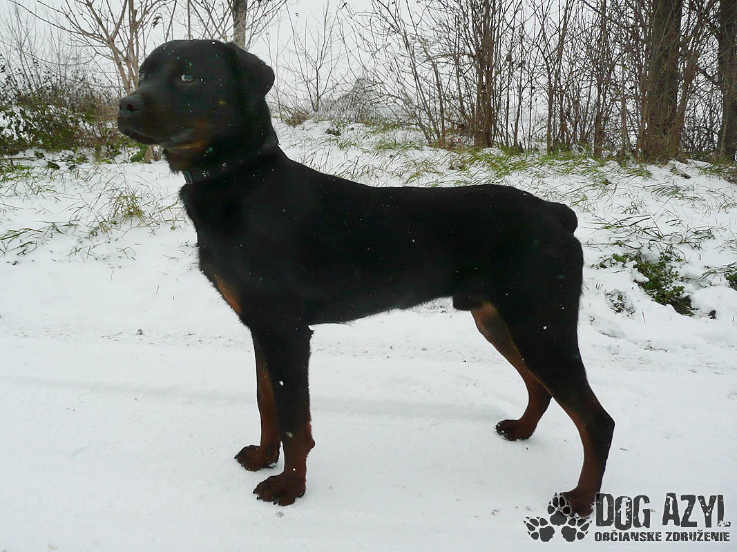 Dark, narodený cca január 2012, je mladý maznavý rotwailer, ktorý sa túlal po uliciachv obci Pataš a svojím výzorom vzbudzoval strach v ľuďoch. Dark však len prosil o jedlo a prístrešok v tuhých mrazoch. Bolveľmi vychudnutý, ale našťastie je z psychickej stránky v dokonalom poriadku :) Pekne sa v útulku adaptoval a vykľulo sa z neho prvotriedne mojkadlo. Má perfekntú povahu, je hravý, veselý, prítulný, k človeku skôr submisívny, priateľský. Nešteká cez mreže na susedov, prítomnosť feniek mu neprekáža, psíkov bude treba individuálne vyskúšať. Vodítko ovláda bez problémov, prechádzky má veľmi rád. Blízkosť človeka mu veľmi prospieva, preto by sa mu ideálne bývalo pri rodinnom dome s pravidelným prístupom dnu, kde môže byť so svojou rodinou. Dark si Vás zaručene perfektne postráži a pritom bude aj oddaným členom Vašej rodiny. V útulku je od decembra 2014.