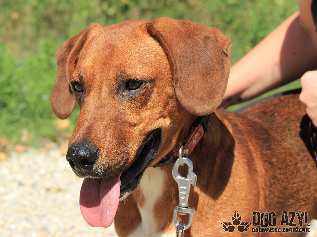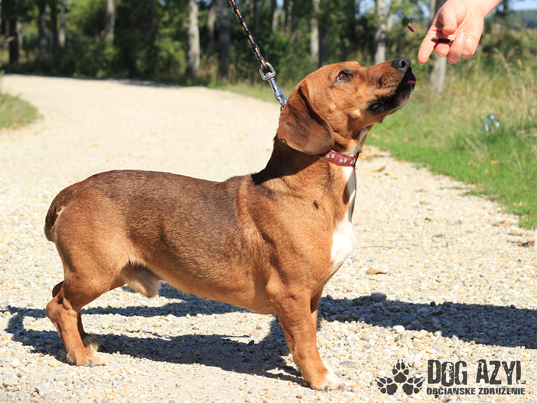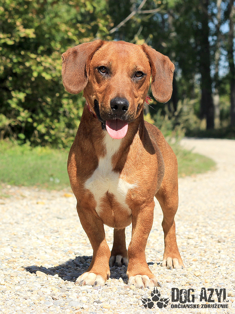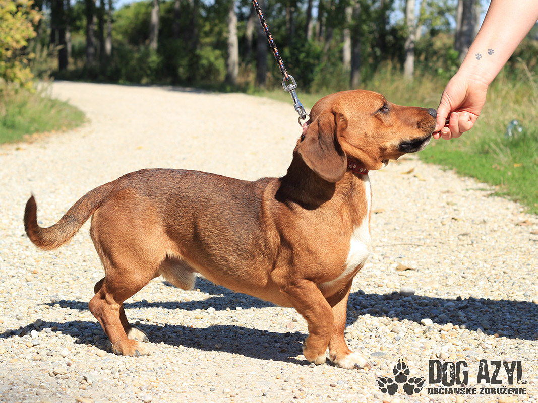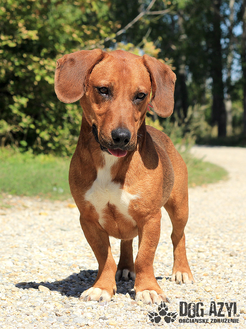 Dexter, narodený cca september 2018, k nám prišiel z Lehníc. Spolu s Russelom bývali pri domove sociálnych služieb, kde z nich mali jeho obyvatelia obrovskú radosť, ale zmenilo sa vedenie a psíkovia museli ísť preč :( Radšej ani nekomentujeme :( Dexter si teda hľadá nový domov, kde môže zostať už navždy, kde ho budú ľúbiť a neopustia ho. Je to malý generál, ktorý sa rád "zahrá na nevinného" ale keď mu naletíte, tak si z Vás ešte aj uťahuje :) Gény jazvečíka by nezaprel ani keby chcel :) Je odvážny, zvedavý, aktívny. Veľmi rád sa prechádza, vodítko ovláda v podstate bez problémov. Nemá problém so spoločnosťou psíkov ani feniek, ale má rád svoje súkromie. Nenechá si od nich rozkazovať :) Ideálne by sa mu bývalo pri rodinnom dome, ale potrebuje celoročný kontakt s človekom. Je malinký, takže vhodný aj do bytu, ale bude treba brať do úvahy jeho dávku energie a dopriať mu dostatok pohybu. Dexter je priateľský, spoločenský, kontaktný a nekonfliktný psík, ktorý si hľadá aktívnejšiu láskavú rodinu. Na svoju druhú šancu čaká od augusta 2019.