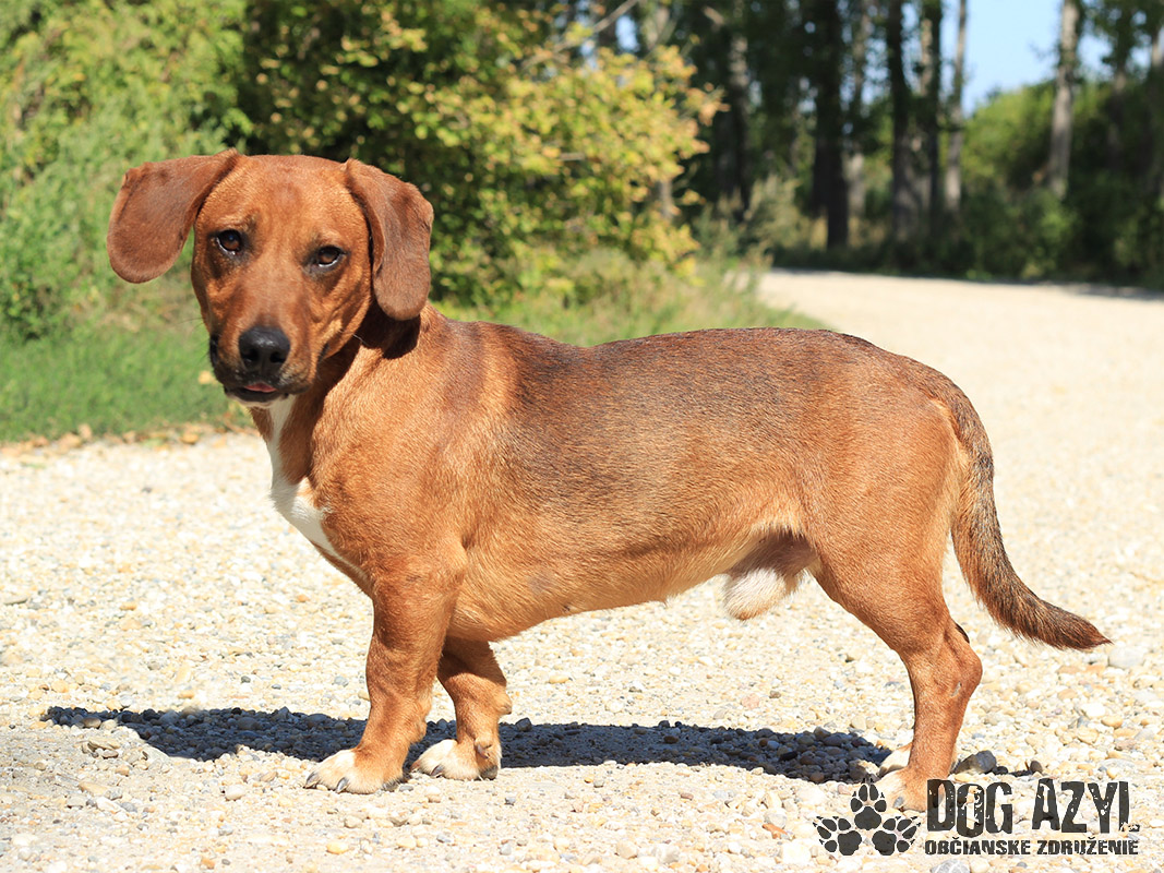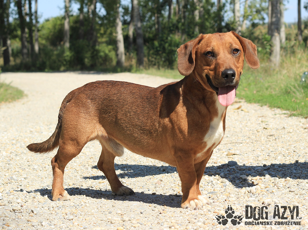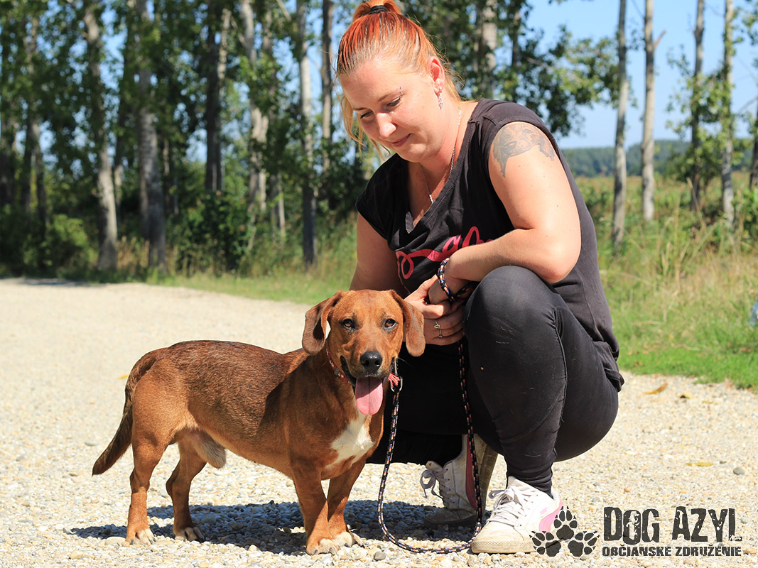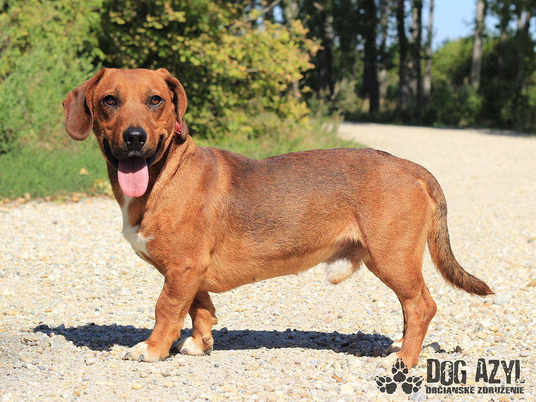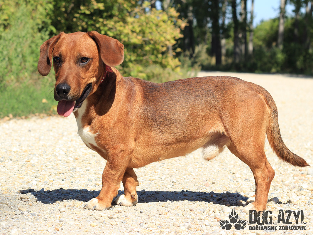 Dexter, narodený cca september 2018, k nám prišiel z Lehníc. Spolu s Russelom bývali pri domove sociálnych služieb, kde z nich mali jeho obyvatelia obrovskú radosť, ale zmenilo sa vedenie a psíkovia museli ísť preč :( Radšej ani nekomentujeme :( Dexter si teda hľadá nový domov, kde môže zostať už navždy, kde ho budú ľúbiť a neopustia ho. Je to malý generál, ktorý sa rád "zahrá na nevinného" ale keď mu naletíte, tak si z Vás ešte aj uťahuje :) Gény jazvečíka by nezaprel ani keby chcel :) Je odvážny, zvedavý, aktívny. Veľmi rád sa prechádza, vodítko ovláda v podstate bez problémov. Nemá problém so spoločnosťou psíkov ani feniek, ale má rád svoje súkromie. Nenechá si od nich rozkazovať :) Ideálne by sa mu bývalo pri rodinnom dome, ale potrebuje celoročný kontakt s človekom. Je malinký, takže vhodný aj do bytu, ale bude treba brať do úvahy jeho dávku energie a dopriať mu dostatok pohybu. Dexter je priateľský, spoločenský, kontaktný a nekonfliktný psík, ktorý si hľadá aktívnejšiu láskavú rodinu. Na svoju druhú šancu čaká od augusta 2019.