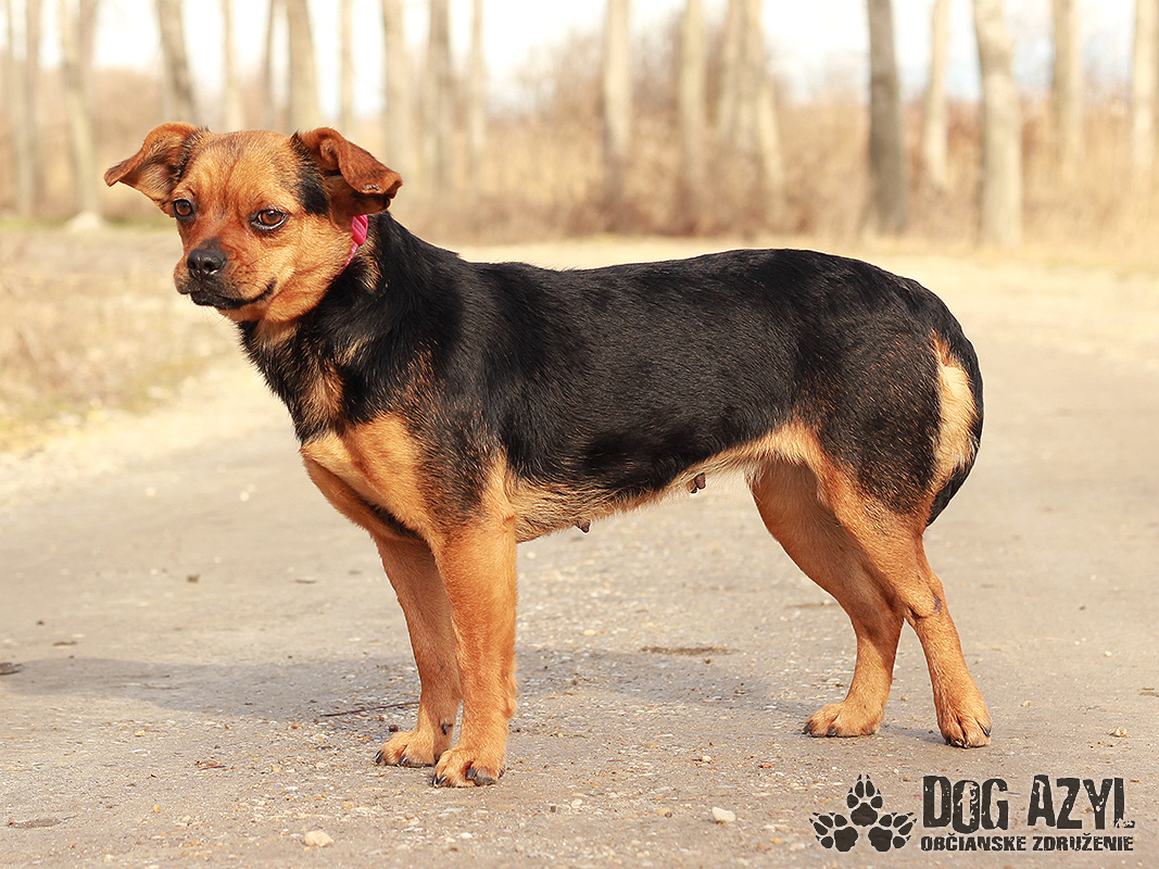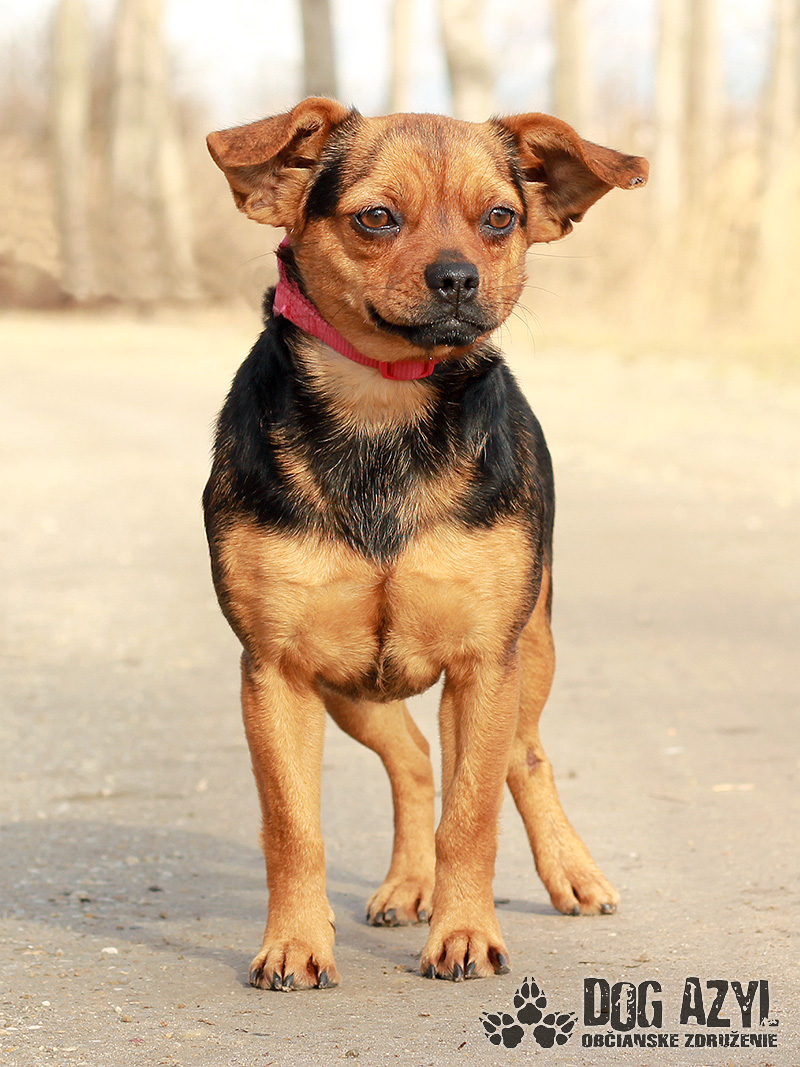 Dorie, narodená cca február 2018, k nám prišla spolu s kamošom Dorianom zo Zlatnej na Ostrove. Obaja pochádzajú z nevhodných podmienok, žili pri opustenom dome a vybehávali na ulicu, kde im hrozilo nebezpečenstvo. Dorie v sebe pravdepodobne nesie gény mopsa, čivavy, alebo niečoho veľmi podobného plemena. Kríva na zadnú nožičku, má pravdepodobne zle zrastenú zlomeninu, ktorú samozrejme budeme riešiť akonáhle sa bude dať. Je to rozkošné, láskyplné ale občas aj tvrdohlavé mojkadlo. Je v podstate bezproblémová, ale bude potrebovať stanoviť hranice, lebo Vám ľahko prerastie cez hlavu. Ona sa len tvári nevinne, ale presne vie čo chce a kedy chce :) Nemá problém so psíkmi ani fenkami, ale k mačičkám vhodná nie je. S kamošom Dorianom si rozumejú veľmi dobre, má ho pod papučou :) V dokonalom svete by sme si želali, aby sa mohli adoptovať spolu, ale žiaľ to asi nepôjde :/ Takže hľadáme domov pre Dorie, v ktorom bude nadovšetko milovaná a kde bude plnohodnotným členom. Ideálne by sa jej bývalo pri rodinnom dome, kde by mohla mať aj psieho kamoša (ideálne Doriana :) ) ale to samozrejme podmienka nie je. Podmienka však je celoročné bývanie v dome. Ak by sa mala adoptovať do bytu, bude treba doladiť hygienické návyky a venčenie na vodítku. Vodítko ovláda podľa svojich predstáv :) Na svoju druhú šancu čaká od januára 2020.