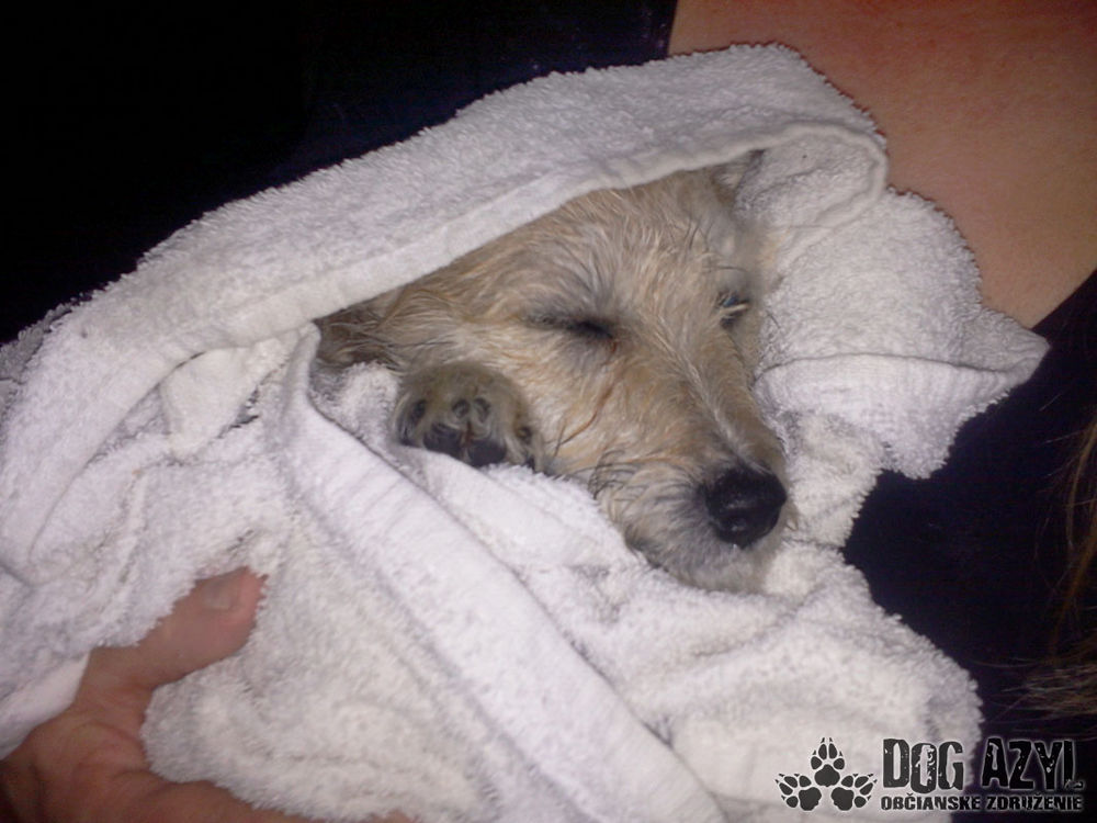 Elza je ako šteniatko z rozprávky Lady a Tramp :) Maličká nám bola nahlásená v Dunajskej Strede, kde sa nachádzala na ulici, je to asi 2 mesačné šteniatko kríženca. Je maličká a nádherná, trochu sa bojí, aj sa od strachu pocikala, ale inak je milá, prítulná, okúpaná a len spinká :)