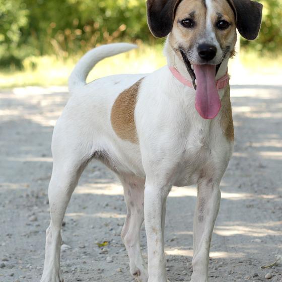 Gerda, geboren ca. im September 2016, wurde in Velky Meder gefunden. Ohne Bezeichnung, keiner hat sie gesucht. Wir suchen für sie eine neue Familie. Bisschen energische Familie Gerda ist ein selbstbewusstes Mädel und hat viel Energie. Sie ist aktiv, verspielt und lächelt immer. Sie hat keine Angst von niemandem uns vom nichts. Sie liebt die Menschen und befreundet sich schnell mit den Fremden. Gesellschaft von anderen Hunden macht ihr nichts aus, sie spielt sehr gerne. Die Leine beherrscht sie ganz gut, ihr gefehlt es manchmal nicht, wenn sie nicht gehen kann wohin sie will. Das Gen von Beagle kann sie nicht verbergen, die Dickköpfigkeit ist eindeutig davon. Sie sucht Familie, die genug Zeit für sie haben wird. Sie braucht liebevolle aber konsequente Erziehung. Ideal wäre ihr bei einem Haus, auch mit einem vierbeinigen Kumpel, aber nur mit dem Zugang ins Haus zur Familie. In der Wohnung hat sie wahrscheinlich nie gelebt, aber bei Sicherung von viel Bewegung würde sie sich sicher schnell gewöhnen. Gerda wartet auf ihre zweite Chance seit Mai 2017.