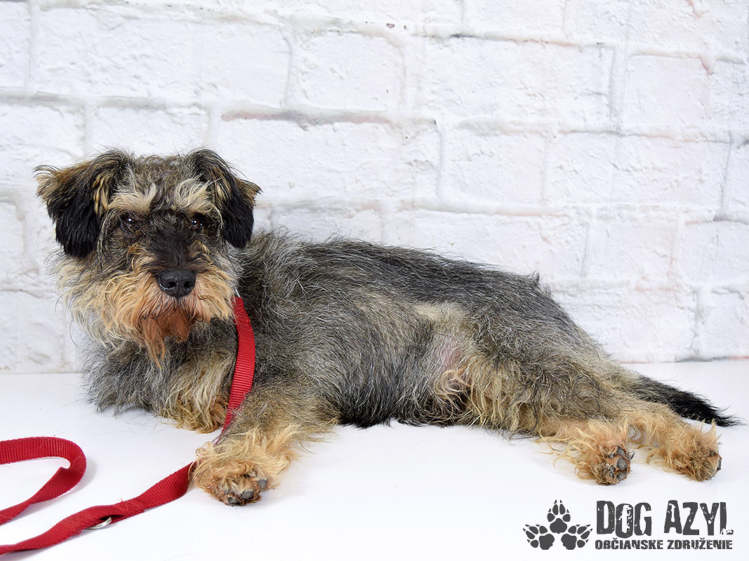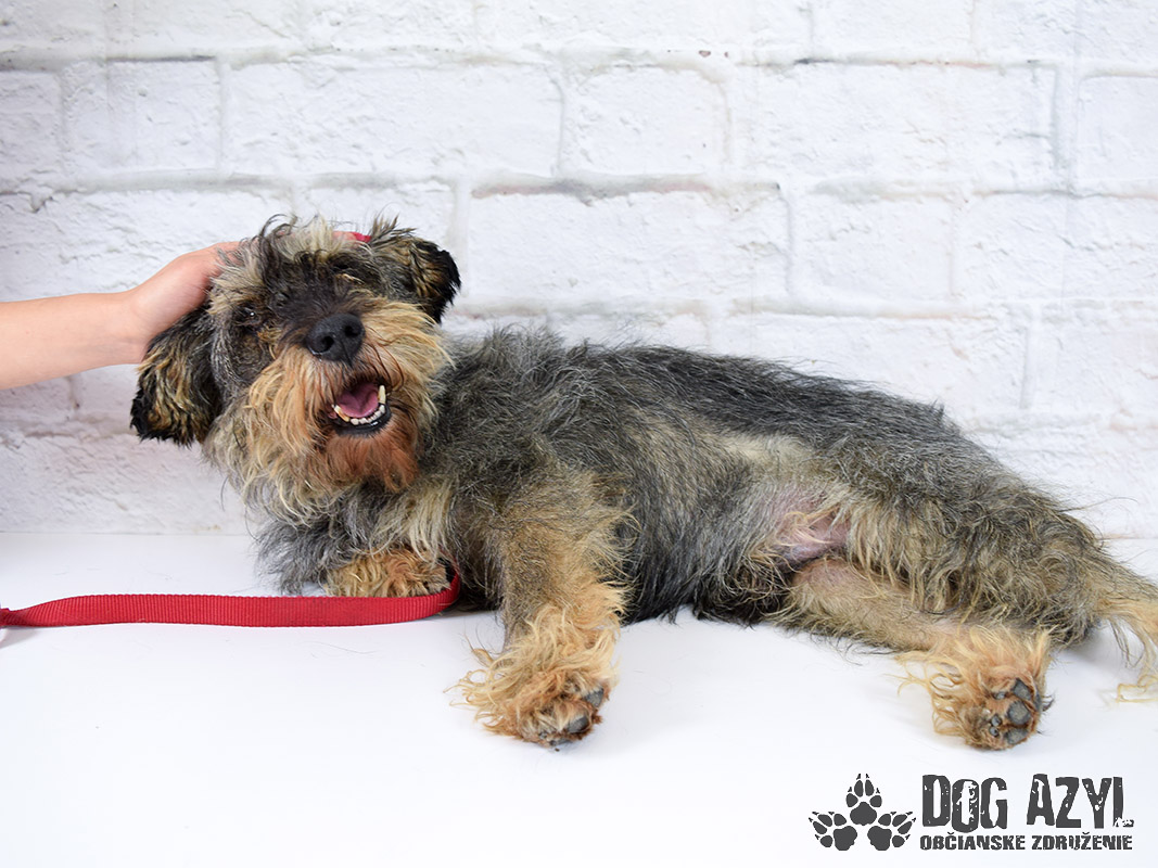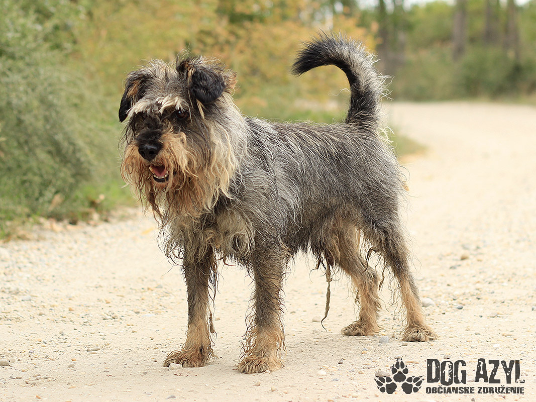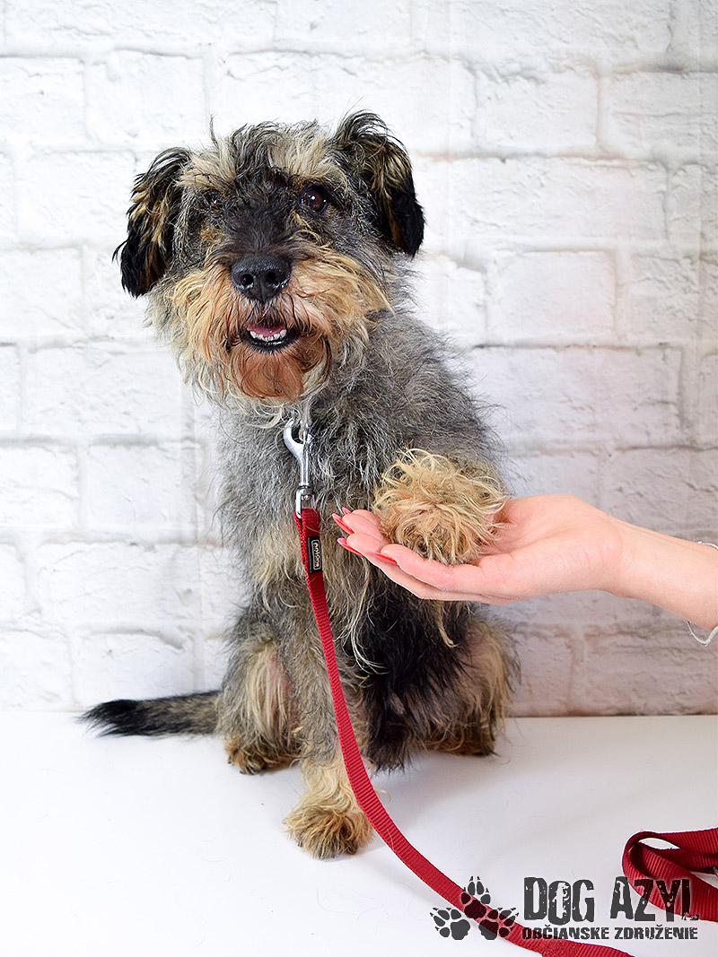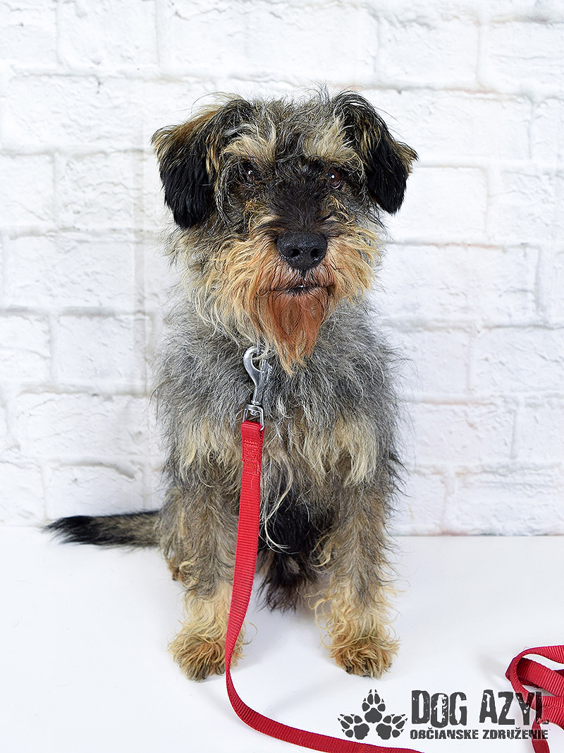 Jason, narodený júl 2009, sa k nám dostal po smrti svojho majiteľa, zo Zemianskej Olče. Na prvotných fotkách je vidieť ako to padne, keď sa zvolí nesprávny psík na dvor, k starým rodičom :( Jason bol žiaľ v ešte horšom stave, a vôbec nebol naučený na hrebeň a nožnice už vôbec nie. Bránil sa ako sa len dalo, ale pekne postupne zisťuje, že drobné kozmetické úpravy mu vlastne prospievajú :) Jason je pravdepodobne kríženček bradáča, alebo niečoho veľmi podobného, tvrdohlavého plemena. Je na ňom dokonale poznať, že žil s človekom, bol občas aj pohladkaný, ale žiadna výchova, ani socializácia sa mu neušla :( Pokiaľ si môže žiť podľa svojich pravidiel, je to anjelik, ale akonáhle má robiť niečo podľa pravidiel niekoho iného to sa mu už veľmi nepáči. Obávame sa, že útulok bude Jasonovým posledným domovom. Kto by predsa chcel ufrflaného deda anarchistu?! Ale zase na druhej strane, práve tou svojou ufrflanou dedkovskou povahou je tak výnimočný :) Robí veľké pokroky a v kľudnom domácom prostredí by určite napredoval ešte rýchlejšie. Stresové prostredie v útulku na neho nemá vôbec dobrý vplyv. Dedko by sa potešil aj dočasnej opatere, kde sa pripraví na svoj skutočný domov. Je to nenáročný psík samotár, ale veľmi rád sa pomojká. Nechá sa kľudne zdvihnúť na ruky, rád vyskočí na kolená aby sa pomojkal, vodítko ovláda bez problémov, prechádzky miluje a rád behá aj za loptičkou (keď sa mu chce) :) V koterci sa tiež rád zahrá s loptičkou alebo inou hračkou. Veľmi prosíme za tohoto strapatého "čudáka", skúste mu niekto dať šancu aspoň vo forme dočasnej opatery, kde by sa mohol pekne socializovať, naučiť sa, že ruka neublíži. Bude z neho super kamoš na prechádzky aj na leňošenie, len potrebuje trocha prísnejšie pravidlá. Ideálne by sa mu bývalo pri rodinnom dome, kde by mohol okupovať dvor, ale potrebuje celoročný prístup k svojej rodine. Ak by ste uvažovali o adopcii do bytu, bude treba počítať s tým, že nikdy v byte nežil a naučiť ho chvíľu vydržať sám a samozrejme doučiť hygienické návyky. Jason čaká na svoju druhú šancu od júna 2019.