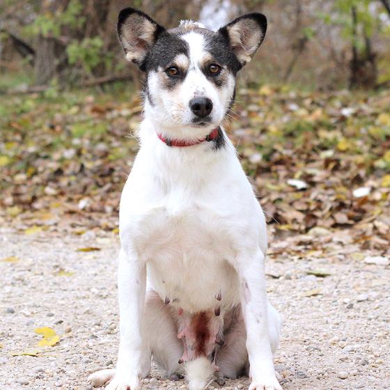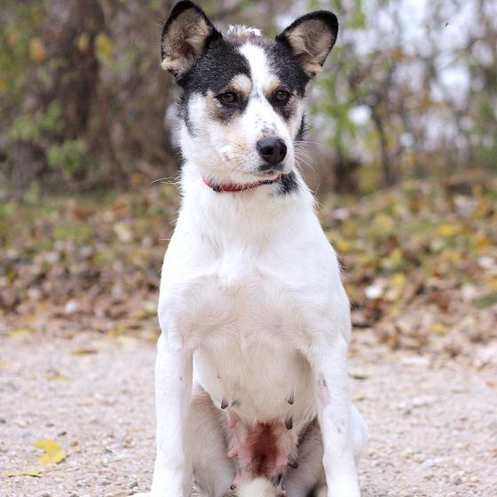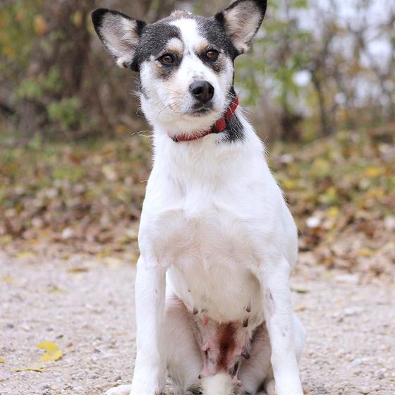 Kalani, narodená cca október 2021, k nám prišla z obce Okoč. Rodina ju darovala o pár dedín ďalej, kde hneď prvý deň utiekla a vystrašene behala po uliciach. Jej odchyt bol priam nemožný, bola na smrť vystrašená. Po chvíli pátrania sme našli jej pôvodnú majiteľku, ktorá ju prišla odchytiť a na základe vzájomnej dohody sme Kalani radšej prevzali do našej starostlivosti. Zo začiatku nebola ani v útulku veľmi nadšená, ale stačilo pár dní aby pochopila, že je v bezpečí a nič zlé jej už nehrozí. Vykľula sa z nej úžasná, láskyplná, prítulná a veľmi priateľská sučka, ktorá je síce zo začiatku trocha hanblivá pred cudzími ľuďmi, ale veľmi rýchlo sa kamaráti a osmeľuje. V spoločnosti iných psíkov je nekonfliktná, ale väčším psíkom zo začiatku nedôveruje a má z nich trocha strach. Je oveľa spokojnejšia keď okolo nej nepobehujú blázniví puberťáci, stačí jej láska človeka. Je vhodná aj do menej aktívnej rodiny, nepotrpí si na kilometrové prechádzky, ale veľmi rada sa prejde po okolí. Na vodítku je zatiaľ tiež trocha opatrná, ale láskavým a trpezlivým prístupom sa istotne rýchlo osmelí a zistí, že prechádzky sú super. Ideálne by sa jej bývalo v rodinnom dome, ale výhradne s celoročným bývaním v dome. Vie sa veľmi naviazať na človeka, potrebuje byť členom svojej rodiny a nie ozdobou na dvore. Ak zvažujete adopciu do bytu, bude jej treba zabezpečiť dostatok pohybu, pravidelné prechádzky a samozrejme doladiť hygienické návyky. Na svoju druhú šancu čaká od októbra 2024.
