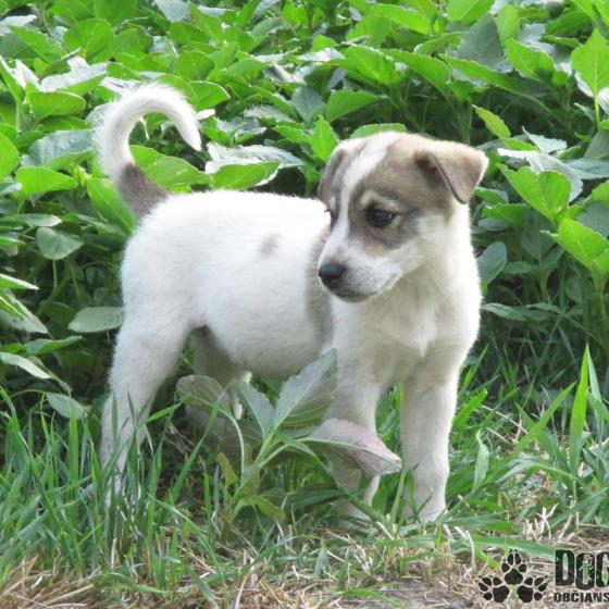 Lara je šteniatko s veľmi tragickým osudom. Bola nájdená v obci Jahodná ako sedí pri mŕtvych telíčkach svojej maminky a sestričky, ktoré zrazilo auto, ona tam sedela, nevediac, kam má ísť, čo má robiť :( Až jeden pán tadiaľ išiel a bolo mu malej ľúto, dve telíčka odtiahol z cesty a malinkú nám doviezol do bezpečia, zrejme jej život visel na vlásku a možno o 5 minút neskôr by už nežila ani ona... Bez pomoci by bola umierala hladom a smädom pri svojej mŕtvej mamičke :(