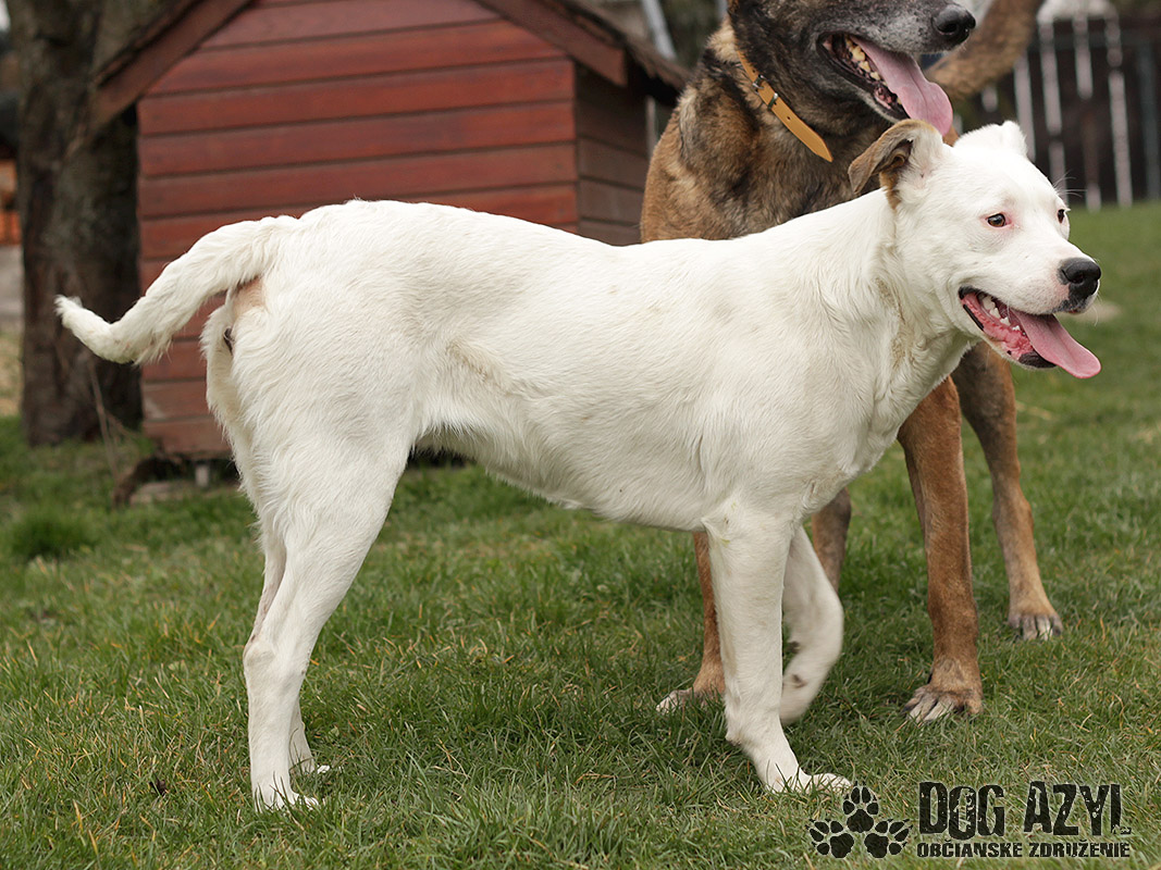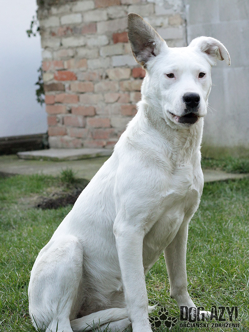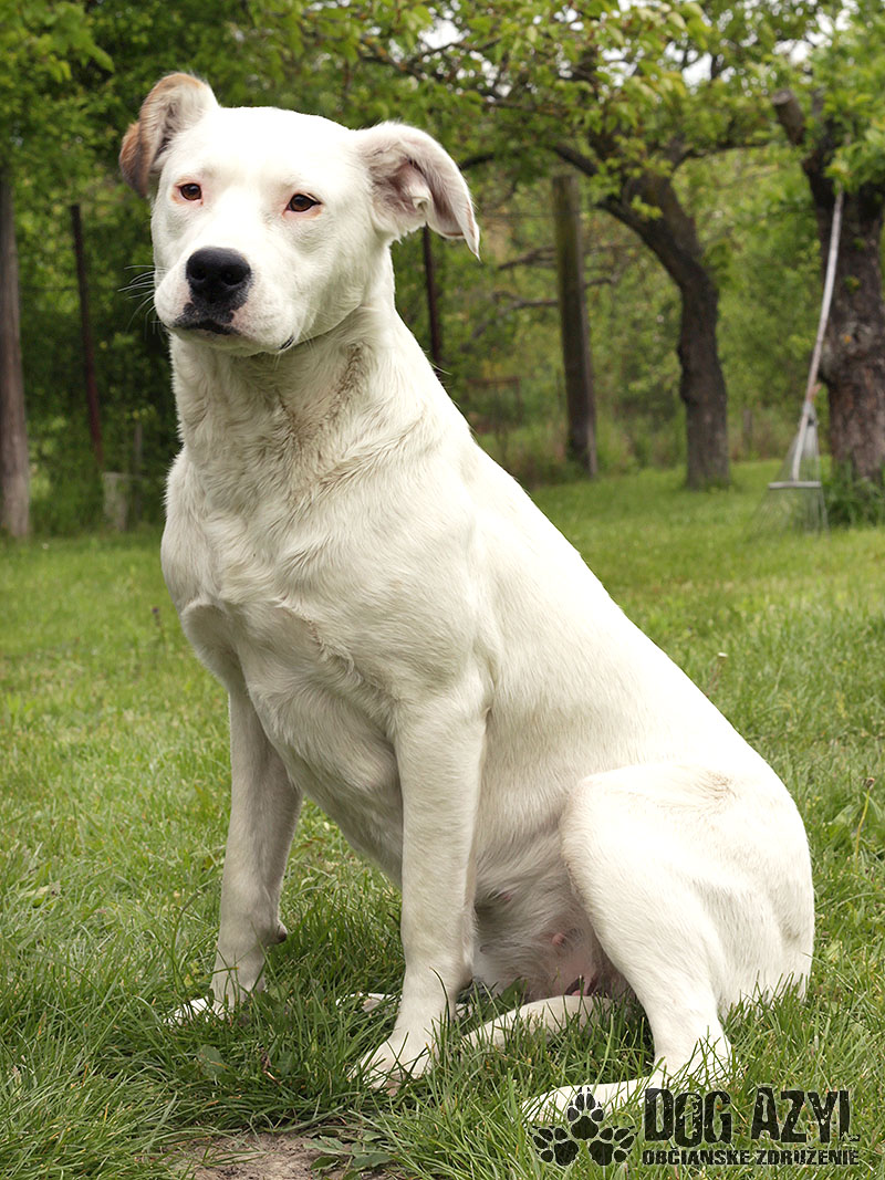 LILLY, geboren ca. im August 2015, wurde in Velka Paka gefunden. Sie ist über die Kneipe rumgelaufen, hat wahrscheinlich ihren Herrchen gesucht. Keiner hat sich zu ihr gemeldet also blieb sie ohne Familie. Gott sei Dank musste sie nicht in den unzarten Kotter, sie konnte bei den Findern in der Pflege bleiben. Lilly ist zauberhaftes Mädchen, sehr lieb, aufmerksam und schmiegsam. Von unbekannten Menschen zuerst bisschen scheu. Es reicht sie zu streicheln, ein paar lieben Worten und sofort gehört sie ihnen Sie liebt Bälle, Spiele und ihr Bauch. Erziehung war bis jetzt nicht viel da aber das kann man nachholen. Lilly lernt gern und für etwas Köstliches holt sie das Blaue vom Himmel für Sie. Es ist noch ein Welpe, wahrscheinlich ein Mischling von Dogo Argentino, deshalb wird sie gross sein. Schon jetzt ist sie gross und wird noch wachsen. Sie hat perfekter Charakter, ist ruhig, zerstört nichts und bellt nicht sinnlos. Anwesenheit von anderen Hündinnen und Rüden macht ihr nichts aus. Sie ist auch zu den Kindern geeignet, besser zu den grösseren, die bereits wissen wie sich zu den Hunden behalten sollten und die beim Spielen vorsichtig sind, denn sie wird wirklich gross. An der Leine zu gehen lernt sie aber sie mag lieber auf dem Hof zu laufen. Ideal wäre ihr bei einem Familienhaus, wo sie ausreichende Möglichkeiten zum Laufen hätte, aber ausschliesslich mit dem Zugang zur Familie, sie muss ein Familienmitglied sein.