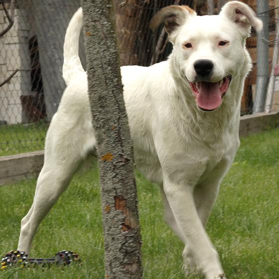 Lilly, narodená cca august 2015, sa našla vo Veľkej Pake, kde sa motala okolo krčmy, pravdepodobne hľadajúc svojho pána. Žiaľ nikto sa k nej nepriznal, nikto ju nepoznal a tak zostala Lilly bez rodiny. Našťastie nemusela ísť do útulku, do drsného koterca, ale mohla zostať u nálezcov v dočasnej opatere. Lilly je úchvatné dievčatko, veľmi milé, prítulné, kontaktné a pozorné, aj keď sa cudzích ľudí zo začiatku trocha stráni. Stáčí však pohladenie a pár milých slov a hneď si ju získate :) Miluje loptičky, šantenie a svoje bruško :) Výchovy sa jej zatiaľ moc neušlo, ale všetko sa dá dobehnúť. Lilly sa rada učí, a hlavne za pamlsok Vám aj modré z neba znesie. Je to ešte šteniatko, pravdepodobne kríženec argentínskej dogy, takže v dospelosti bude veľkého vzrastu. Už teraz je dosť veľká a ešte aj porastie. Má perfektnú povahu, je kľudná, nič neničí, nie je zbytočne uštekaná. Prítomnosť psíkov ani feniek jej neprekáža a je vhodná aj k deťom, ale radšej k väčším, ktoré už vedia ako sa správať so psíkom a ktoré vedia byť opatrné pri hre, lebo Lilly bude ozaj veľká. Vodítko sa pekne učí, ale radšej si pobehá na dvore. Ideálne by sa jej bývalo pri rodinnom dome, kde by sa na dvore mohla do sýtosti vybehať, ale výhradne s celoročným prístupom k svojej rodine, potrebuje byť jej členom.