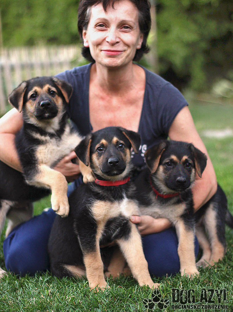 Erica, Charlie a Lowery, narodení cca máj 2015, boli odobratí z osady počas kastračnej akcie v Zlatých Klasoch. Šteniatka mali vtedy 3 týždne a v tých podmienkach by isto neboli prežili :( V dočasnej opatere u našej Majky sa však krásne dali dokopy a rastú z nich poriadni vlčiaci :) Mamka šteniatok je nemecký ovčiak, otec neznámy.