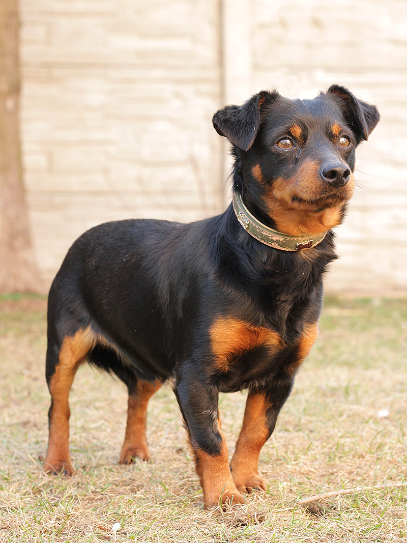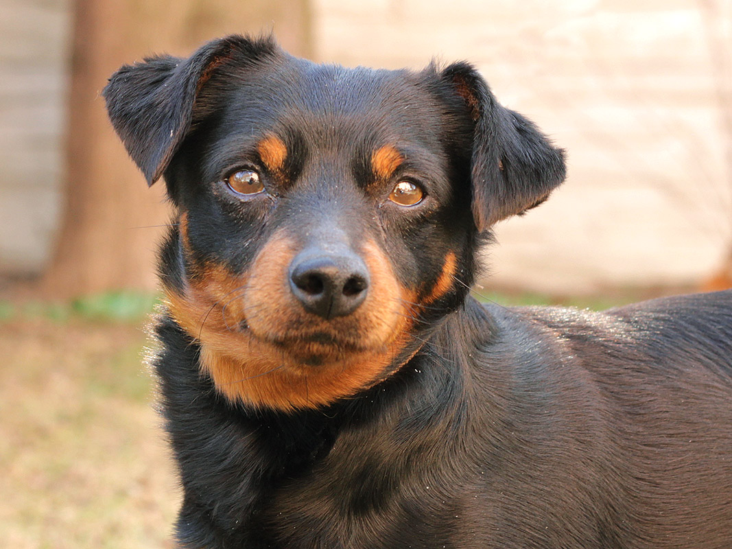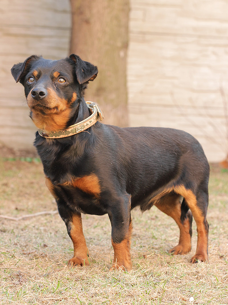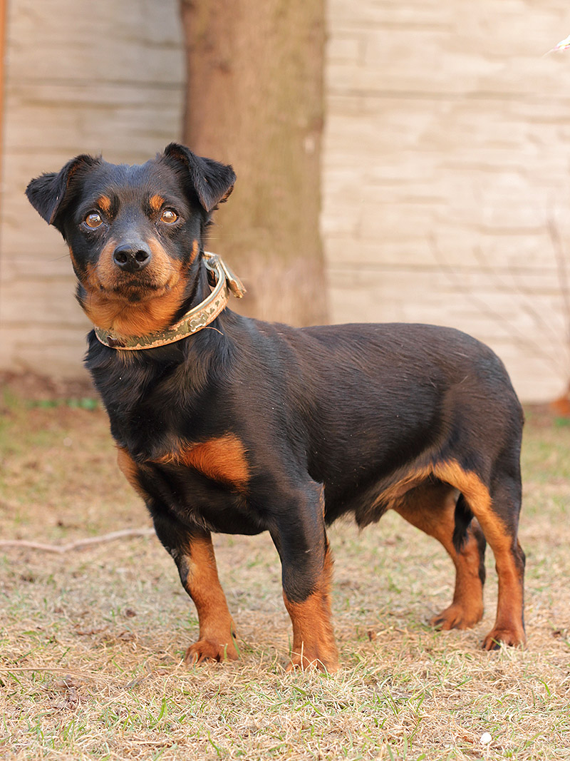 Luigi, familiárne len Lajoš, (vek upresníme) je asi dvojročný kríženec (pravdepodobne ratlíka a jazvečíka). Lajoš k nám prišiel zo Šamorína. Tento "mini rottweiler" Vás ochráni pred nepriateľom a to tak, že ho ulíže k smrti :D Luigi je maznák v pravom slova zmysle. Akonáhle máte voľné ruky, je tam, pýta sa hore a nechá sa mojkať aj celý deň. Je absolútne nekonfliktný, priateľský, znášanlivý so psíkmi aj fenkami. Nikto a nič mu nevadí, človeka zbožňuje, i keď sa cudzích prvých pár minút trocha stráni. Je nenáročný, ale dosť aktívny. Rád sa prechádza a rád si aj zabehá. Lajoš má necelých 6 kíl, je dokonale vhodný do bytu. Hygienické návyky si krásne osvojuje, vydrží doma sám, neničí, nešteká. Ak by sa mal adoptovať k rodinnému domu, tak výhradne s celoročným bývaním v dome. Na svoju druhú šancu čaká od februára 2017.