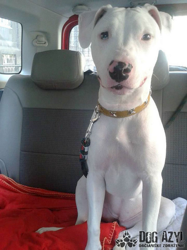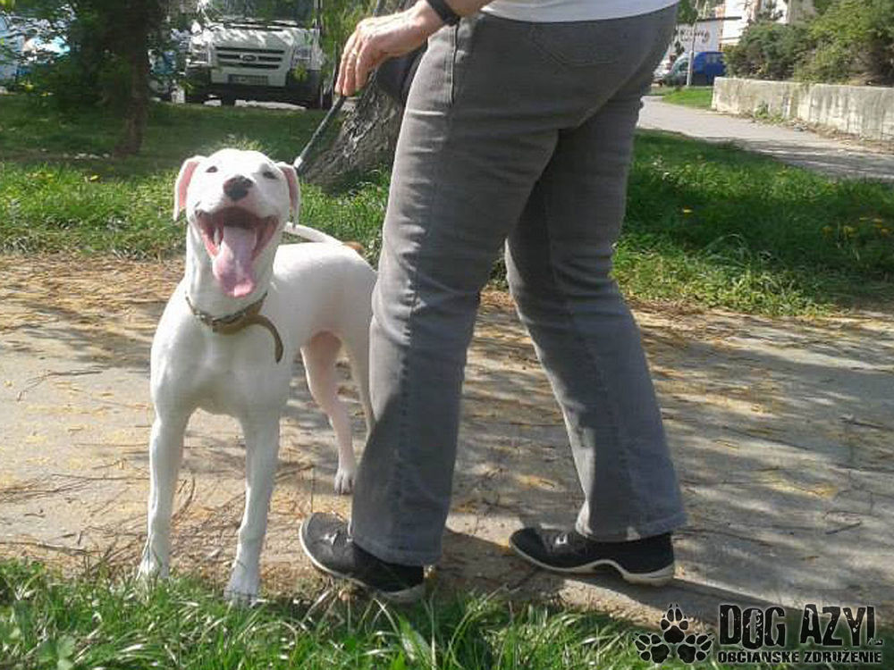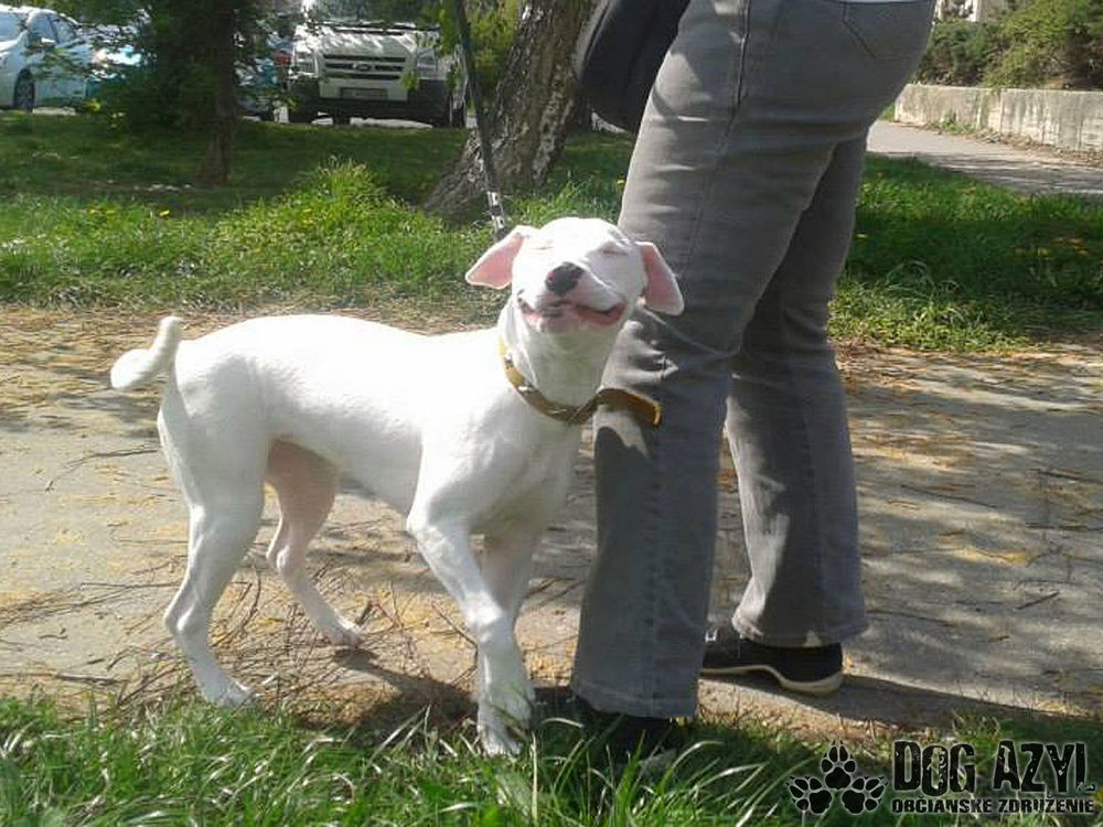Mimi je hluchá x argentínskej dogy - narodená 11/2013. Pôvodní majitelia ju nezvládli, pred 2 mesiacmi zistili, že je hluchá a chceli ju dať utratiť.