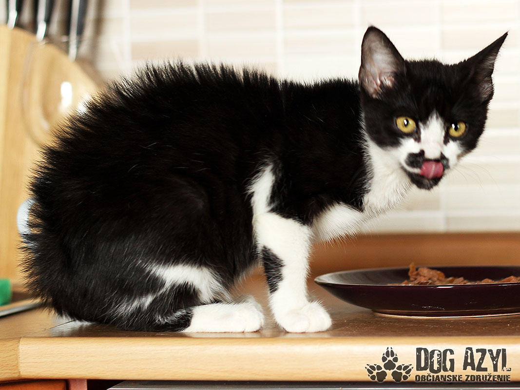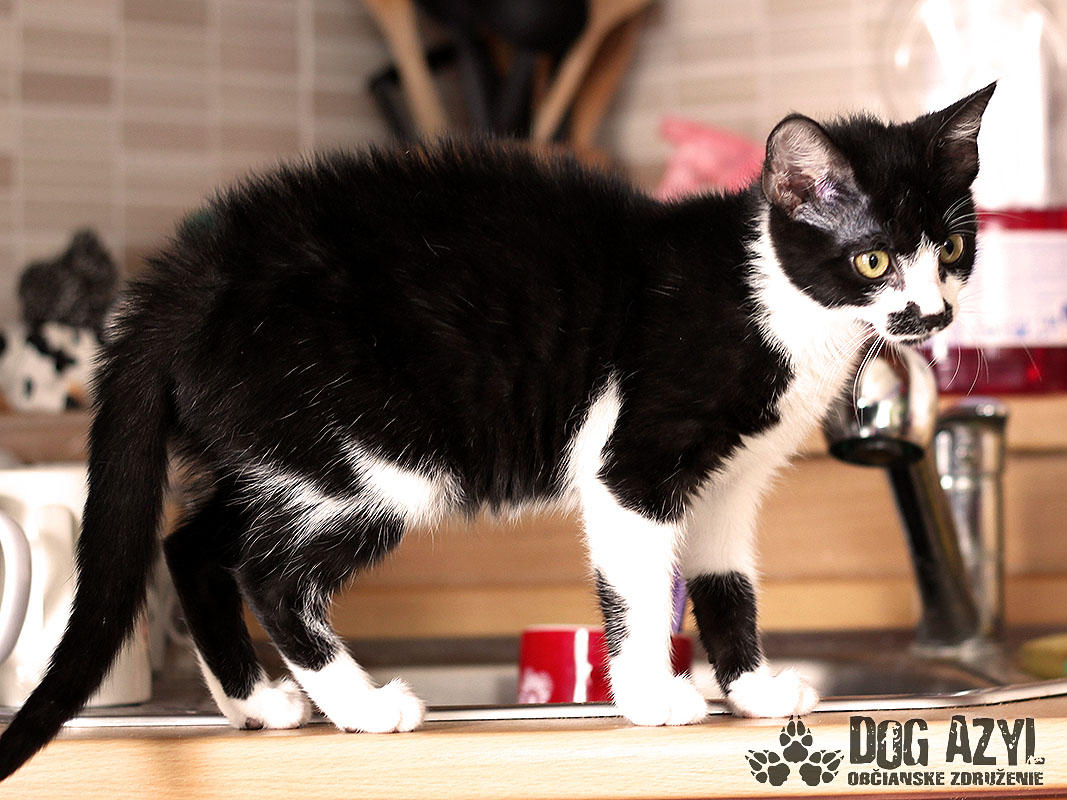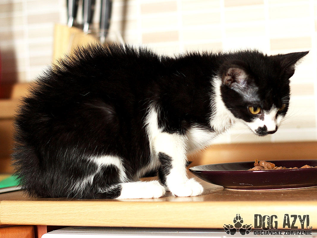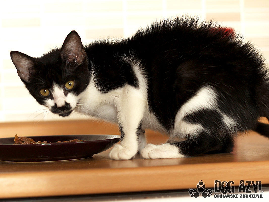 Nein, sie irren sich nicht, das ist wirklich ein Kätzchen :) und nicht nur irgendeins! Es ist absolut das erste Kätzchen in der Historie der Dog Azyl :) Mirtyl, geboren ca im Mai 2015 wurde an der Strasse beim Tierheim, ca 5 Minuten vor dem Tod, gefunden :( Desorientiert ist es rumgelaufen und hat sich im Maisfeld versteckt. War sehr ängstlich aber Gott sei Dank konnte man es schnappen. Kätzchen wurde dehydriert und sehr hungrig. Heuet ist es eine Schönheit, die ein liebevolles Zuhause sucht. Mirtyl ist derzeit in Pflege mit sechs Hunden. Bellen kann sie zwar noch nicht aber Befehl „Bleib" beherrscht sie schon ganz gut :) Ist sehr kuschelig, liebevoll aber auch neugierig und lebhaft. Was man nicht zur Seite legt, das ist gleich ihrs :) Sie sitzt gerne im Fenster und beobachtet das Leben auf der Strasse. Spielzeuge interessieren sie nicht besonders, es genügt ihr ein kleines Spagat und Stäbchen und sie kämpft damit den ganzen Tag :) Den ganzen Tag ist sie still aber sofort als sie Fressnapf sieht, miaut sie :) Sie ist nicht für ganztätigen Aufenthalt Draussen geeignet, aber ein Auslauf würde ihr Freude machen. Sie ist eher eine klassische Sofakatze :) sie ist 100%-lich stubenrein, benutzt Katzen-Toilette, niemals hat sie sich verfehlt :) Auf ihre Chance wartet sie seit Juli 2015.
