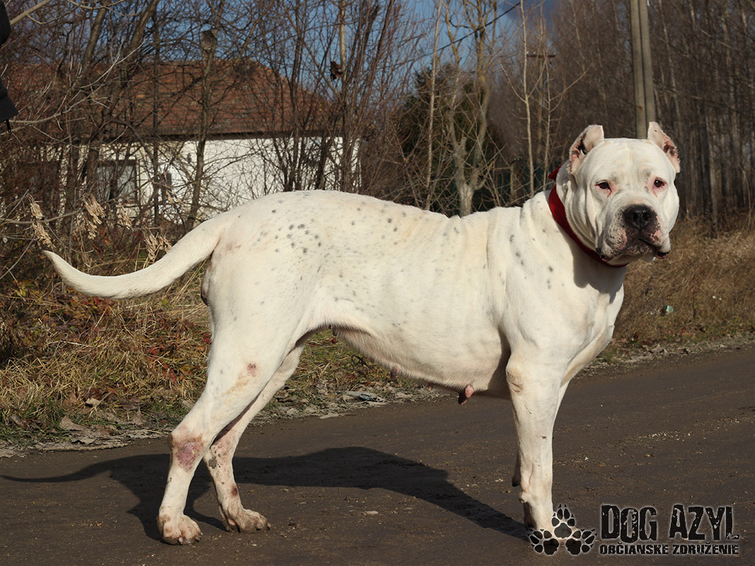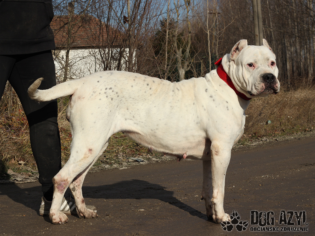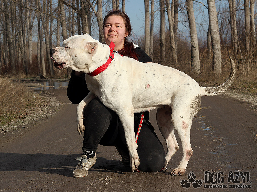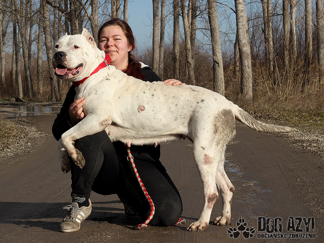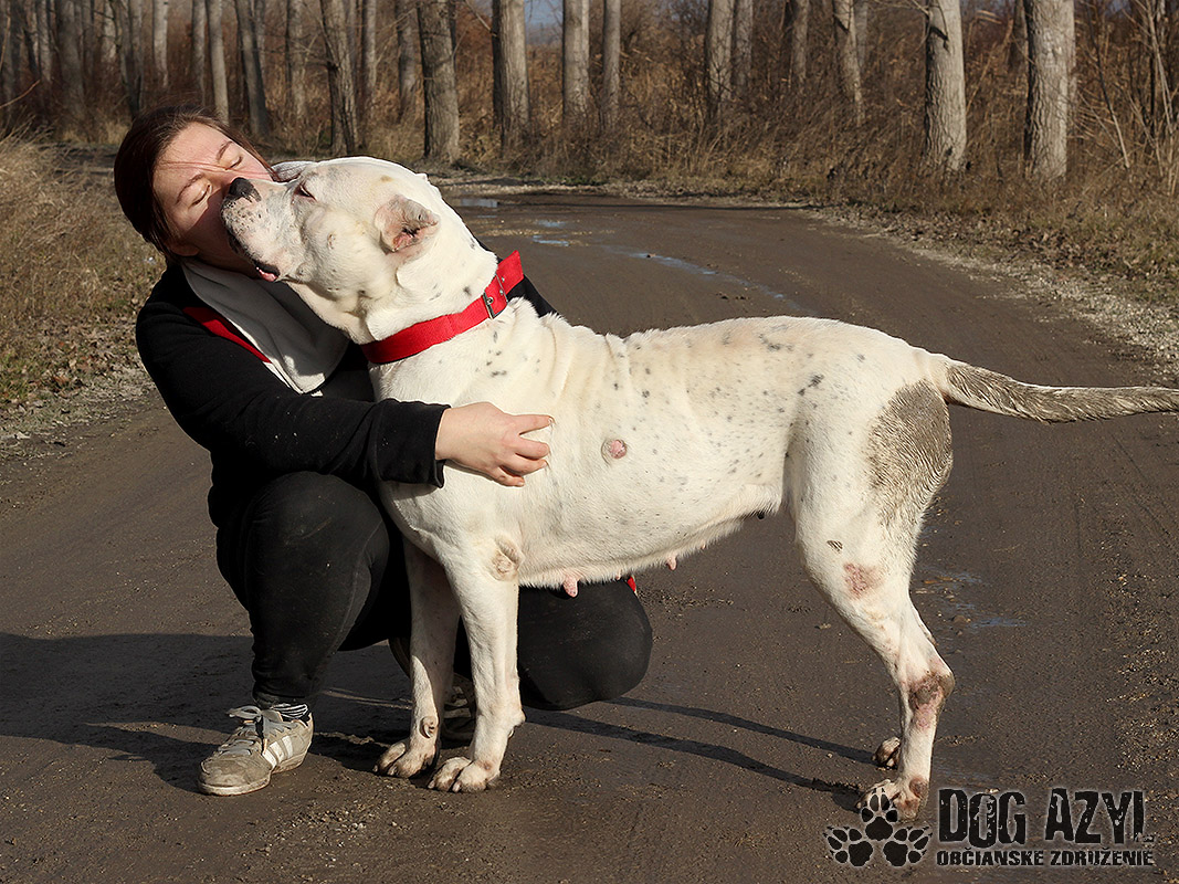 Netty, narodená cca júl 2016, k nám pôvodne prišla na krátky pobyt, kým si jej majiteľ neusporiada bývania. Keď sme ale zistili a akých strašných podmienkach žila a ako veľmi bola zdravotne zanedbaná, dohodli sme sa s majiteľom, že jej bude lepšie v novom domove, ktorý jej nájdeme my. Zo začiatku sice nebol myšlienke naklonený, lebo si asi prerátal ušlý zisk na namnožených šteniatkach, ale nakoniec pristúpil na podpísanie darovacej zmluvy. Netty tak dostala šancu na nový začiatok :) Je to veľmi priateľská, pokojná, vyrovnaná a tolerantná fenka argentínskej dogy, ktorej ale budeme hľadať výhradne rodiny, kde už už skúsenosti s podobným plemenom majú. Napriek tomu, že je Netty priateľská a milujúca kľudaska, ochranársky inštinkt v sebe nezaprie. Vie bez problémov tolerovať spoločnosť iných psíkov, lebo si je vedomá svojej sily a nepotrebuje riešiť nič, z čoho necíti hrozbu. Vodítko ovláda bez problémov, prechádzky miluje, ale treba mať dostatočnú silu aby ju človek udržal keď sa rozbehne. Ideálne by sa jej bývalo v rodinnom dome, ale výhradne s celoročným prístupom ku svojej rodine. Ale keďže väčšinu dňa prevegetí v pelechu, isto by si zvykla, pri pravidelnom venčení, aj na pohodlný gauč v byte. Na svoju druhú šancu čaká od novembra 2021. Prosíme len seriózny záujem!