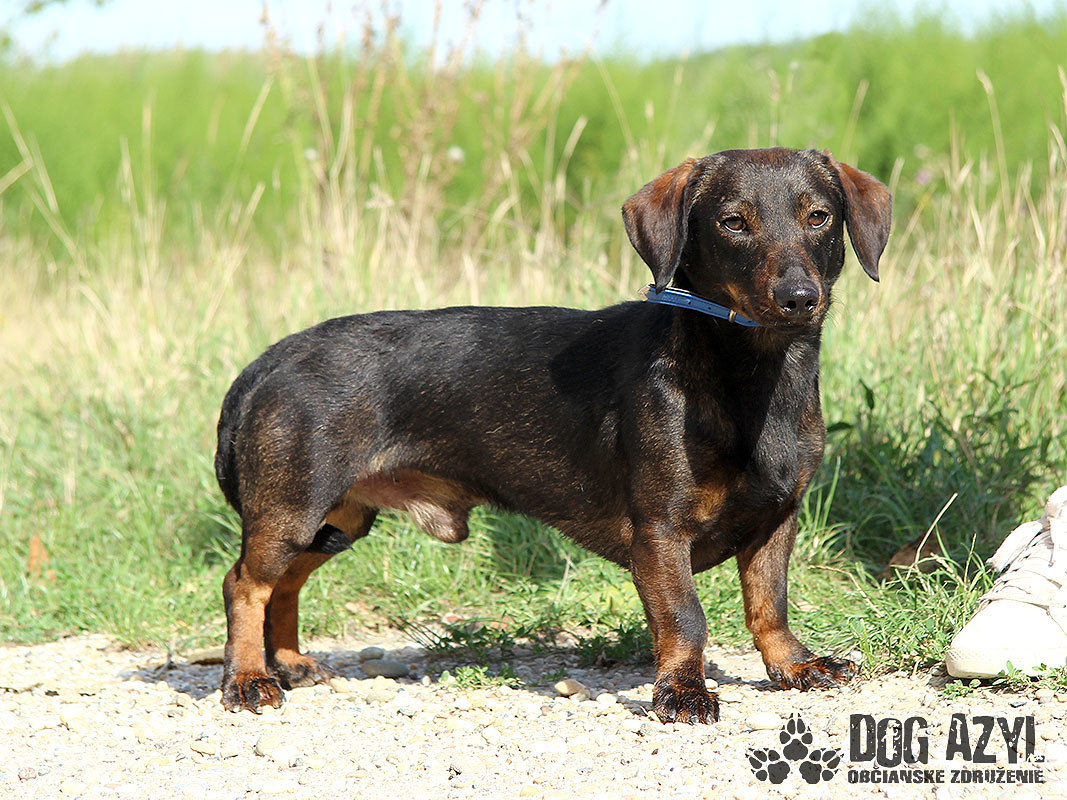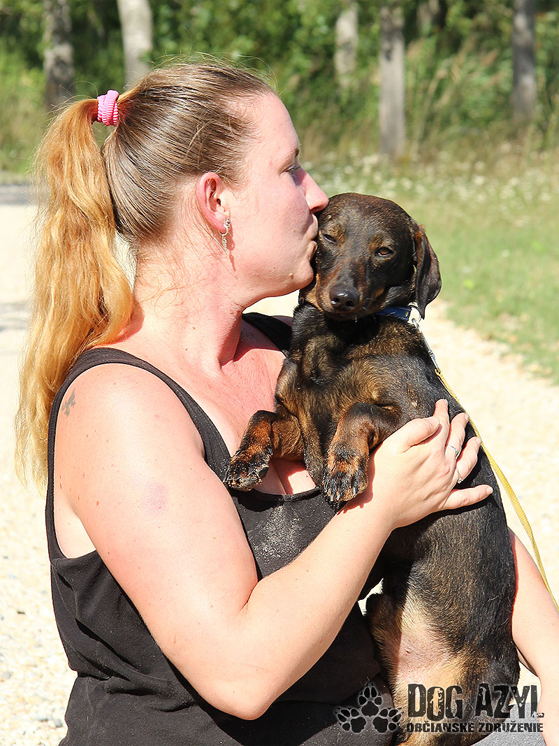 Niko, narodený cca august 2019, k nám prišiel z Malých Dvorníkov. Našiel sa na poli pri hlavnej ceste. S nálezcami sa hneď skamošil a vzali ho tak rýchlo do bezpečia. Nevieme či sa stal nepotrebnou po-prázdninovou hračkou, alebo len niekomu zabehol, ale nikto ho nehľadal a nikto sa k nemu nehlási. Hľadáme mu teda nový, láskavý domov, kde ho budú nadovšetko ľúbiť a nikdy viac ho neopustia. Je to malinký, skromný, nekonfliktný psík ale s génmi jazvečíka, takže určite bude mať aj zmysel pre humor :) Niko je prítulný, roztomilý mojkáč, ktorého si dokonale vieme predstaviť niekde na gauči, ale samozrejme až po výdatnej prechádzke. S vodítkom sa už pekne kamaráti, ale občas sa ešte zatne a treba ho trocha motivovať. Určite sa však rýchlo všetko zameškané doučí a bude z neho super parťák do voza aj do koča :) So psíkmi ani fenkami problém nemá, ale rád sa hrá na generála. Pri správnom vedení z neho isto bude vyrovnaný psík, s ktorým sa bude chcieť hrať každý chlpáč v širokom okolí. Ideálne by sa mu bývalo v rodinnom dome, ale výhradne s celoročným bývaním dnu so svojou rodinou. Je dokonale vhodný aj do bytu, ale bude treba doladiť hygienické návyky. Na svoju druhú šancu čaká od augusta 2020.