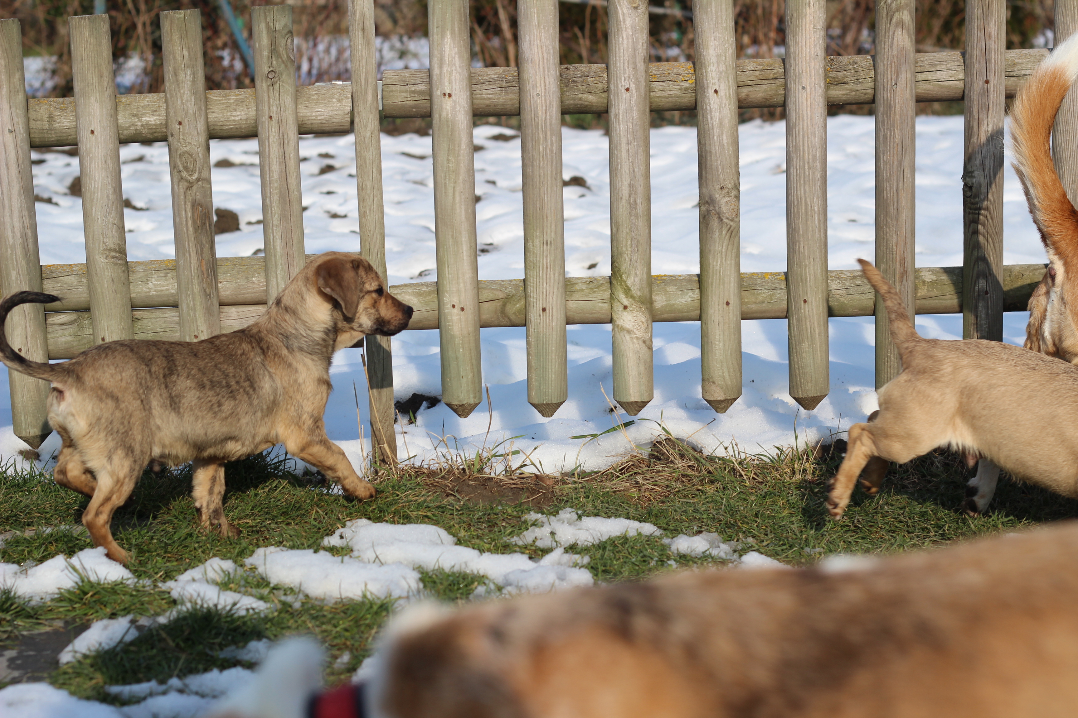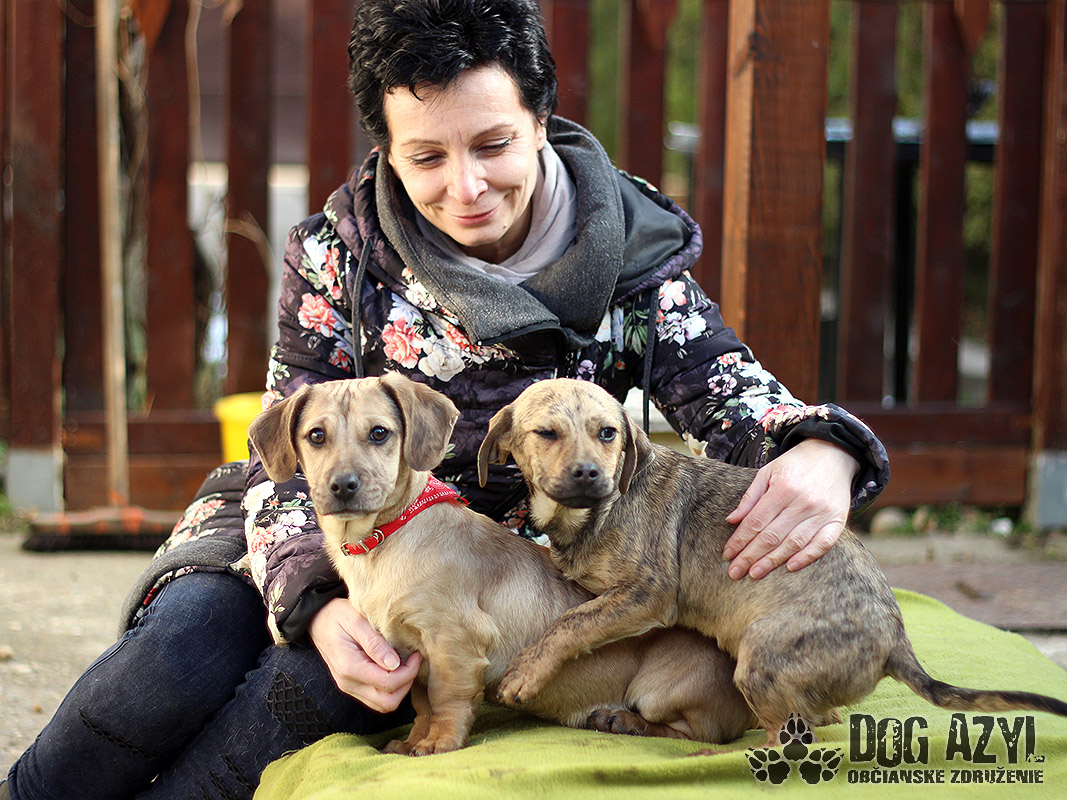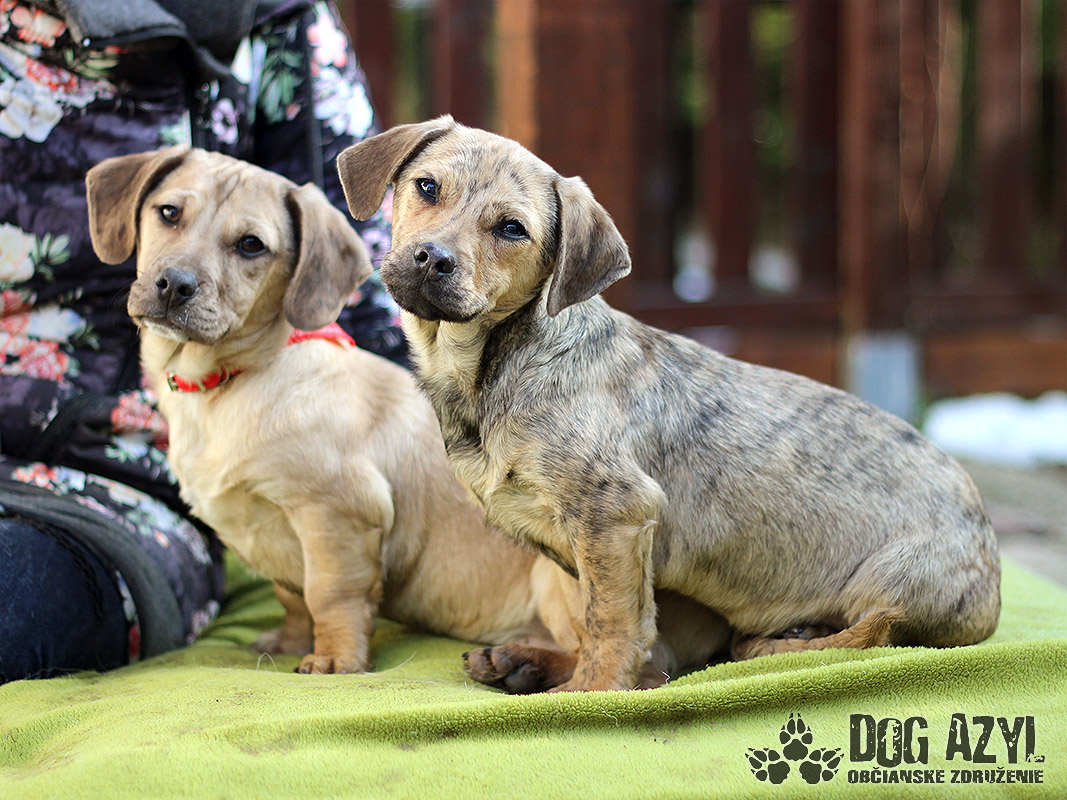 Brad und Pitt, geboren ca. im Dezember 2017, wurden in Velky Meder gefunden. Es sind kleine Lumpen, voll von Energie und Lust zum Leben. Sie lieben sehr die menschliche Gesellschaft, freuen sich über jeden Besuch und befreunden sich schnell mit den Fremden. Sie kennen die Welt der Spiele und Spielzeug lernen und lernen mit anderen Hunden zu leben. Sie sind in einer PS mit anderen Hunden. Die älteren Hunde, die nicht Lust zum Spielen haben, lassen sie in Ruhe und mit den jüngeren spielen sie wie verrückt. Sie lernen die Hygiene und obwohl sie so jung sind, halten sie die ganze Nacht durch und schlaffen. Sei lernen die erste Befehle und „sitz!“ beherrschen sie hervorragend. Brad ist von den beiden der mutigere, er kämpft um das Spielzeug mit anderen und wenn es ihm etwas nicht gefällt, bellt er. Anderseits wenn er in unbenannte Situation kommt, ist er ängstlich und misstrauisch und es dauert bis er sich dran gewöhnt. Pitt ist submisiv, reizendes Engelchen. Seine Neugier ist grösser als seine Angst, also überwältigt er als erste alle Hindernisse. Die Jungs warten auf neues Zuhause seit Jänner 2018, auch einzeln.