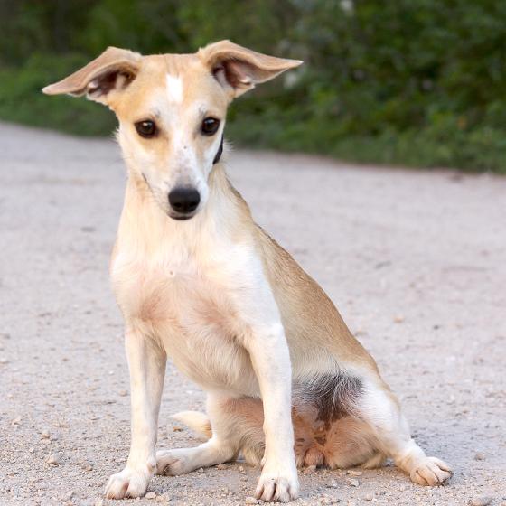 Prue, narodená cca cca jún 2021, k nám prišla spolu so svojou sestrou Piper zo Šaštína, kde žila s ďalšími dvadsiatimi psíkmi v jedinej izbe, vo vlastných výkaloch a samozrejme bez jedla a vody :( Psíky sa odoberali na podnet veterinárnej správy. Prue bola chvíľku zo zmeny trocha zmätená, ale trvalo asi desať sekúnd a hneď sa u nás zabývala :) Je to úžasná radostná, energická, bláznivá, vždy veselá fenka, ktorú sa nedá nemilovať. Kamaráti sa ihneď s každým a rovnako miluje psíkov, ako aj ľudí. Veľmi rada behá so svojimi kamarátmi vo výbehu ale rada si tiež poleňoší na gauči. Je prítulná, láskyplná, zvedavá a hravá, dokonale vhodná do mladej rodiny, s ktorou môže zažiť kopu zábavy a spoznať celý svet. Na vodítku si je zatiaľ ešte trocha neistá, ale pri láskavom vedení sa zaručene všetko rýchlo doučí. Je to nekonfliktná, pozorná, komunikatívna fenka, ktorá zapadne do každej spoločnosti. Ideálne by sa jej bývalo v rodinnom dome, kde by prípadne mohla mať aj psieho kamaráta, ale výhradne s celoročným bývaním v dome. Ak zvažujete adopciu do bytu, bude treba počítať s jej energiou, zabezpečiť jej dostatok pohybu a samozrejme doladiť hygienické návyky. Na svoju druhú šancu čaká od júna 2022.