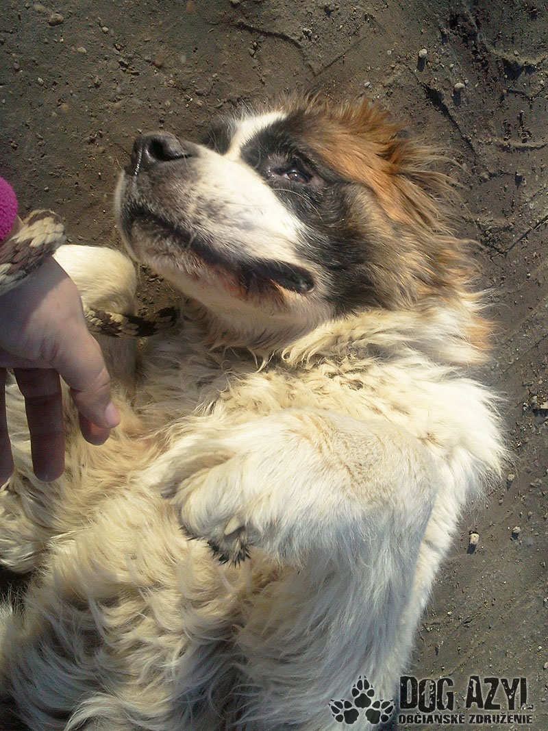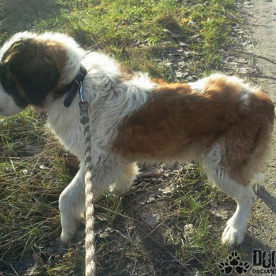 Ruby je sučka bernardína, prijatá 4.1.2014,narodená cca jeseň 2010, mladá sučka, ktorej majitelia sa odsťahovali a nechali ju na dvore samu, dom potom prenajali, ale ani noví nájomníci sa o ňu nestarali, ich pes Ruby nepustil k miske s jedlom a preto sa z krásneho psa stala kostrička, ktorú ukrýva huňatý kožúšok. Museli sme z nej vystrihať dredy a ošetriť oči, ale inak vyzerá byť v poriadku, len veľmi hladná. Ruby je milá sučka, má rada pohladenie, aj keď si ho asi za poslednú dobu veľa neužila, je kľudná, do koterca som ju niesla na rukach a to sme sa poznali asi 5 minút, vôbec neprotestovala. Ruby vám krásne ozdobí dvor a bude vás oddane milovať!