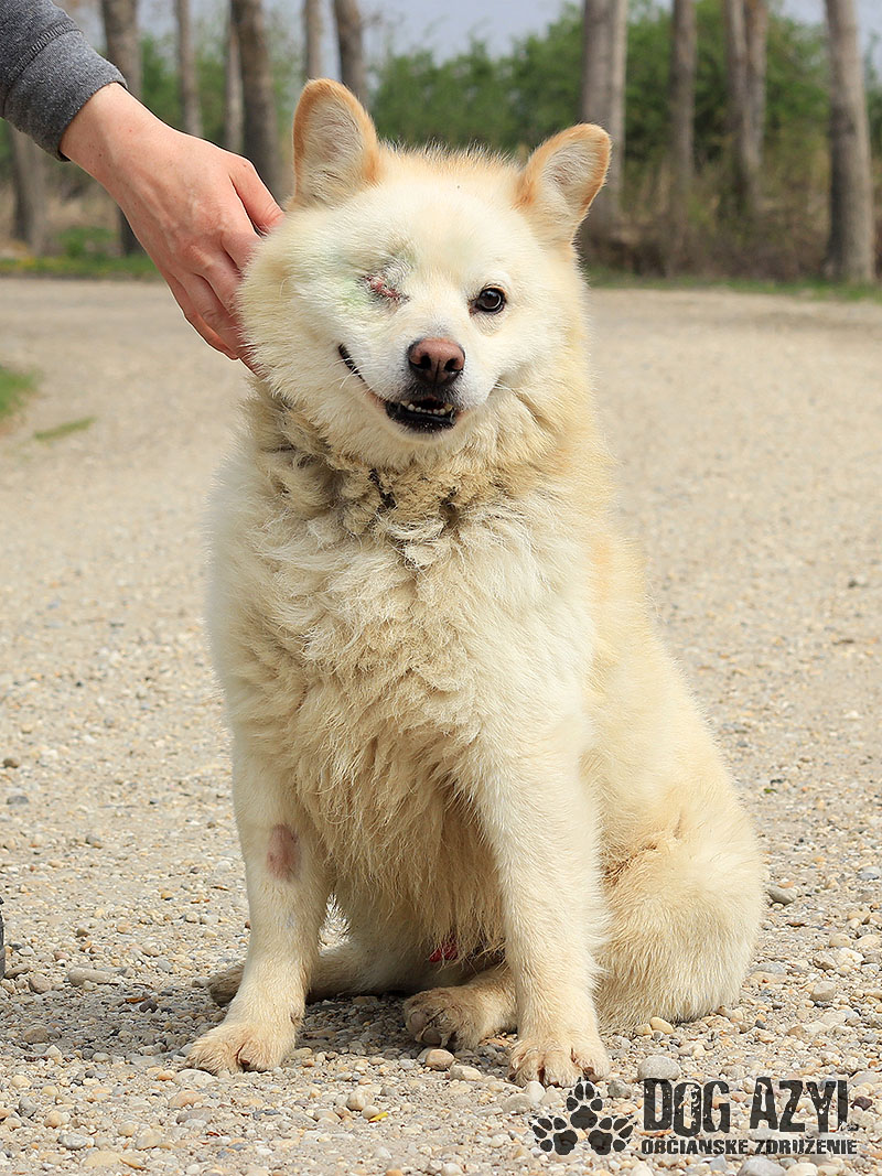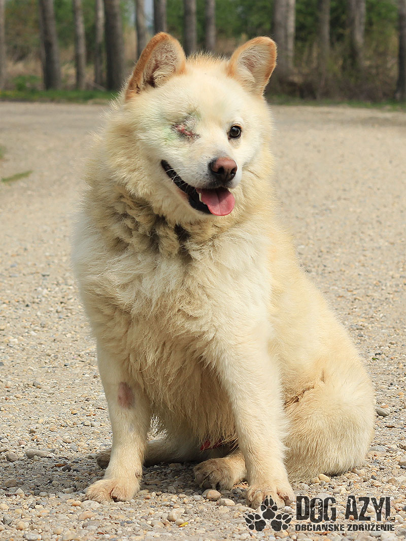 Snowie, narodený cca apríl 2017, sa našiel vo Veľkej Pake. Neviem čo sa mu stalo, ale mal vytečené očko, ranu bolo treba ošetriť a zašiť. Toto mu však vôbec neuberá ani na kráse ani na sebavedomí. Snowie je úžasné, tešivé, veselé, neskutočne priateľské, nekonfliktné psíča, ktoré vyčaruje úsmev na tvári úplne každému. Je dosť energický, neposedný, tak si hľadá aktívnu rodinu, ktorá mu dopraje veľa pohybu, prechádzky, výlety. Miluje ľudí, malých aj veľkých :) Je rovnako rád v ľudskej, ako aj v štvornohej spoločnosti. Kamaráti sa so psíkmi aj fenkami a rád by sa kamarátil aj s mačičkami. Nevadia mu, ale hrá sa dosť divoko, tak to bude treba doladiť výchovou. Snowie je konktaktný, pozorný mladúch, určite sa bude rýchlo a rád učiť. Vodítko ovláda skoro dokonale, ale vždy je čo doladiť :) Ideálne by sa mu asi bývalo v rodinnom dome, kde by prípadne mohol mať aj psieho kamoša, ale potrebuje celoročný prístup k svojej rodine. Je to ľudomil, na človeku závislý :) Ak by sa mal adoptovať do bytu, bude treba rátať s jeho energiou a postarať sa o jeho zábavu :) Snowie čaká na svoju druhú šancu od marca 2019.