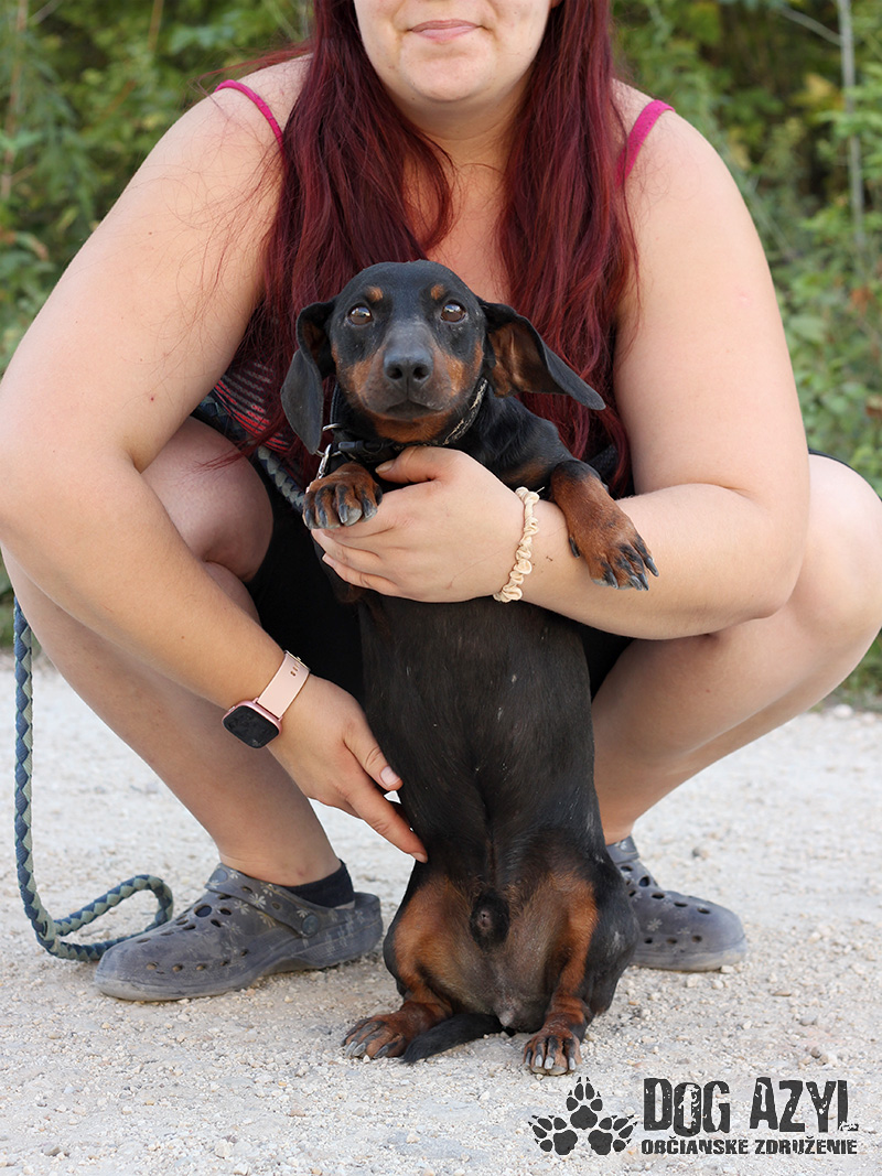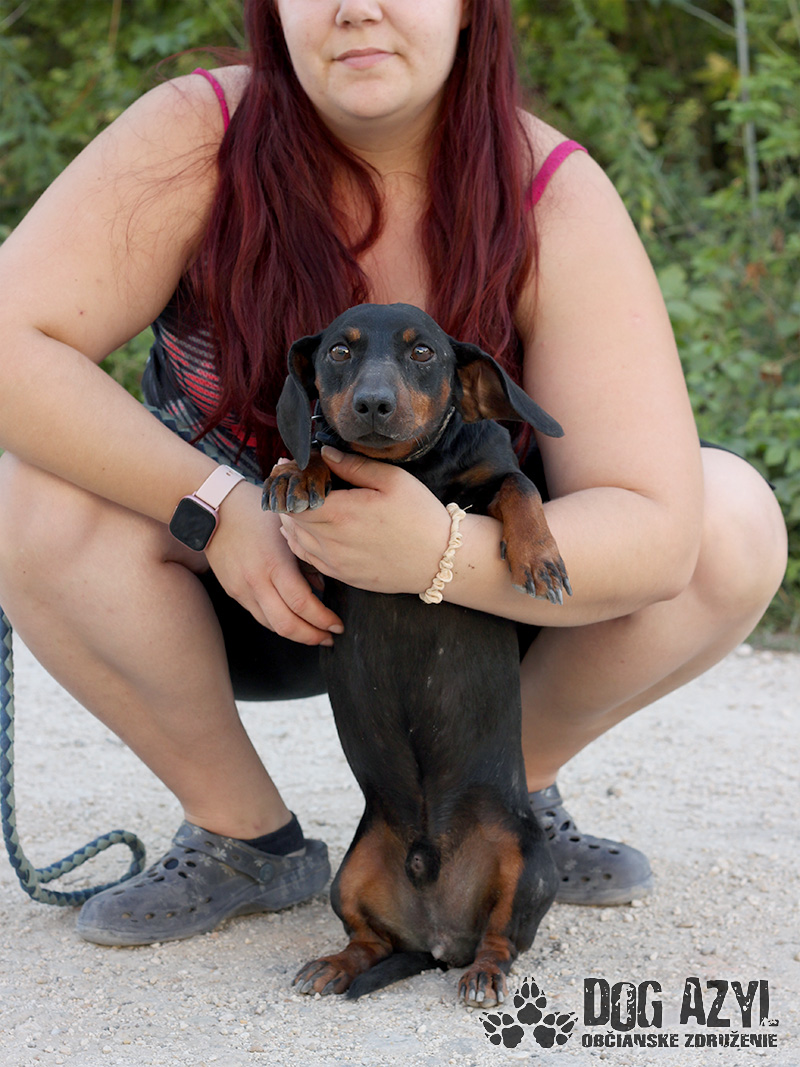 Taras, narodený cca august 2020, k nám prišiel z Gabčíkova spolu s kamarátkou Tori. Vôbec netušíme ako a prečo sa zrazu ocitli na ulici ale dodnes ich nikto nehľadal a drobci boli veľmi vystrašení. Trvalo im pár dní kým sa trocha upokojili a začali nám dôverovať, ale dnes sme už kamaráti a stali sa z nich radostní psíkovia, ktorí sú pripravení spoznať svoje nové domovy. Taras je tešivé, radostné a vždy veselé mojkadlo. Je veľmi rád v spoločnosti ľudí a nevadí mu ani spoločnosť iných psíkov či feniek. Je to typický milujúci a aktívny jazvečík, ktorý vie byť občas aj tvrdohlavý a rád vymýšľa šibalstvá. Vie sa veľmi naviazať na človeka, rád za ním celý deň cupitá. V známom prostredí je vyrovnaný, nebojácny a zvedavý ale v cudzom prostredí je zo začiatku trocha rezignovaný. Stačí ale pár pohladení, milých slov a veľmi rýchlo sa osmelí. Na vodítku chodí v podstate bez problémov, ale zatiaľ trocha nerozhodne a pomalšie, lebo sa potrebuje uistiť či je v bezpečí. Ideálne by sa mu bývalo v rodinnom dome, ale výhradne s celoročným prístupom do domu. Potrebuje byť členom rodiny a nie chytačom potkanov na dvore. Ak zvažujete adopciu do bytu, bude treba počítať s jeho temperamentom, zabezpečiť mu dostatok pohybu a samozrejme doladiť hygienické návyky. Na svoju druhú šancu čaká od augusta 2022.