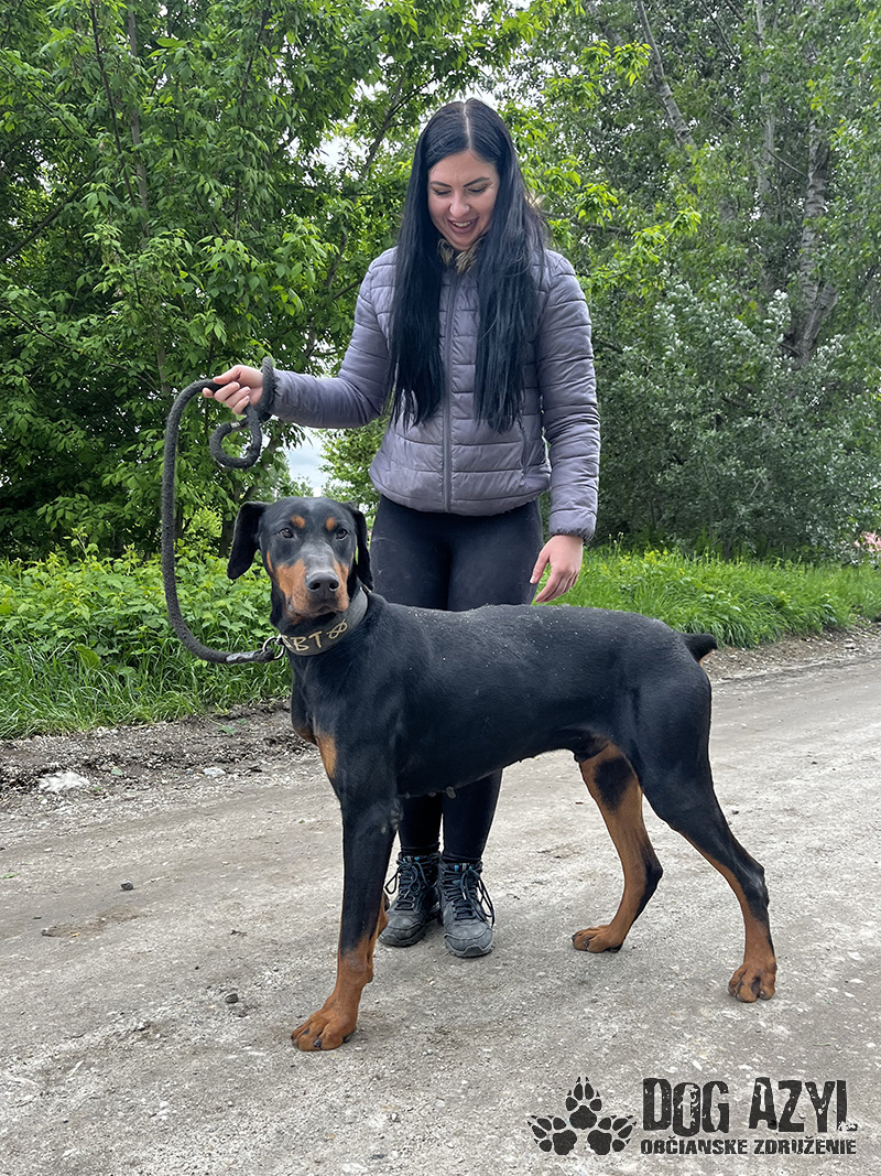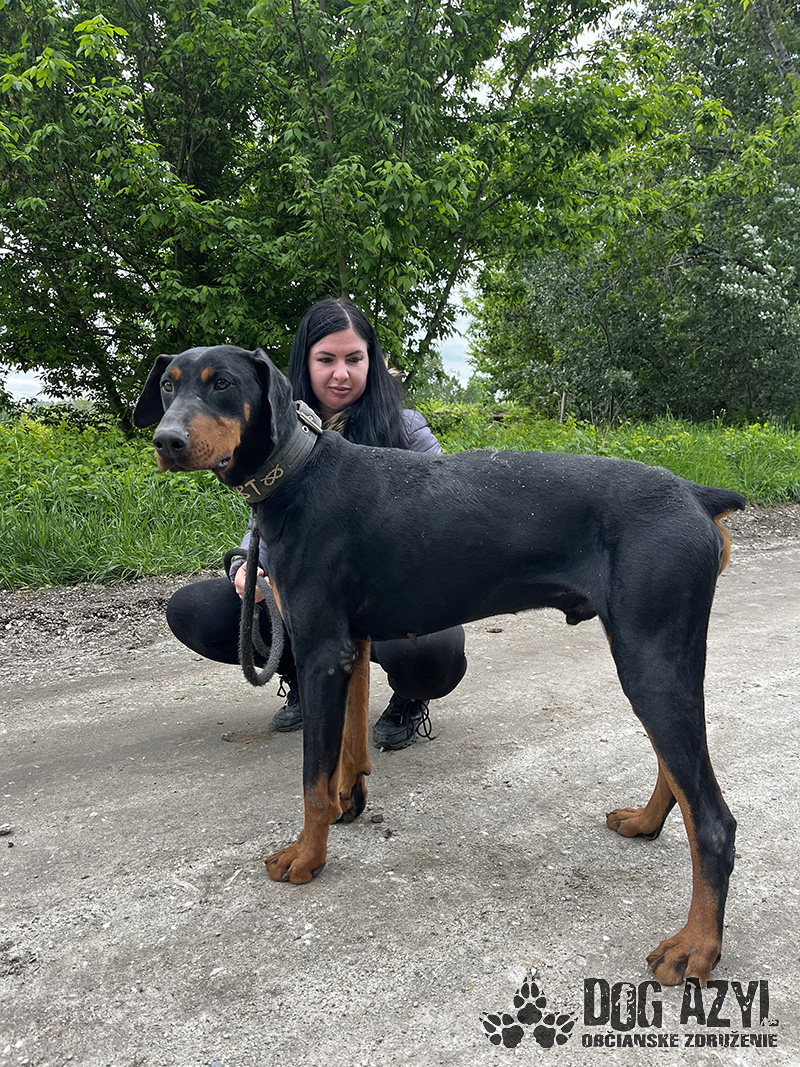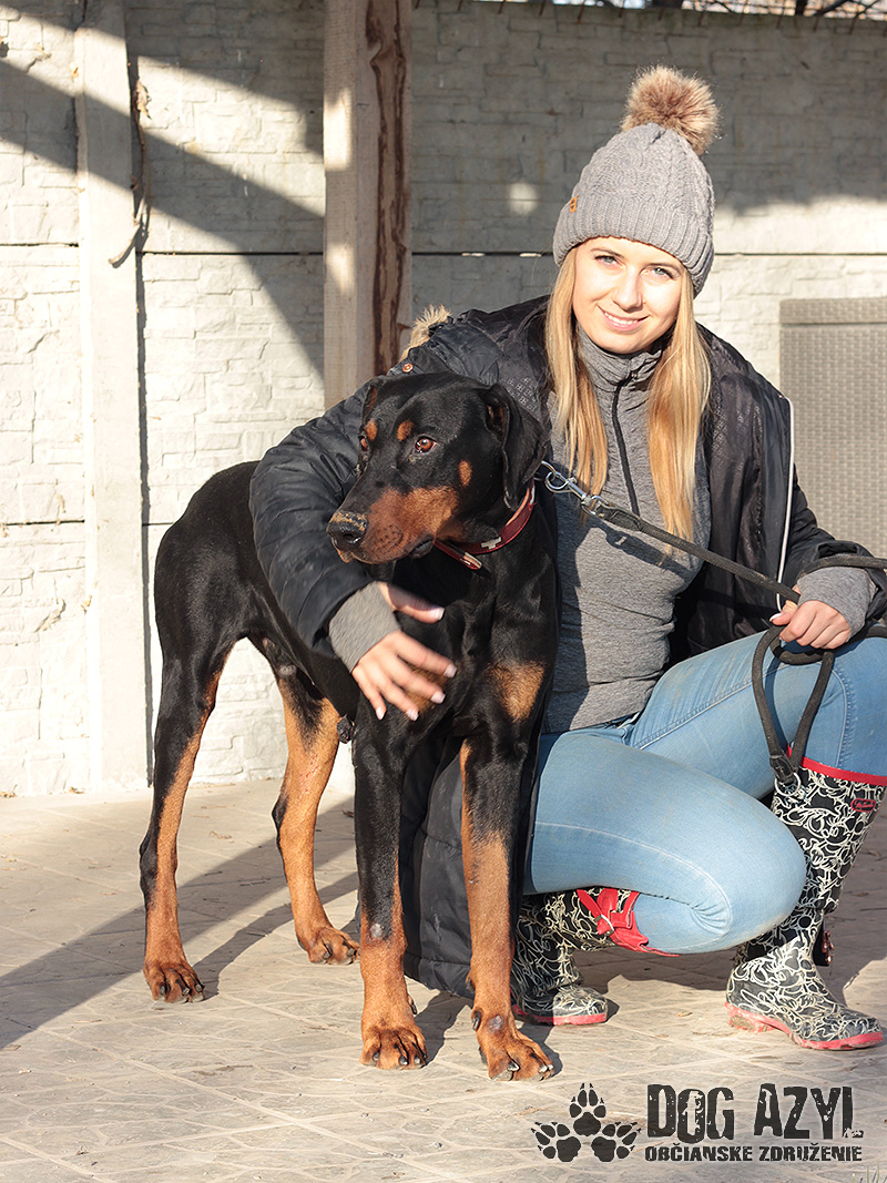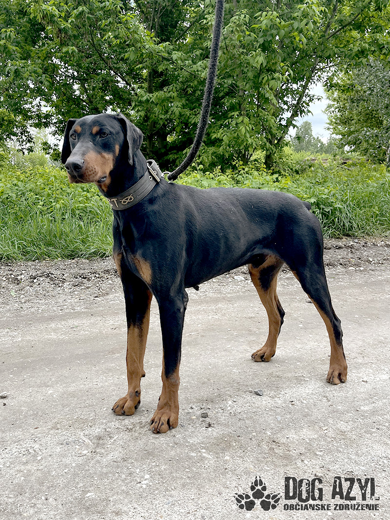 Timo, narodený cca jún 2018, k nám prišiel z obce Tonkovce. Na krku mal hnusnú reťaz s kúskom odtrhnutého špagátu, takže si vieme dokonale predstaviť ako a kde žil. Veľmi sme sa potešili keď sme našli jeho čip, ale radosť nás rýchlo prešla keď sa nám nepodarilo s majiteľkou skontaktovať. Telefón nezdvíha, na správy nereaguje a my tak nezmôžeme nič iné, ako postarať sa o neho a nájsť mu nový, tentokrát už skutočný domov. Timo je dokonalý doberman, so všetkými perfektnými vlastnosťami plemena. Miluje ľudí, s každým sa ihneď kamaráti a snaží sa človeka aj poslúchať :) Je to energický, sebavedomý, láskyplný fešák, ktorý má veľmi rád spoločnosť feniek a nevadí mu ani spoločnosť iných psíkov, ale občas si vyberá podľa sympatií. Timo je dokonalým parťákom do aktívnej rodiny, ktorá rada trávi voľný čas v prírode a hľadá si na prechádzky štvornohého kamaráta. Veľmi rád sa však po dlhom dni schúli na gauči a zohrieva svojho človeka :) Vodítko ovláda bez problémov, je veľmi dobre usmerniteľný ale určite sa bude musieť doučiť pár drobností, aby bol dokonalý. Je však veľmi pozorný a kontaktný, určite sa bude rýchlo a rád učiť. Ideálne by sa mu bývalo v rodinnom dome, kde by prípadne mohol mať psiu kamarátku na bláznovstvá, ale výhradne ako člen rodiny a nie ako ozdoba na dvore. Ak zvažujete adopciu do bytu, bude treba počítať s jeho energiou, zabezpečiť mu dostatok pohybu, pravidelné prechádzky a samozrejme doladiť hygienické návyky. Na svoju druhú šancu čaká od januára 2024.