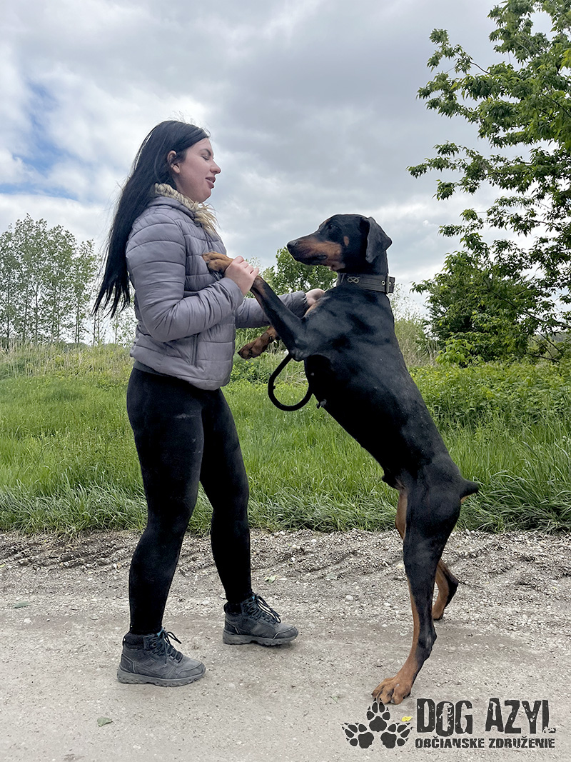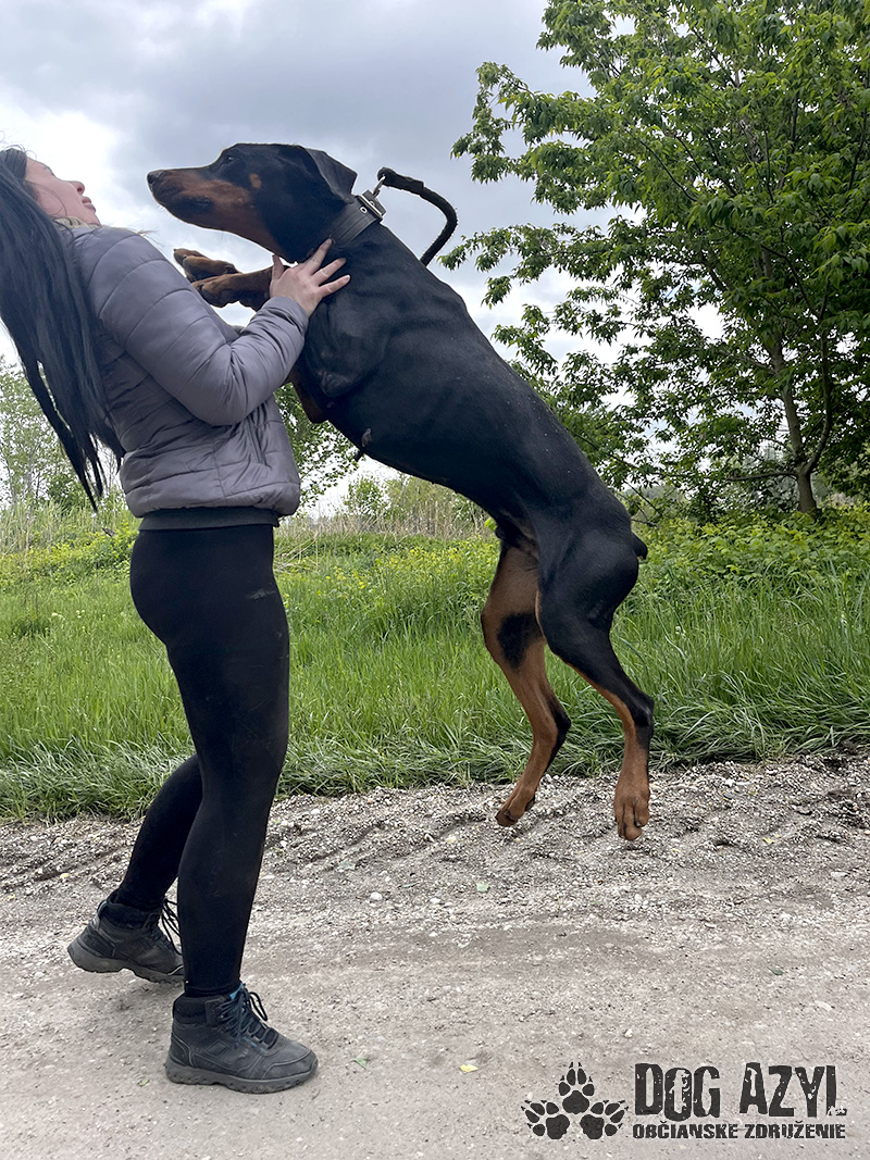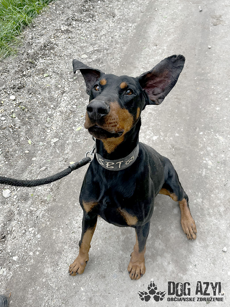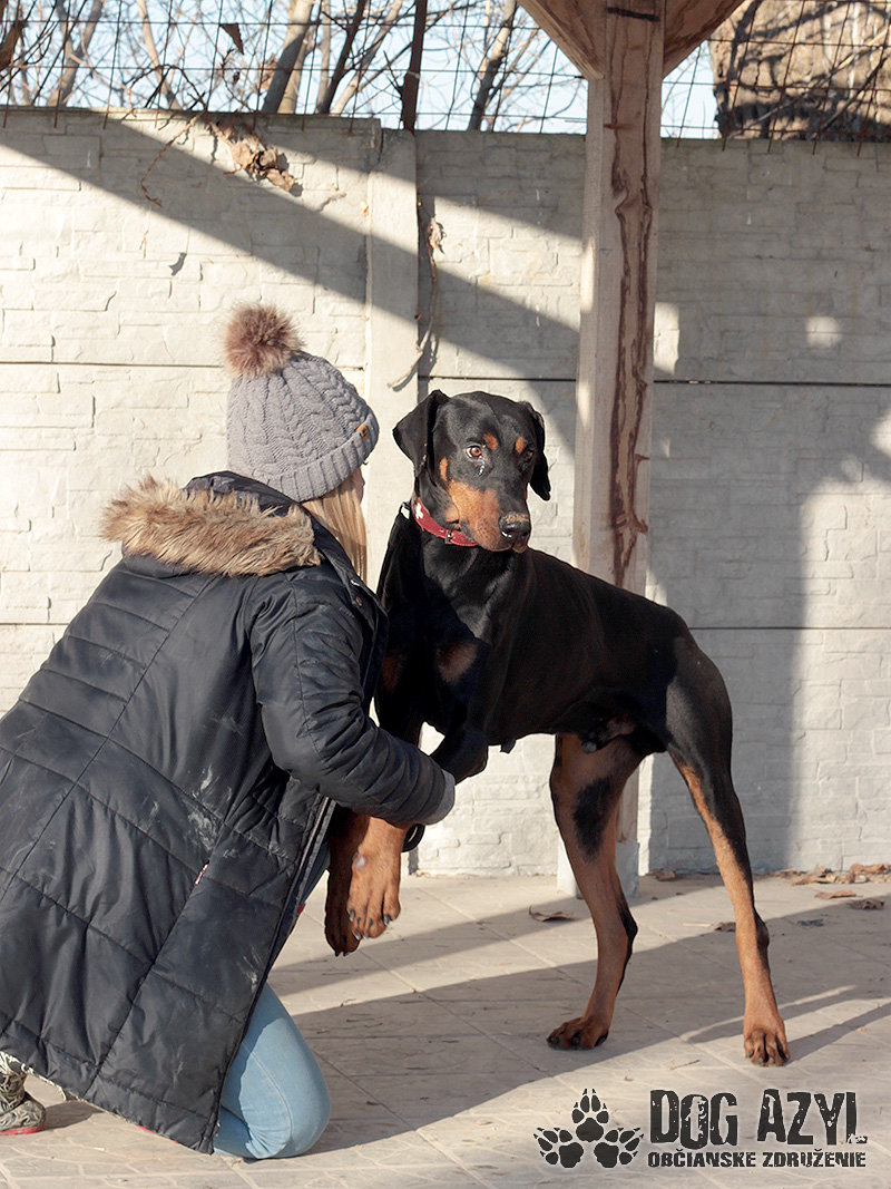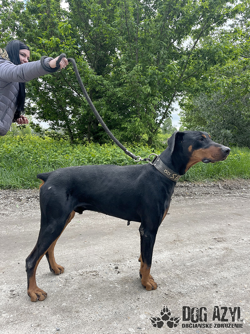 Timo, narodený cca jún 2018, k nám prišiel z obce Tonkovce. Na krku mal hnusnú reťaz s kúskom odtrhnutého špagátu, takže si vieme dokonale predstaviť ako a kde žil. Veľmi sme sa potešili keď sme našli jeho čip, ale radosť nás rýchlo prešla keď sa nám nepodarilo s majiteľkou skontaktovať. Telefón nezdvíha, na správy nereaguje a my tak nezmôžeme nič iné, ako postarať sa o neho a nájsť mu nový, tentokrát už skutočný domov. Timo je dokonalý doberman, so všetkými perfektnými vlastnosťami plemena. Miluje ľudí, s každým sa ihneď kamaráti a snaží sa človeka aj poslúchať :) Je to energický, sebavedomý, láskyplný fešák, ktorý má veľmi rád spoločnosť feniek a nevadí mu ani spoločnosť iných psíkov, ale občas si vyberá podľa sympatií. Timo je dokonalým parťákom do aktívnej rodiny, ktorá rada trávi voľný čas v prírode a hľadá si na prechádzky štvornohého kamaráta. Veľmi rád sa však po dlhom dni schúli na gauči a zohrieva svojho človeka :) Vodítko ovláda bez problémov, je veľmi dobre usmerniteľný ale určite sa bude musieť doučiť pár drobností, aby bol dokonalý. Je však veľmi pozorný a kontaktný, určite sa bude rýchlo a rád učiť. Ideálne by sa mu bývalo v rodinnom dome, kde by prípadne mohol mať psiu kamarátku na bláznovstvá, ale výhradne ako člen rodiny a nie ako ozdoba na dvore. Ak zvažujete adopciu do bytu, bude treba počítať s jeho energiou, zabezpečiť mu dostatok pohybu, pravidelné prechádzky a samozrejme doladiť hygienické návyky. Na svoju druhú šancu čaká od januára 2024.