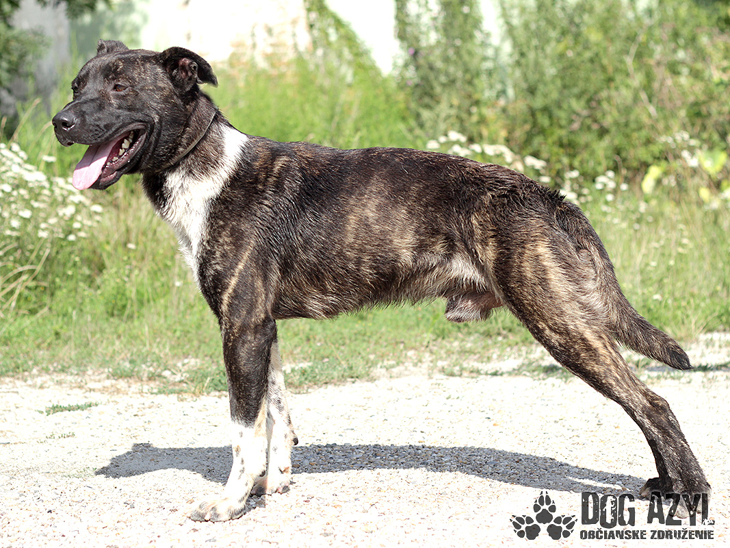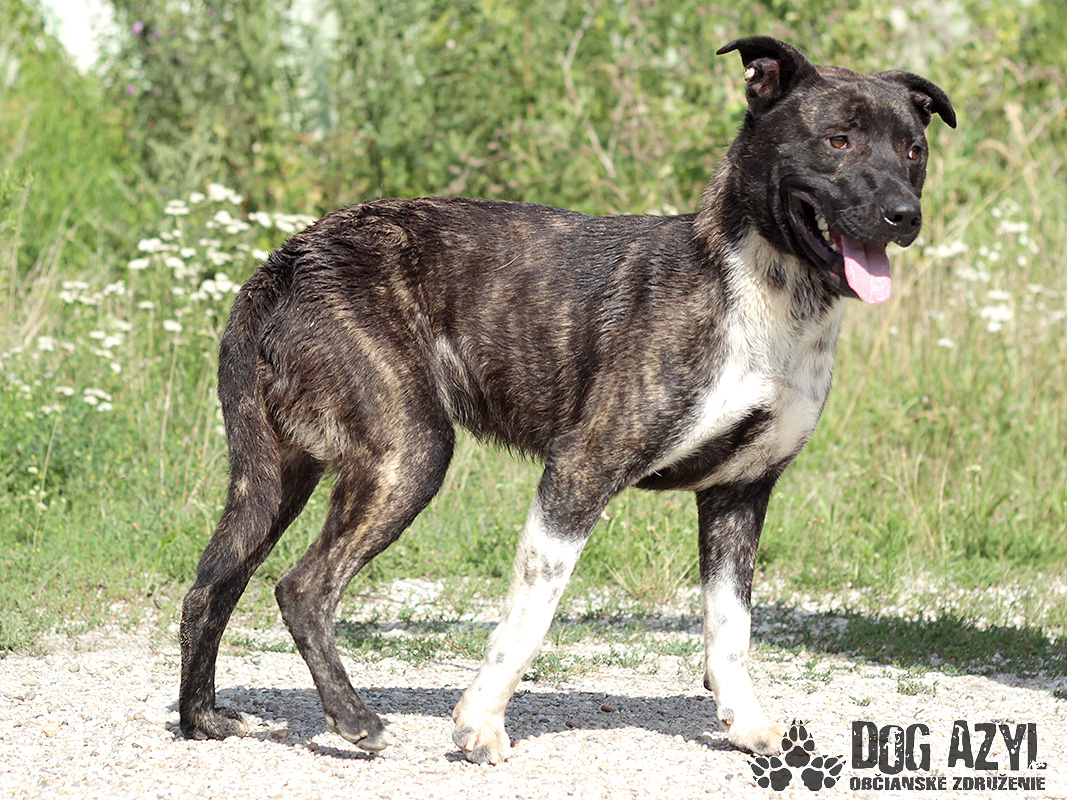 Titus, narodený cca september 2015, je úchvatný mládenec, ktorý sa našiel v obci Horné Mýto. Titus je pravdepodobne ďalšou obeťou zanedbanej a nezvládnutej výchovy :( Je v puberte, a tak bolo asi jednoduchšie zbaviť sa ho, ako ho začať učiť a usmerňovať :( Titus pritom nie je vôbec problémový pes, ani žiaden čertík, je to jednoducho mladý, nevybúrený a milo drzý kríženček bulíka. Lásky a energie má na rozdávanie, pre svojho milovaného človeka znesie aj modré z neba, a za pamlsok aj poslúcha :) Titus si hľadá skúsenejšiu rodinu, ktorej jeho energia a temperament nebude na obtiaž, ale bude výzvou a radosťou :) Vodítko ovláda bez problémov, prechádzky sa mu veľmi páčia. Zo začiatku sa síce trocha ponáhľa, ale nie je to nič nezvládnuteľné. Titus je veľmi priateľský, kontaktný a láskyplný kamarát, z ktorého pri dôslednej výchove bude zaručene oddaný spoločník. Spoločnosť feniek mu neprekáža, psíkov odporúčame vyskúšať individuálne. Ideálne by sa mu bývalo pri rodinnom dome, ale výhradne s celoročným prístupom k svojej rodine. Treba sa mu ozaj dosť venovať. Je vhodný aj do bytu, ale je dosť náročný na pohyb, tak mu bude treba dopriať dostatok intenzívnych prechádzok. Na svoju druhú šancu čaká od júla 2015.