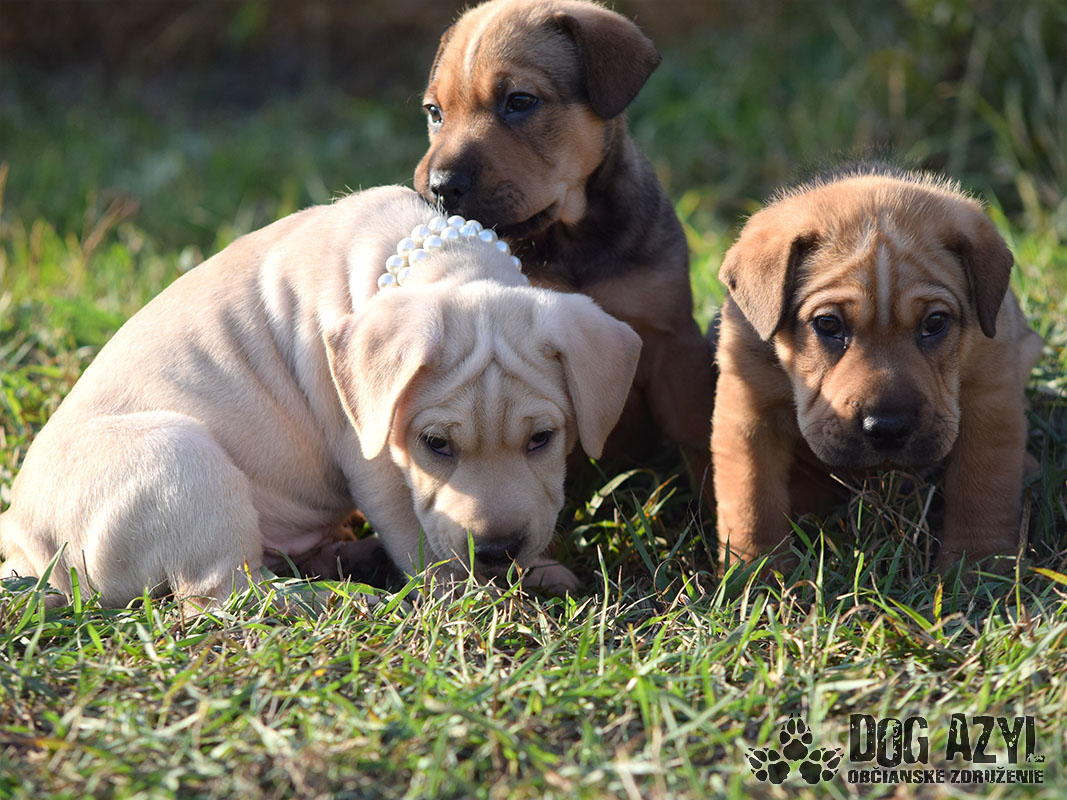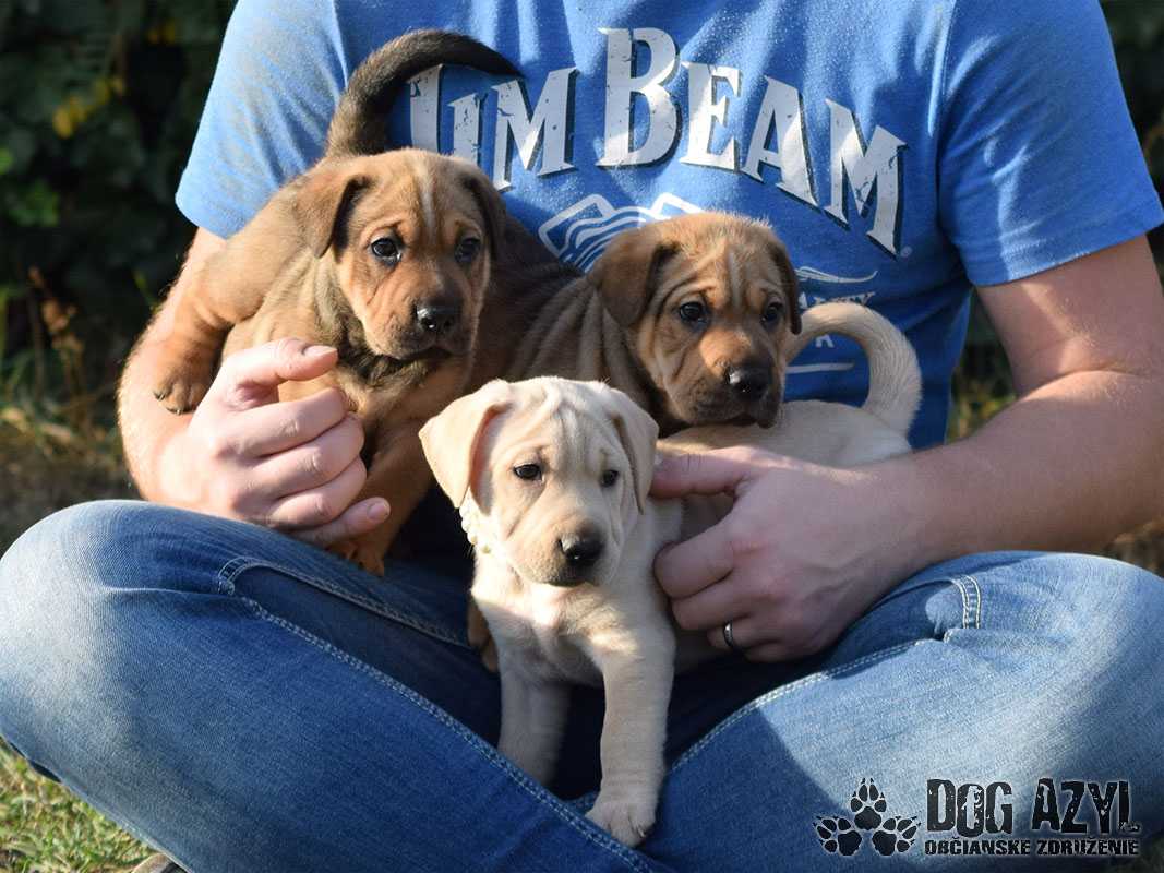 Tučko, Miško a Lucka, narodení cca september 2018, sa našli vo Veľkom Blahove, kde ich podľa nahlasovateľky prehodili do dvora. Mali čerstvo otvorené očká to znamená, že boli max dva týždne starí :( Mali byť ešte s maminkou, ale nejaký darebák sa rozhodol inak :( Šteniatka boli odchované na umelom mliečku, a rastú z nich úžasňáci :) Sú to aktívne, hravé, veselé deti, ktoré práve začínajú spoznávať svet. Z dôvodu, že ich namiesto maminky vychovával človek, sú veľmi naviazaní a budú z nich skvelí parťáci. Samozrejme, ako každé šteniatko, budú potrebovať dôslednú výchovu, riadnu dávku trpezlivosti a treba ich všetko učiť od základov (vrátane hygieny). Gény šarpeja by nezapreli ani keby chceli :) K šarpejovi sa asi primiešal ešte labrador, alebo jeho kríženec, takže v dospelosti budú asi väčšieho stredného vzrastu. Teraz majú v priemere 4kg. Sú vhodné do bytu, určite sa rýchlo všetko naučia :) Ak by sa mali adoptovať k rodinnému domu, tak výhradne s celoročným bývaním v dome. Hľadajú si rodiny, ktoré sú pripravené a kopu zábavy, a v ktorých budú plnohodnotnými členmi rodiny! Prosíme len seriózny záujem!