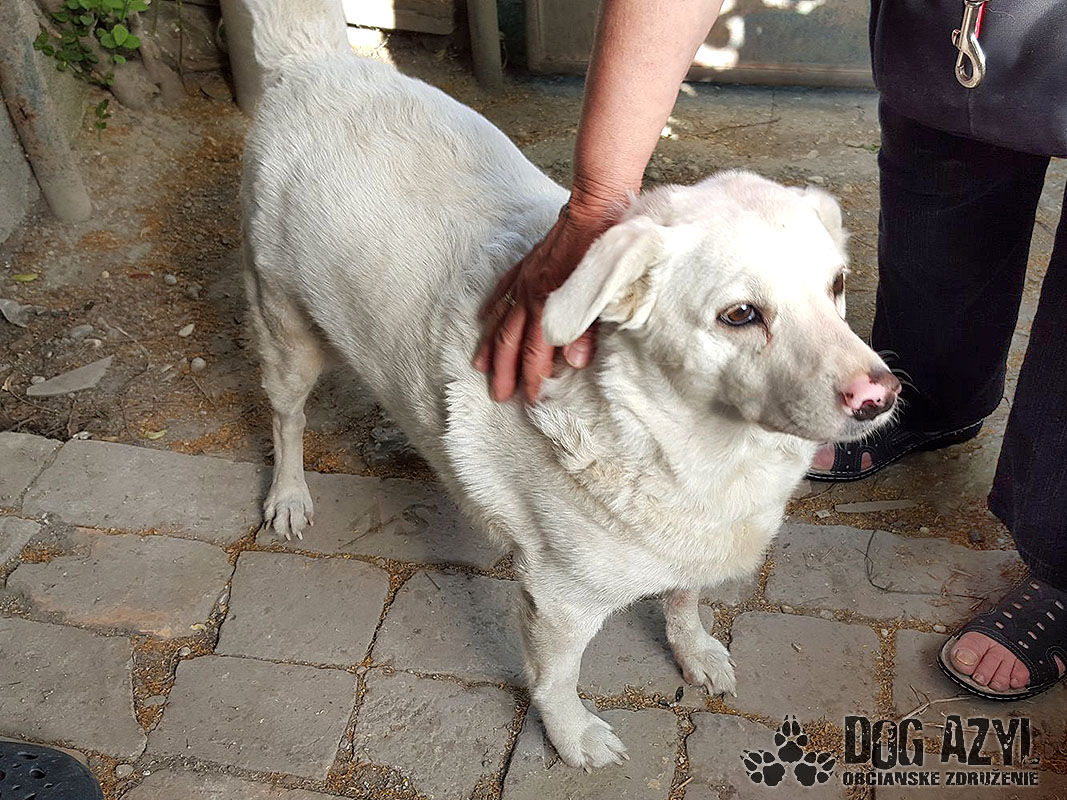 BOBY - biely psík, nar. 2008, znášanlivý, priateľský.