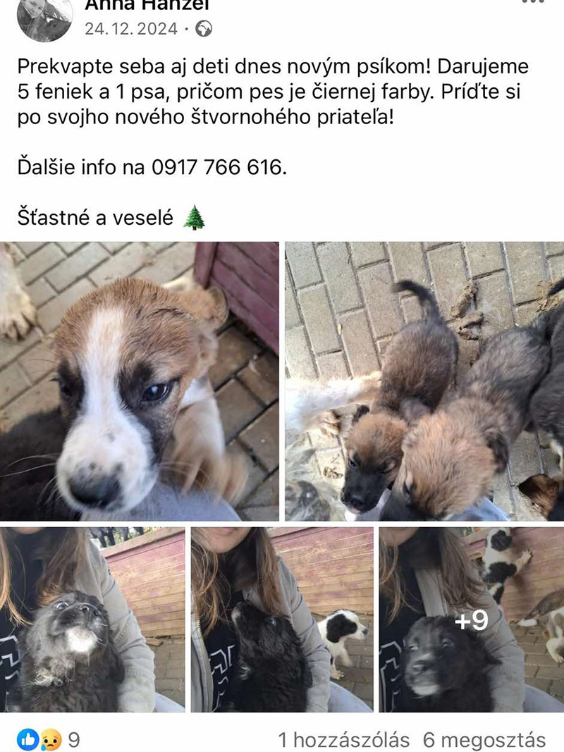 Na Štedrý deň sa rozbehol na sociálnej sieti príspevok, v ktorom “milá” pani doslova rozdávala živé hračky. Určite netreba rozpisovať ako veľmi nás to zarazilo a znechutilo! Presne sme vedeli ako tie úbohé šteniatka dopadnú a presne tak to aj skončilo. Prvý rozdaný darček už skončil na ulici! Sučka je plná parazitov, nie je čipovaná a tak je dosť jednoznačné, že ju veterinár NIKDY nevidel! Majiteľka takto naraz porušila zákon hneď v niekoľko bodoch! Ale však koho to zaujíma, je to iba obyčajný pes a takých sú tisíce. Ktovie kde a ako žijú súrodenci, ak vôbec… Napriek mnohoročnej osvete si ľudia stále nedajú povedať a nerozmýšľajú!
