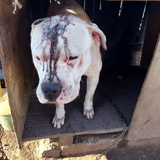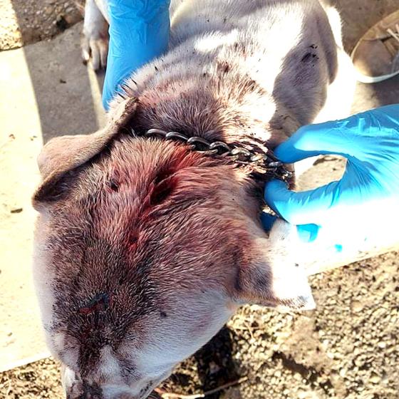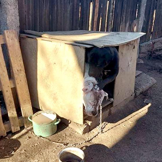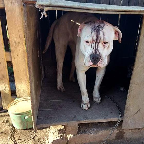 Celý život bola so svojim kamarátom Archiem držaná na reťazi, mali jedinú spoločnú schátralú búdu a obaja zarezanú reťaz do krku. Osudným sa jej - podľa slov majiteľa - stalo to, že sa hárala a Archie na ňu skákal! Preto on, ktorého človeka nazvať nikdy viac nemôžeme, schmatol sekeru a "vysvetlil" jej to po svojom. Shelly mala obrovské šťastie a stáli pri nej všetci strážni anjeli, lebo sused celý incident videl, okamžite zavolal štátnu políciu, ktorá následne kontaktovala veterinárnu správu. Ošetrujúci aj úradní veterinári sa zhodli, že psíkov treba z tých podmienok ihneď odobrať a Shelly okamžite zabezpečiť veterinárnu starostlivosť ‼️