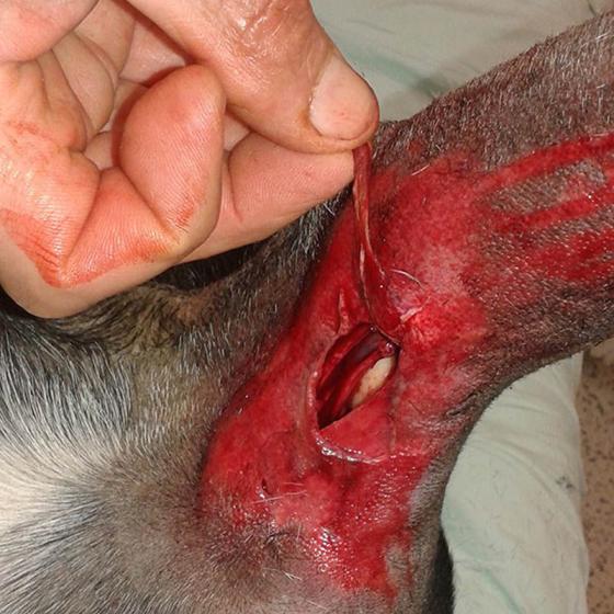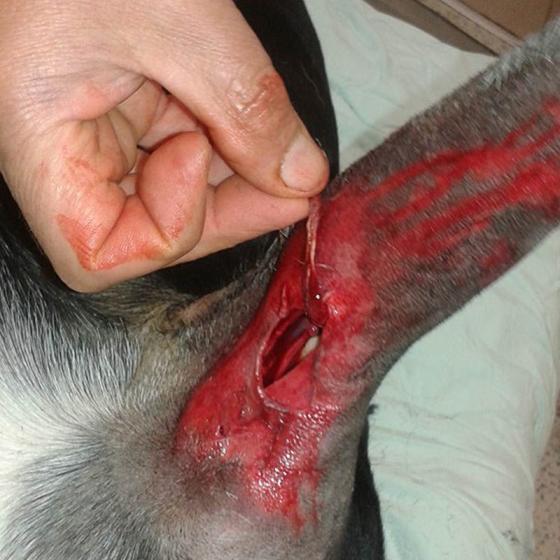 Taktiež mal strhnuté vankúšiky na packe, držali len na kúsku kože, ale tie sa podarilo prišiť.