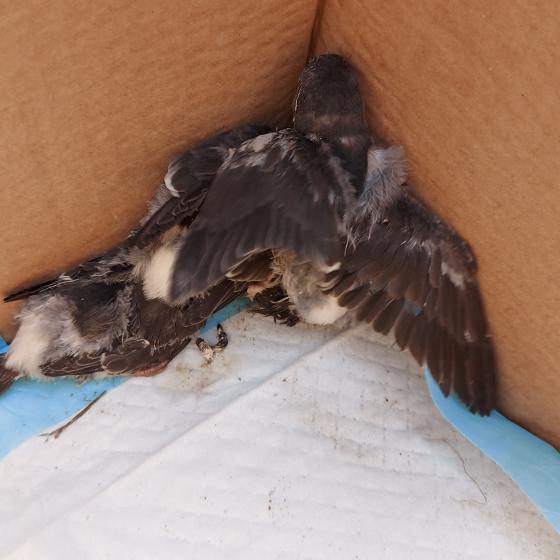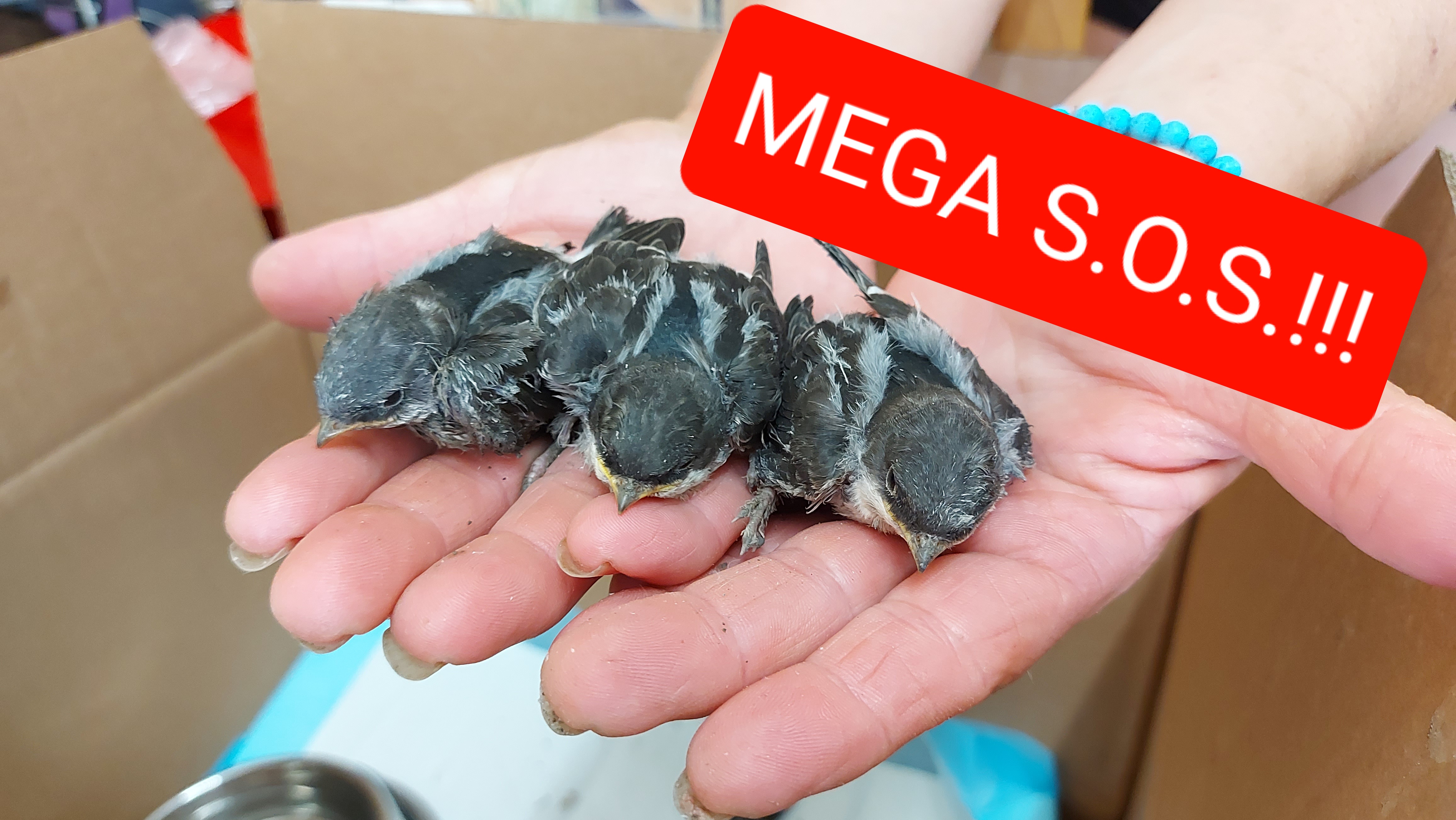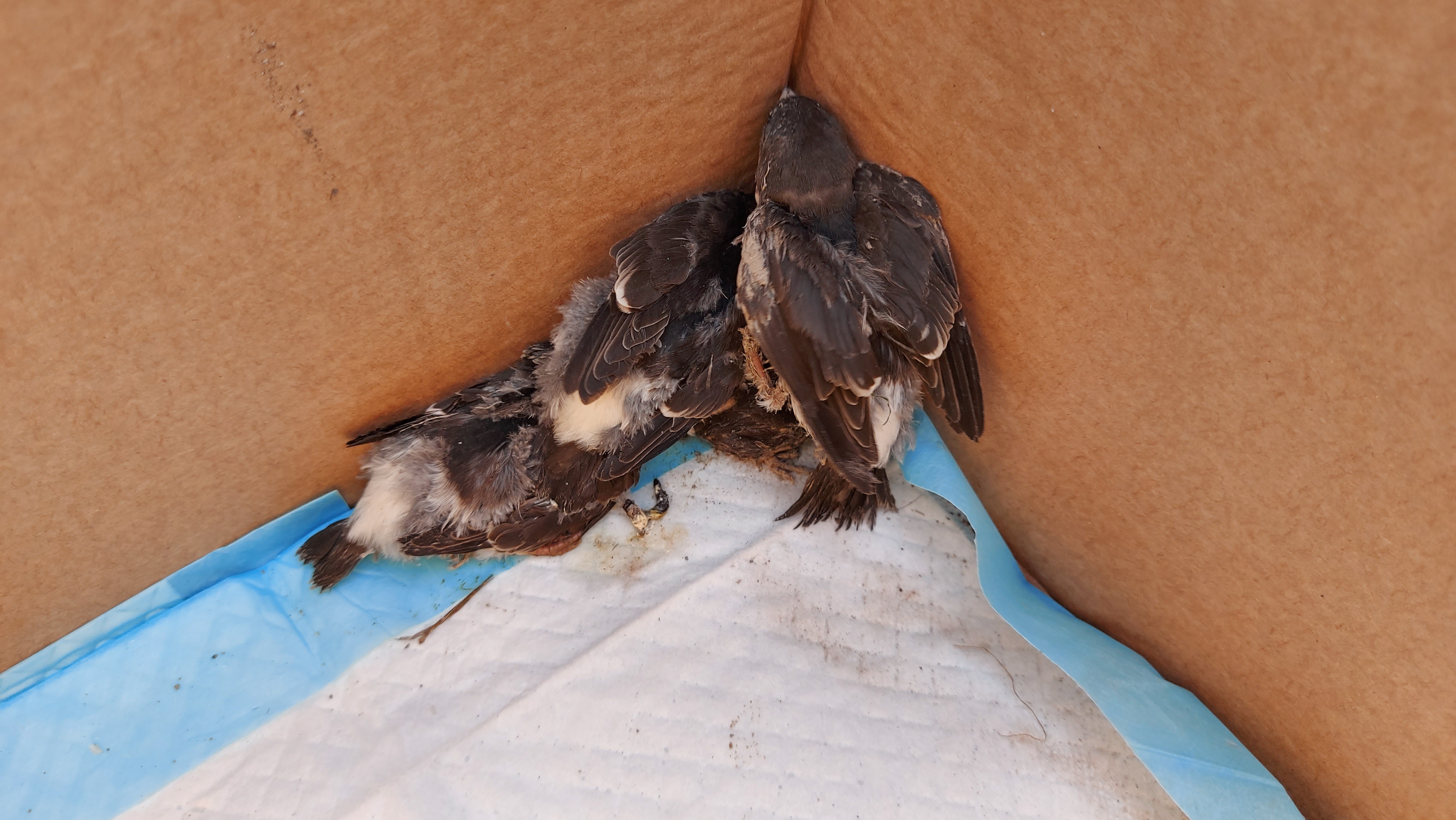 Osadníci vybrali (asi) lastovičie hniezdo a drobcov nám prehodili vo vedre do útulku!!!!! Boli medzi nimi az holé jedince, asi iné hniezdo. Tie už žiaľ.. :( 4 operené mláďatá ešte žijú, ale OKAMŽITE POTREBUJEME POMOC!!!!! Nehanbime sa priznať, že o vtáčikoch vôbec nič nevieme, a máme obavy, že im našou pomocou ublížime!!!!!
