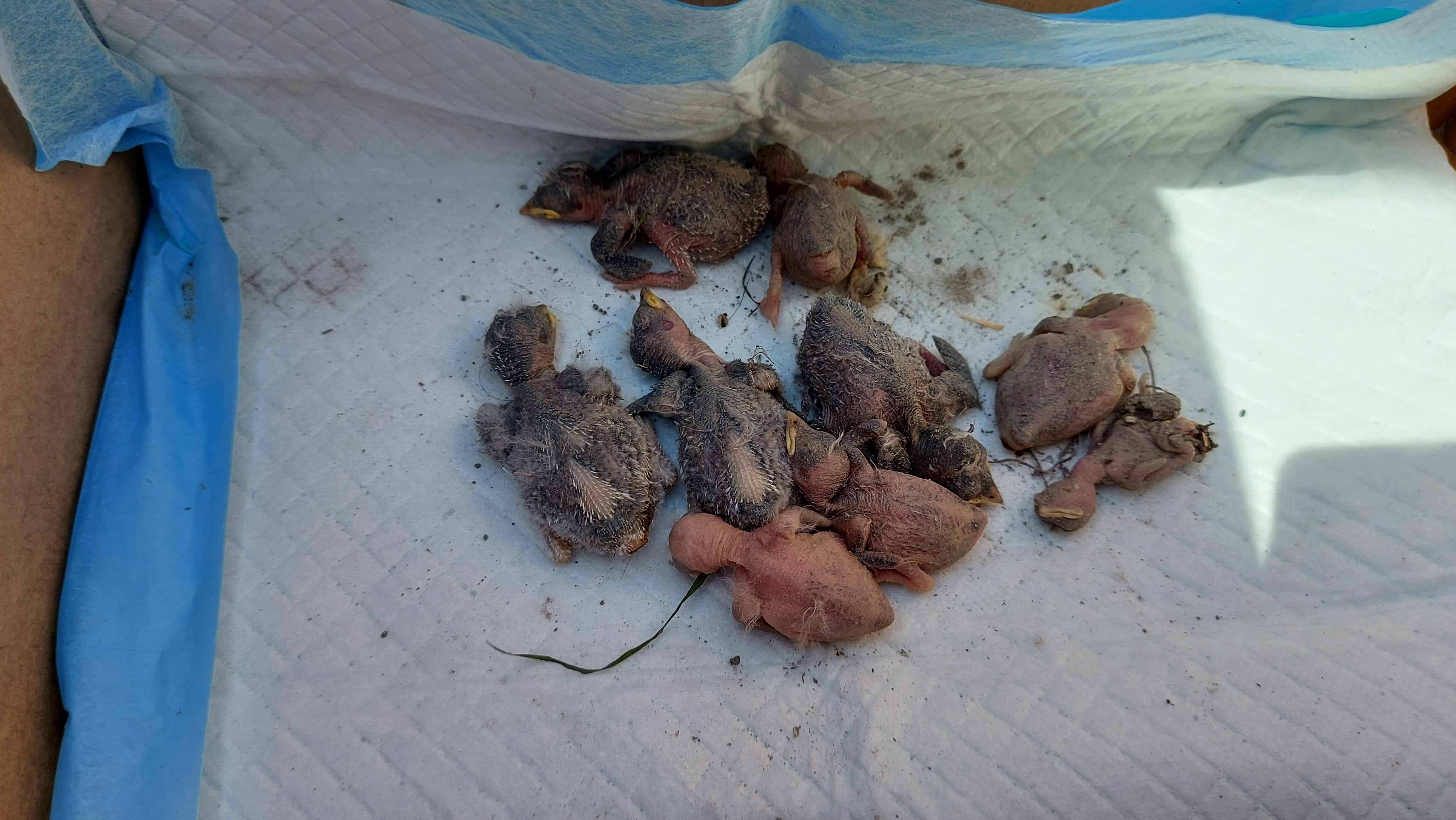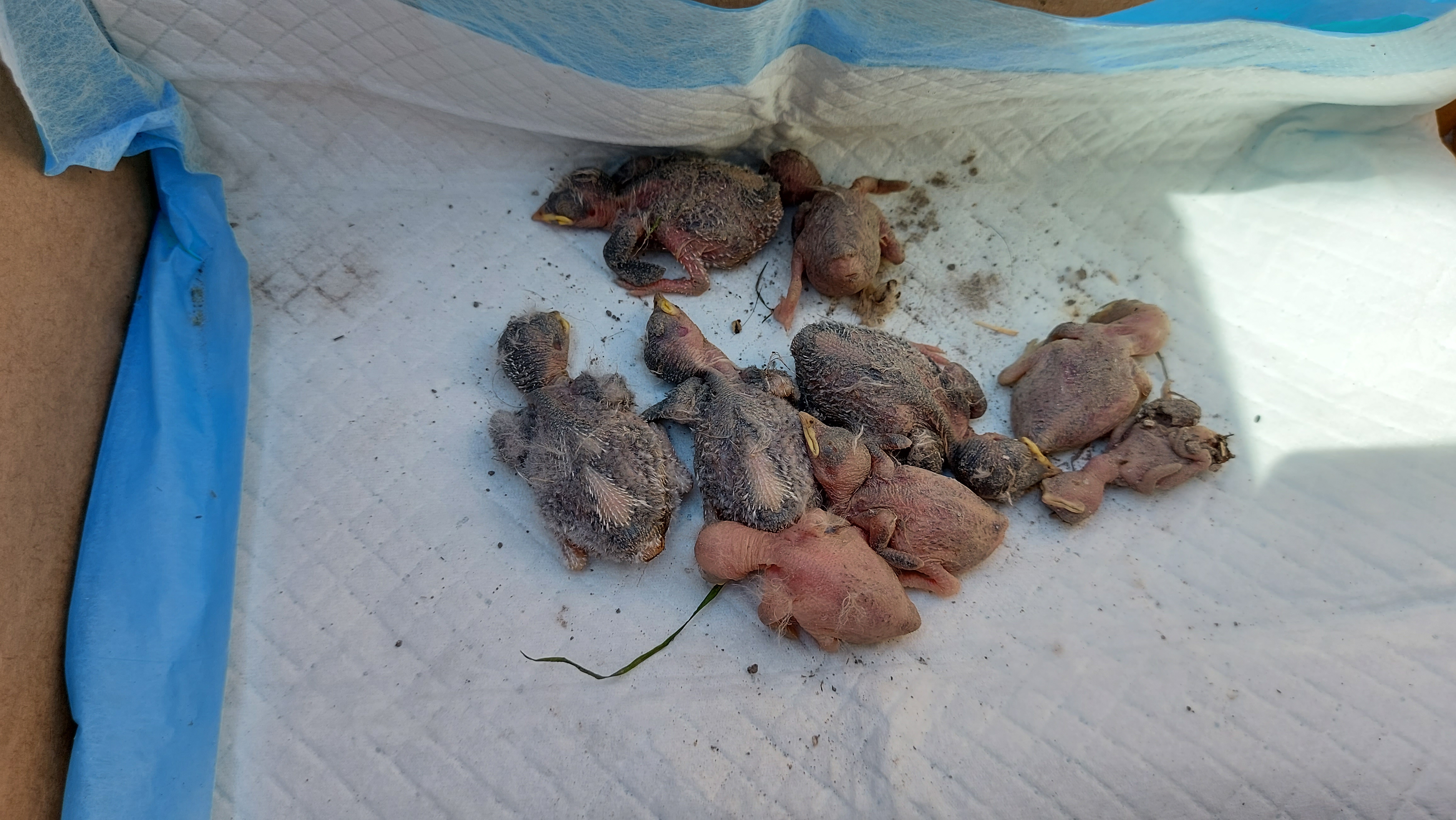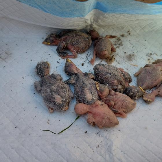 Belorítky prevzal jeden úžasný ornitológ a pokúsi sa o ich záchranu. Celkom ich bolo 13 ks, 4 operené a 9 malinkých neoperených :( Podľa veku sa jedná o tri rôzne hniezda. Podávame trestné oznámenie!