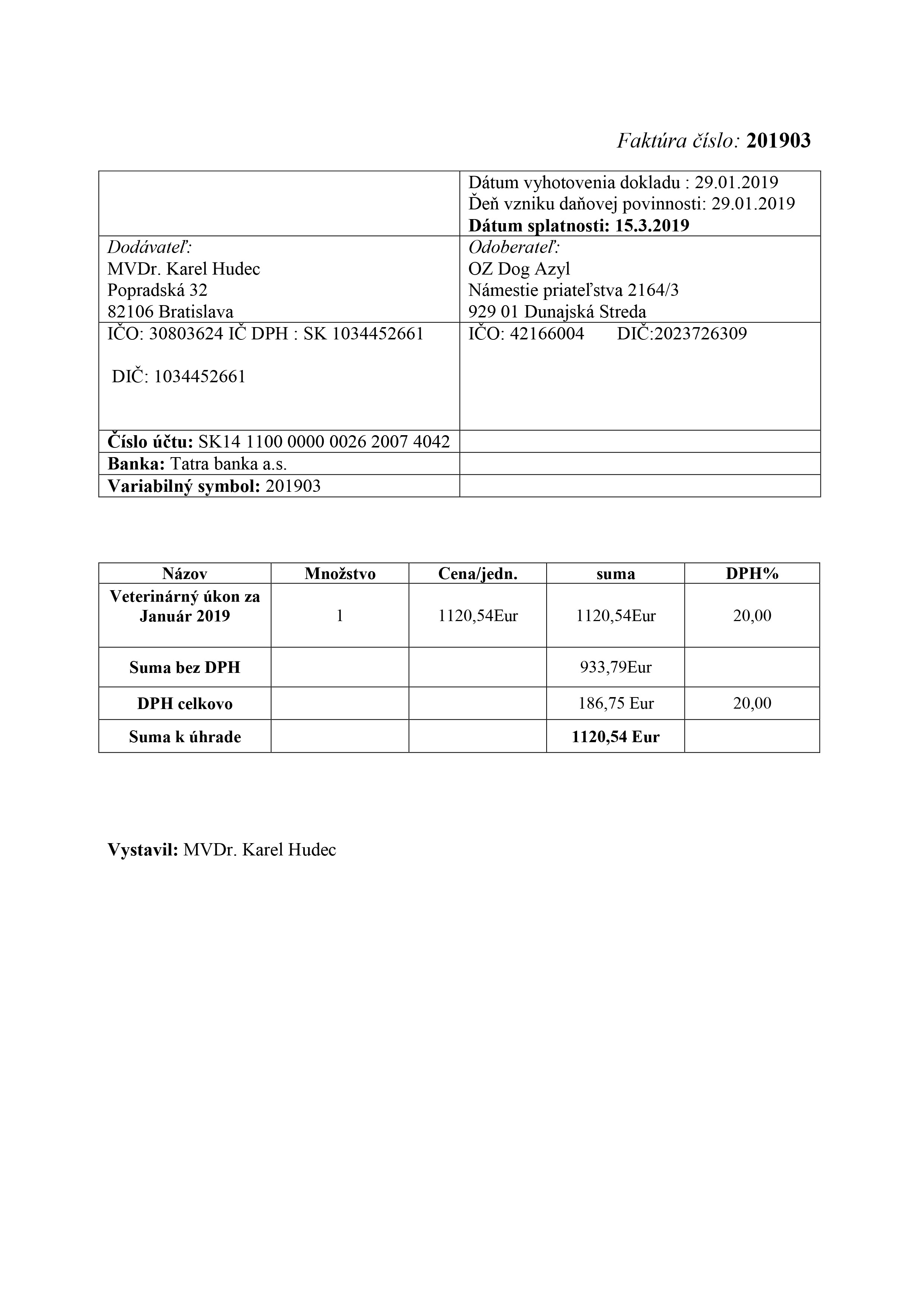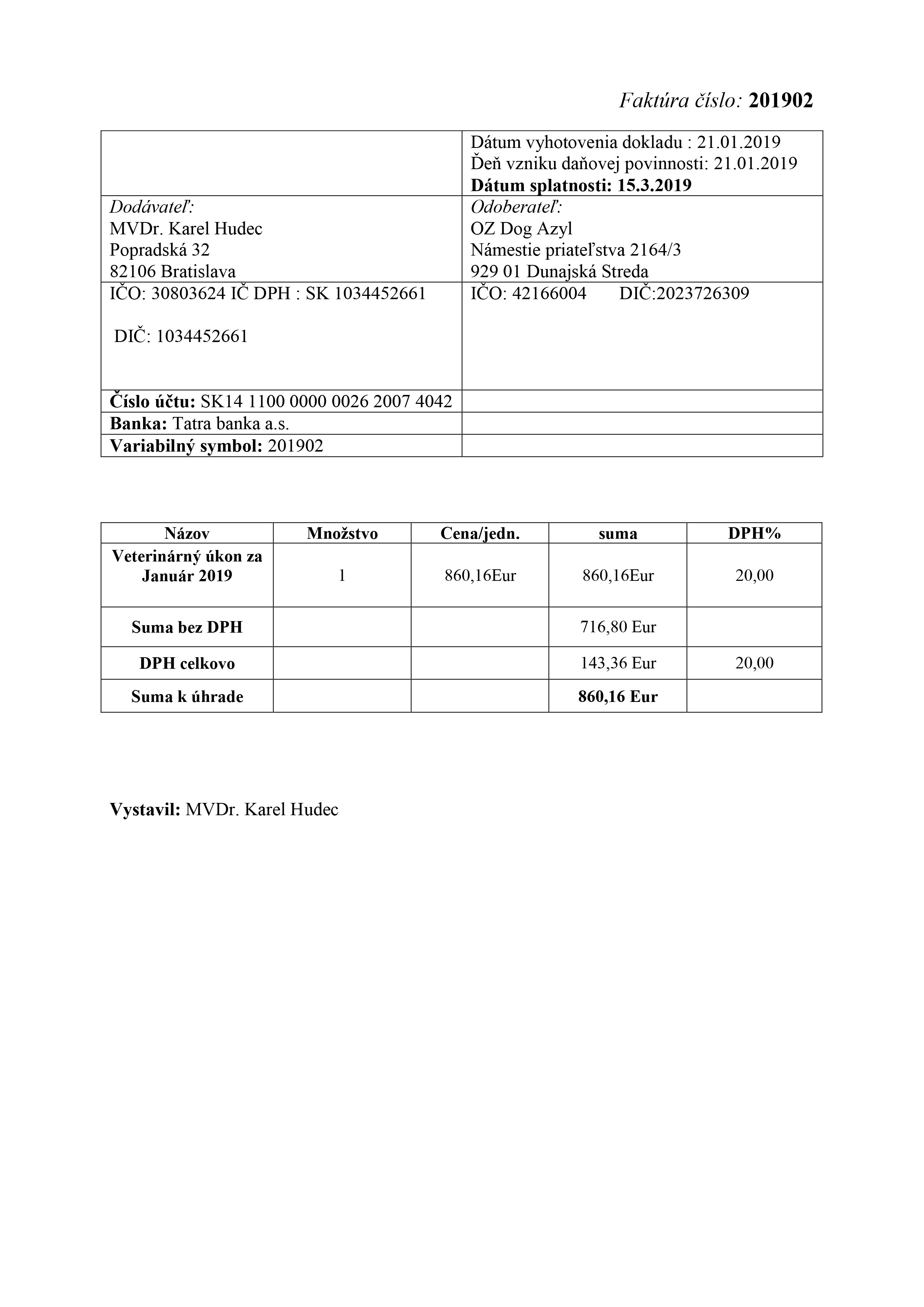 Účel platby: VETERINA