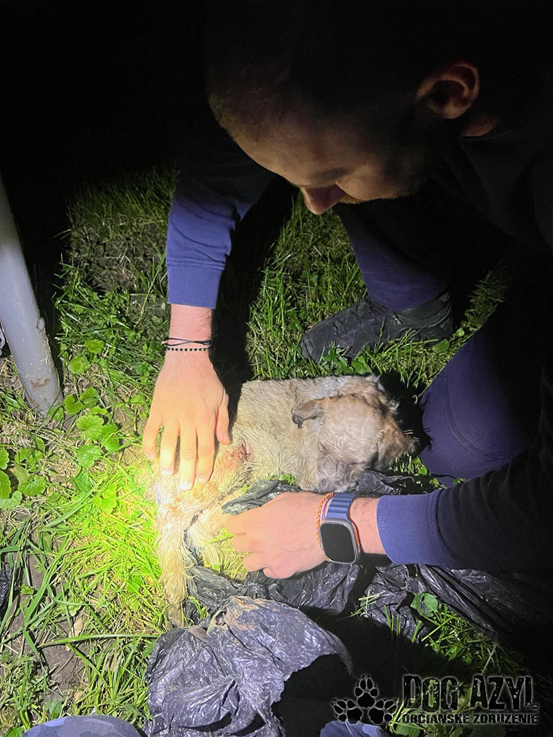 Nahlasovateľ, ktorý privolal hliadku MsP údajne spozornel na silný psí plač a nárek. Bodaj by chudák neplakal, keď mu zaživa lámal kosti ten ľudský trus! Keď sa mu jeho činnosť zunovala, mal údajne odhodiť dolámaného psíka pri odpadkovom koši, kde bolo napokon aj nájdené. Malý drobček kričal od bolesti a úpenlivo prosil o pomoc. Na miesto bola, podľa našich informácií, privolaná aj štátna polícia a psíček bol prevezený na veterinárnu pohotovosť, kde sa mu spravili základné vyšetrenia a dostal lieky od bolesti.